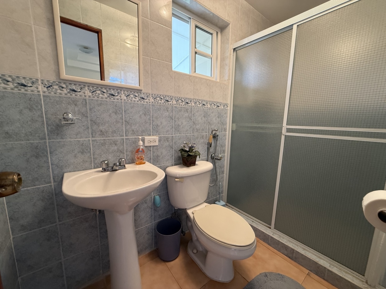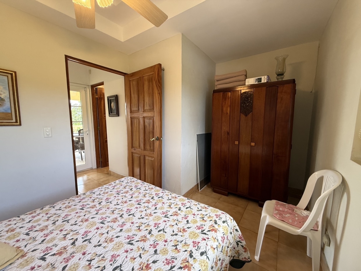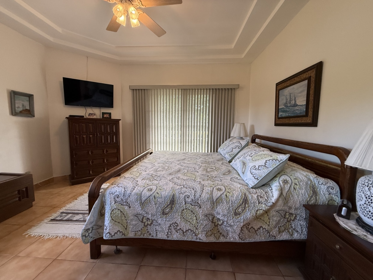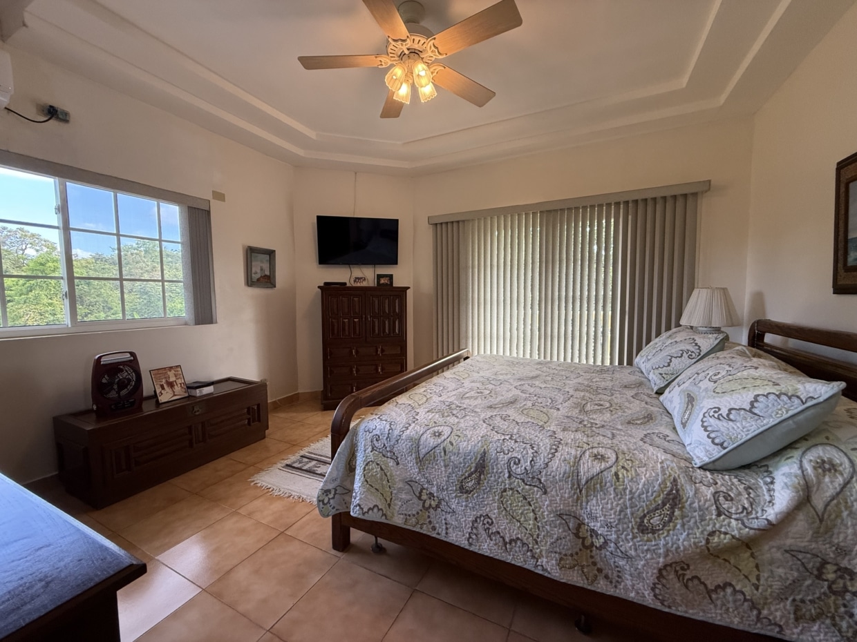 Nivel inferior: 1 habitación, estudio (convertible en habitación), 1 baño, amplia cocina, sala-comedor y terraza con acceso directo a la piscina y bohío.