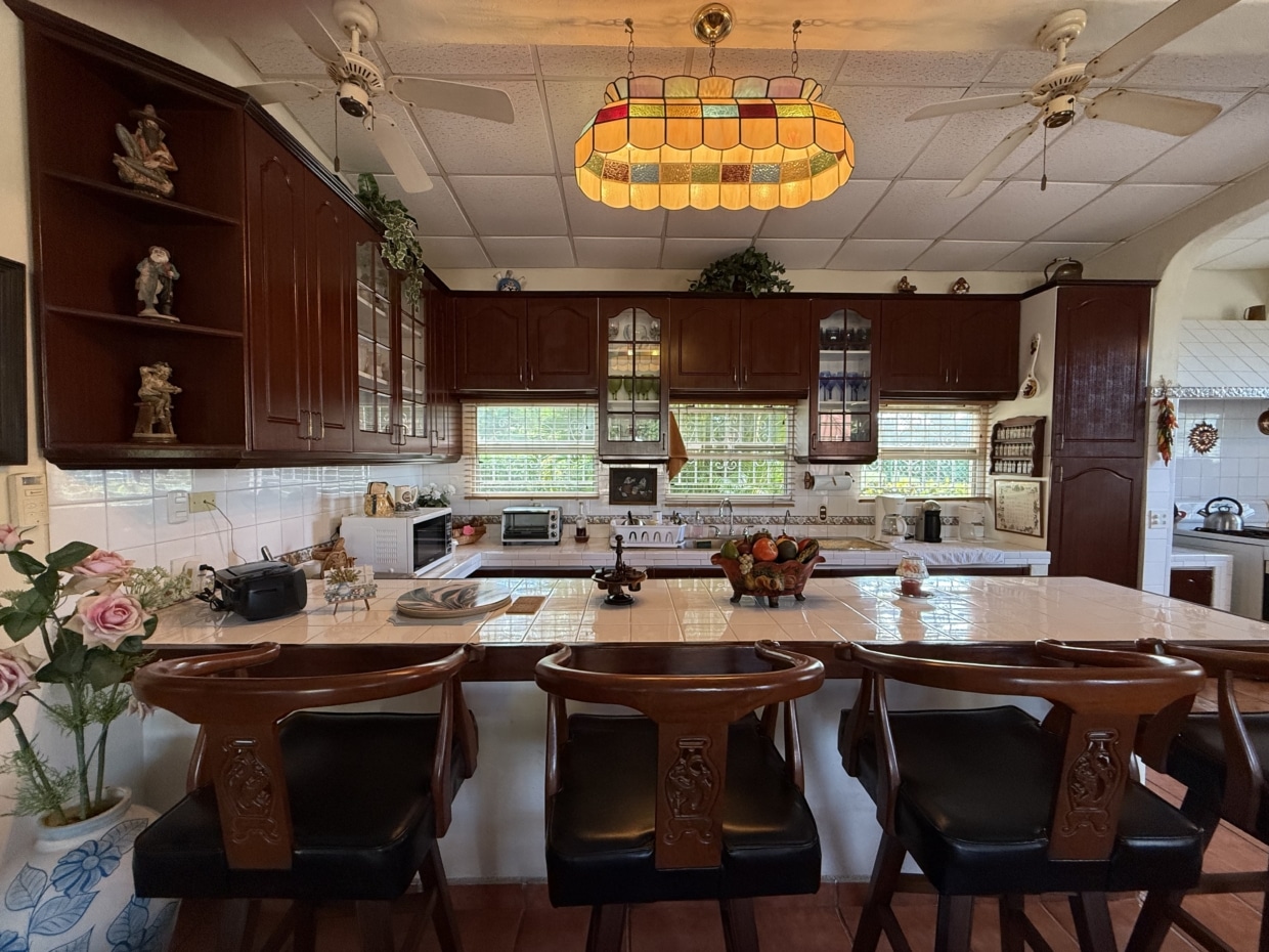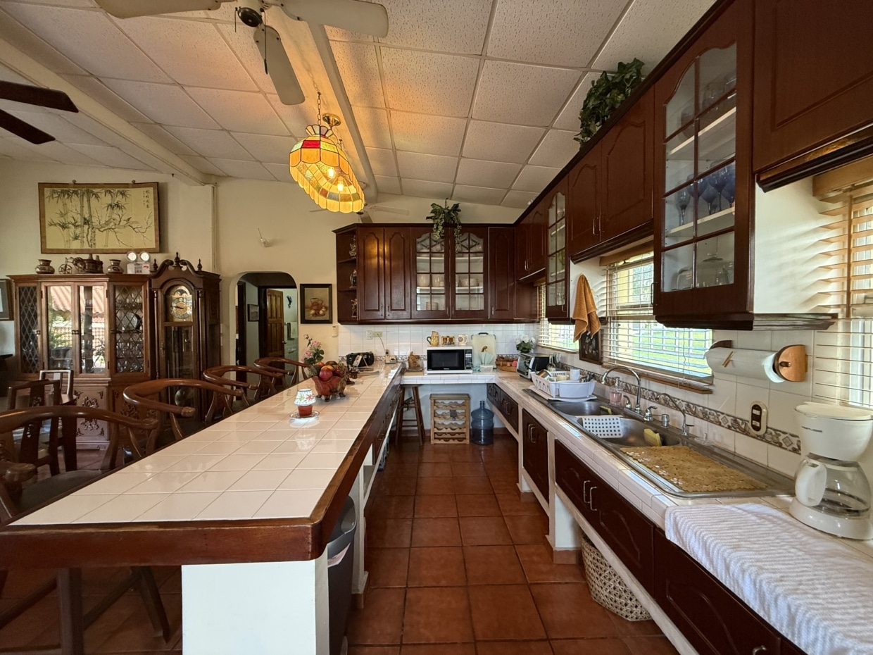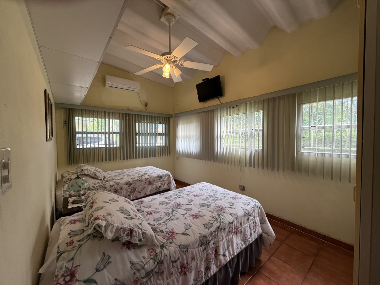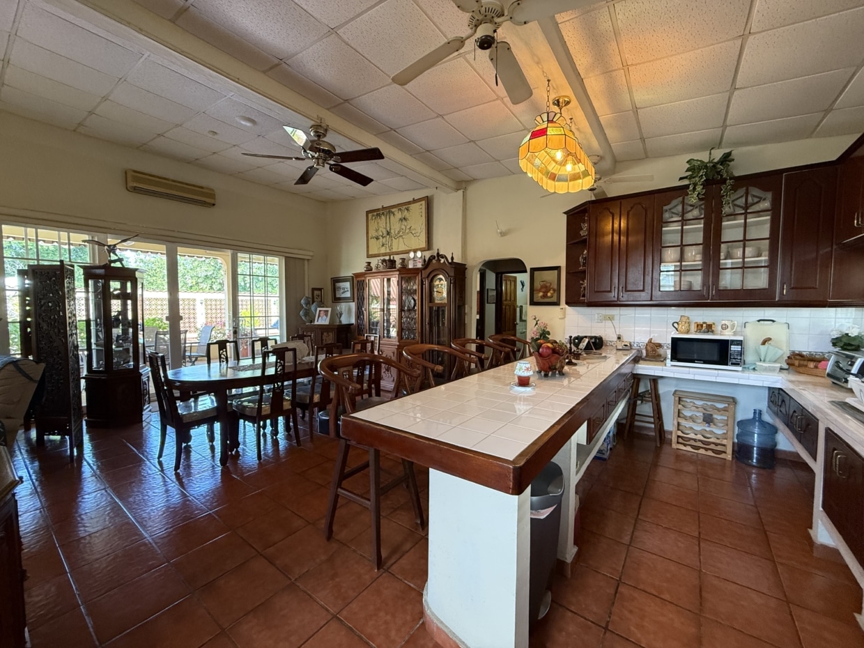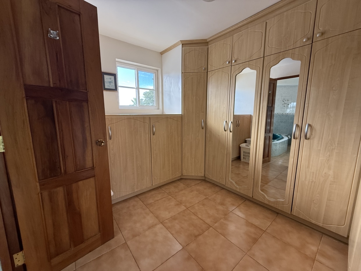 Nivel inferior: 1 habitación, estudio (convertible en habitación), 1 baño, amplia cocina, sala-comedor y terraza con acceso directo a la piscina y bohío.