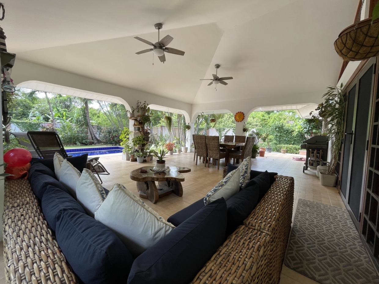 Gran terraza cubierta, perfecta para relajarte y disfrutar del clima tropical.