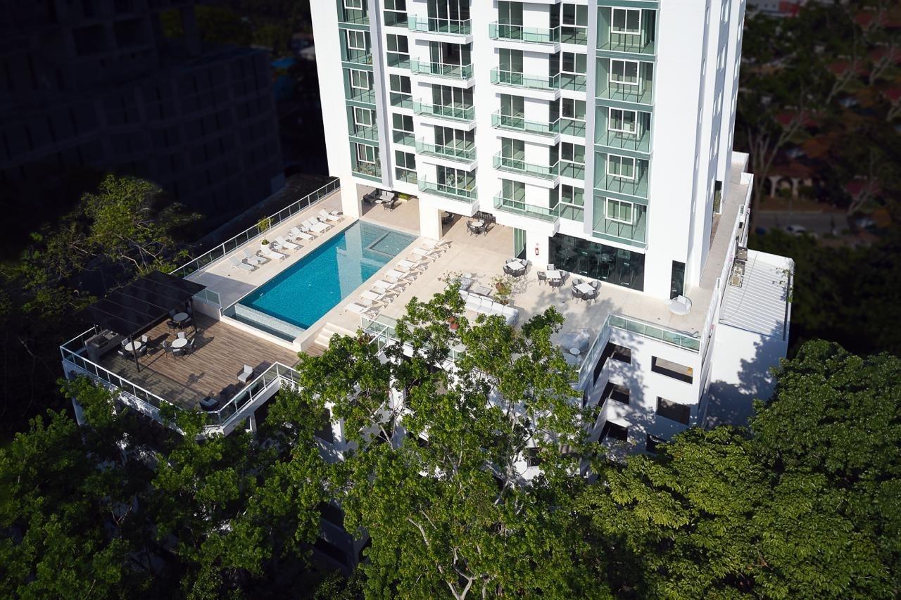 Nuevo edificio residencial al fondo del parque de Hato Pintado, Torre de 30 pisos, con vista a la ciudad y al mar. Área social con piscina gimnasio, cuarto de juegos para niños cerrado y al aire libre, espacio de Yoga, salón de jovenes, 2 habitaciones, el principal con walking Closet, 2.5 baños, Cuarto y baño de servicio, aires acondicionado en sala comedor y cocina abierta. Balcón con vista al mar y a la ciudad