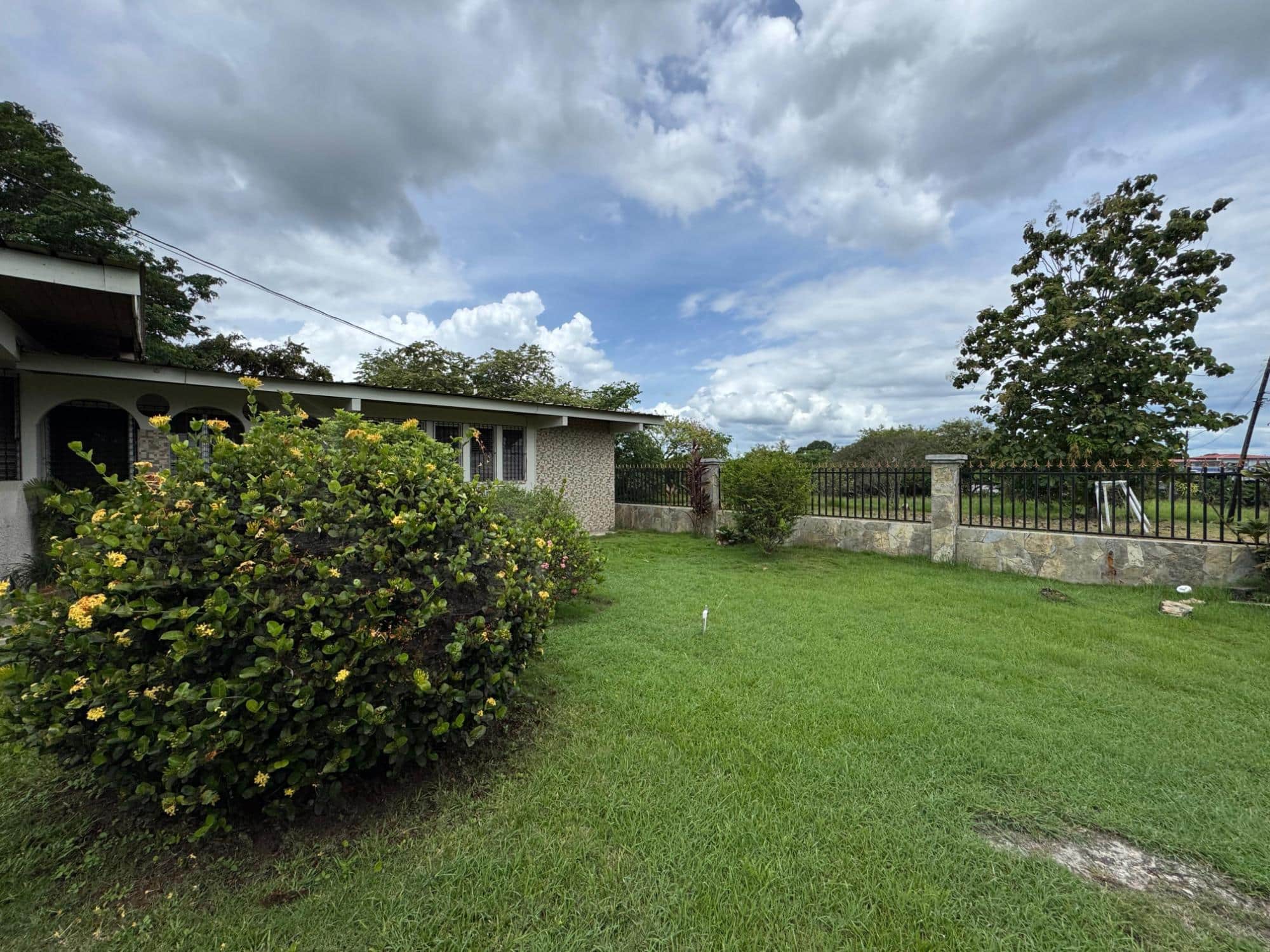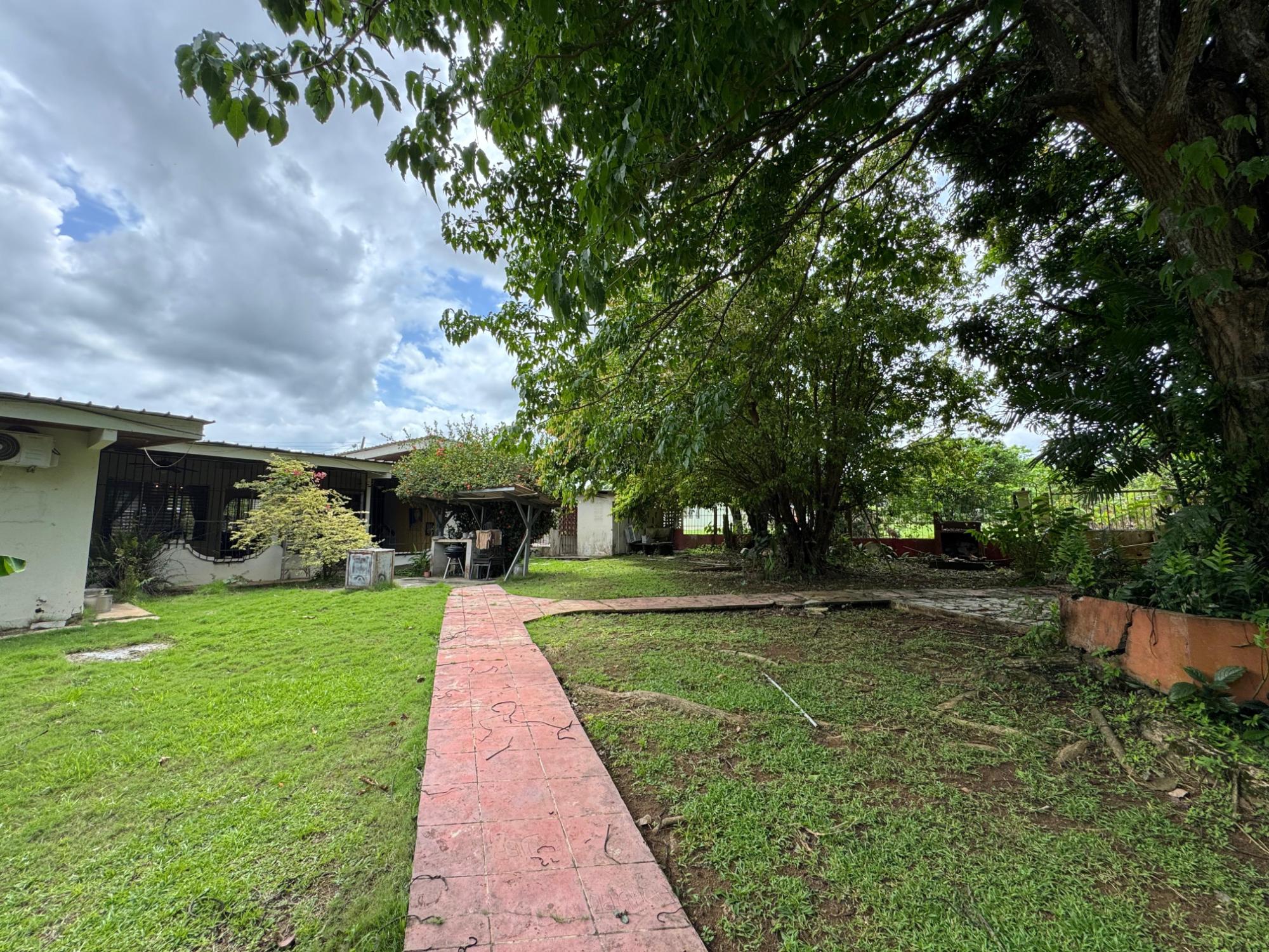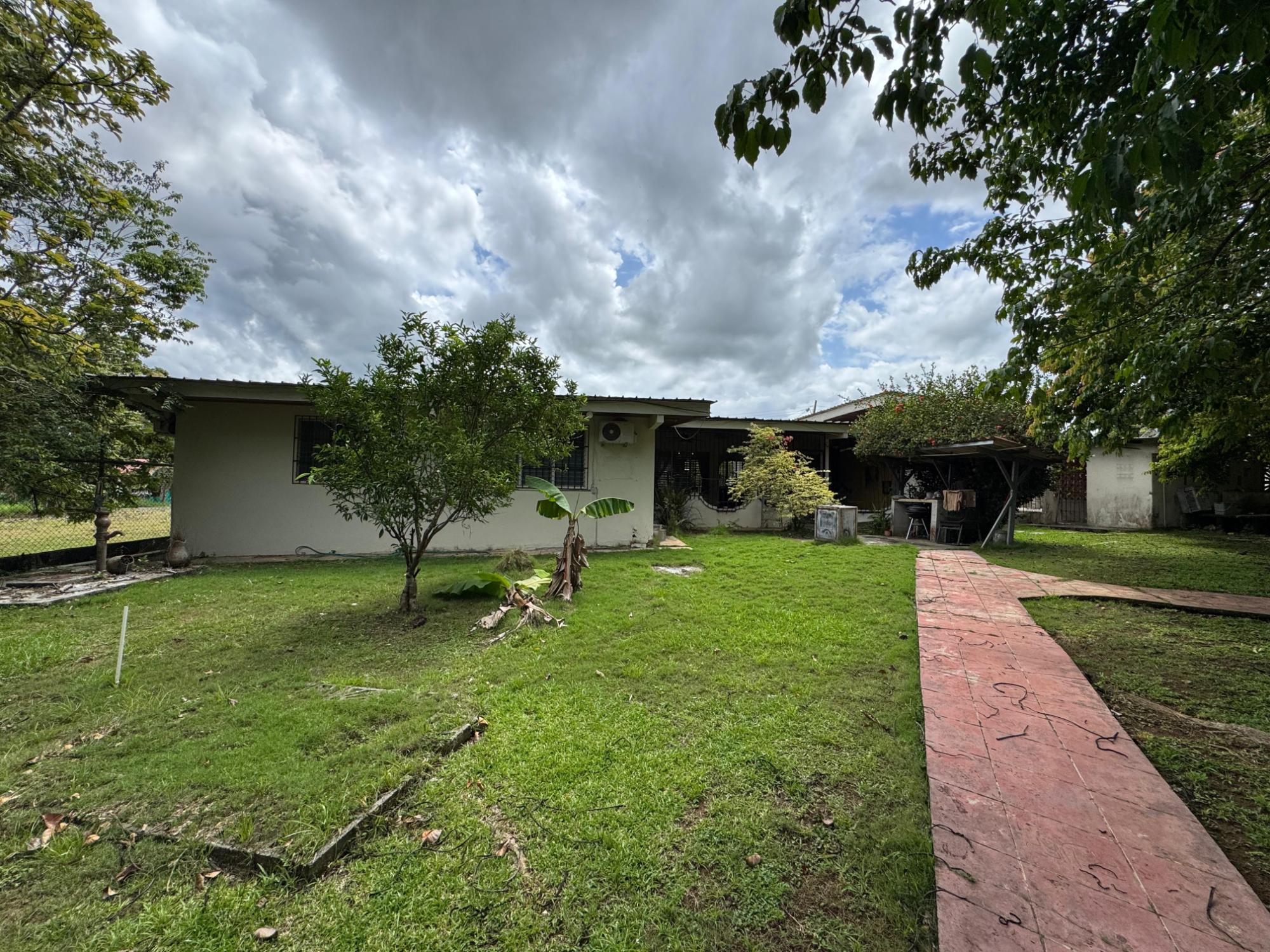 Esta propiedad se ubica en una calle residencial de Santiago de Veraguas, sobre un terreno plano de 1050 m² con amplios espacios al aire libre. La casa tiene una superficie construida de 212,40 m², con 93,78 m² de espacios semiabiertos y 107,09 m² de superficie pavimentada. Características de la propiedad: Dormitorios y baños: La casa ofrece 4 dormitorios y 4 baños. El dormitorio principal incluye un armario de teca a medida (instalado en 2023) y baño en suite. Sala de estar y comedor: La espaciosa sala de estar y comedor de planta abierta da directamente a una terraza cubierta, ideal tanto para el día a día como para el entretenimiento. Cuarto de servicio: La propiedad incluye un cuarto de servicio independiente con baño propio, lo que ofrece flexibilidad para acomodar más espacio o almacenar cosas. Cocina: La cocina fue remodelada en 2020, con electrodomésticos modernos y una distribución funcional. Estacionamiento y espacio exterior: Un portal cubierto ofrece espacio para estacionar dos vehículos. La propiedad también incluye árboles frutales y forestales, ofreciendo un espacio verde privado.