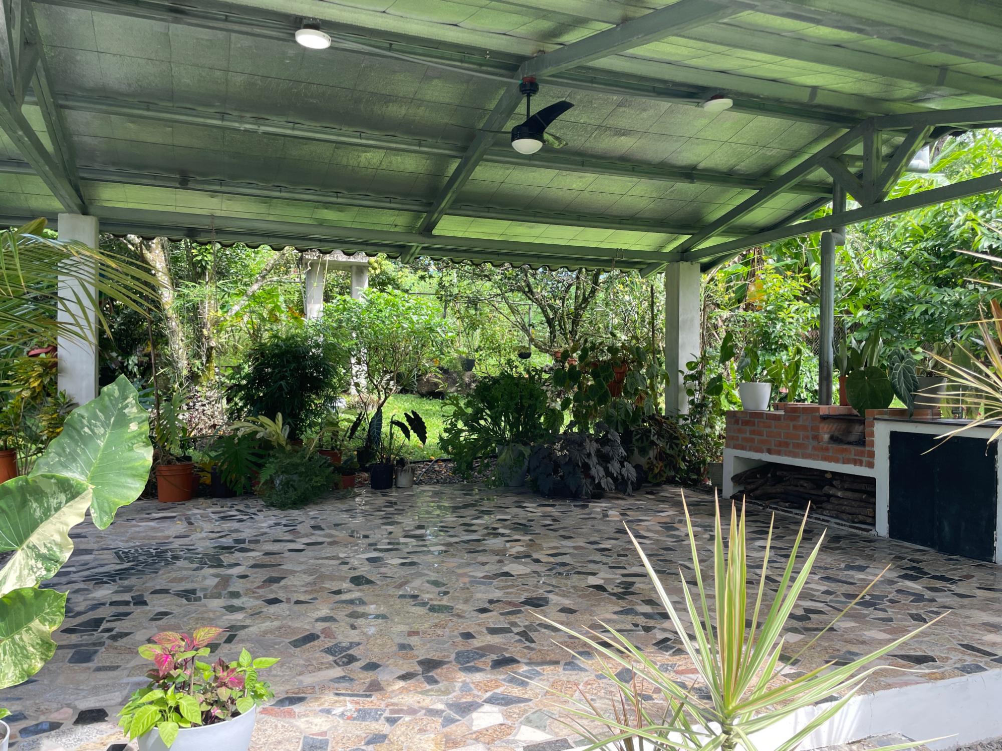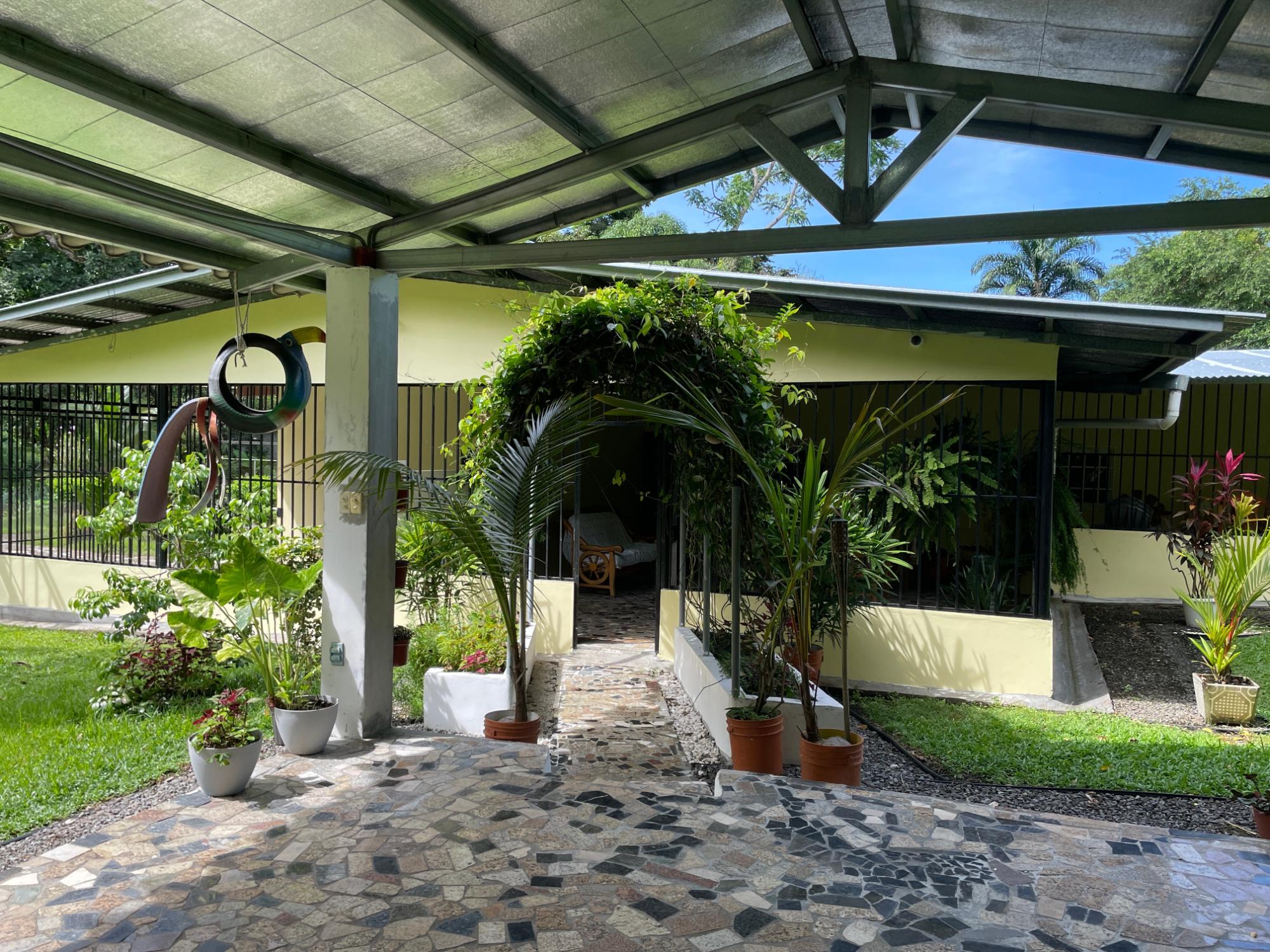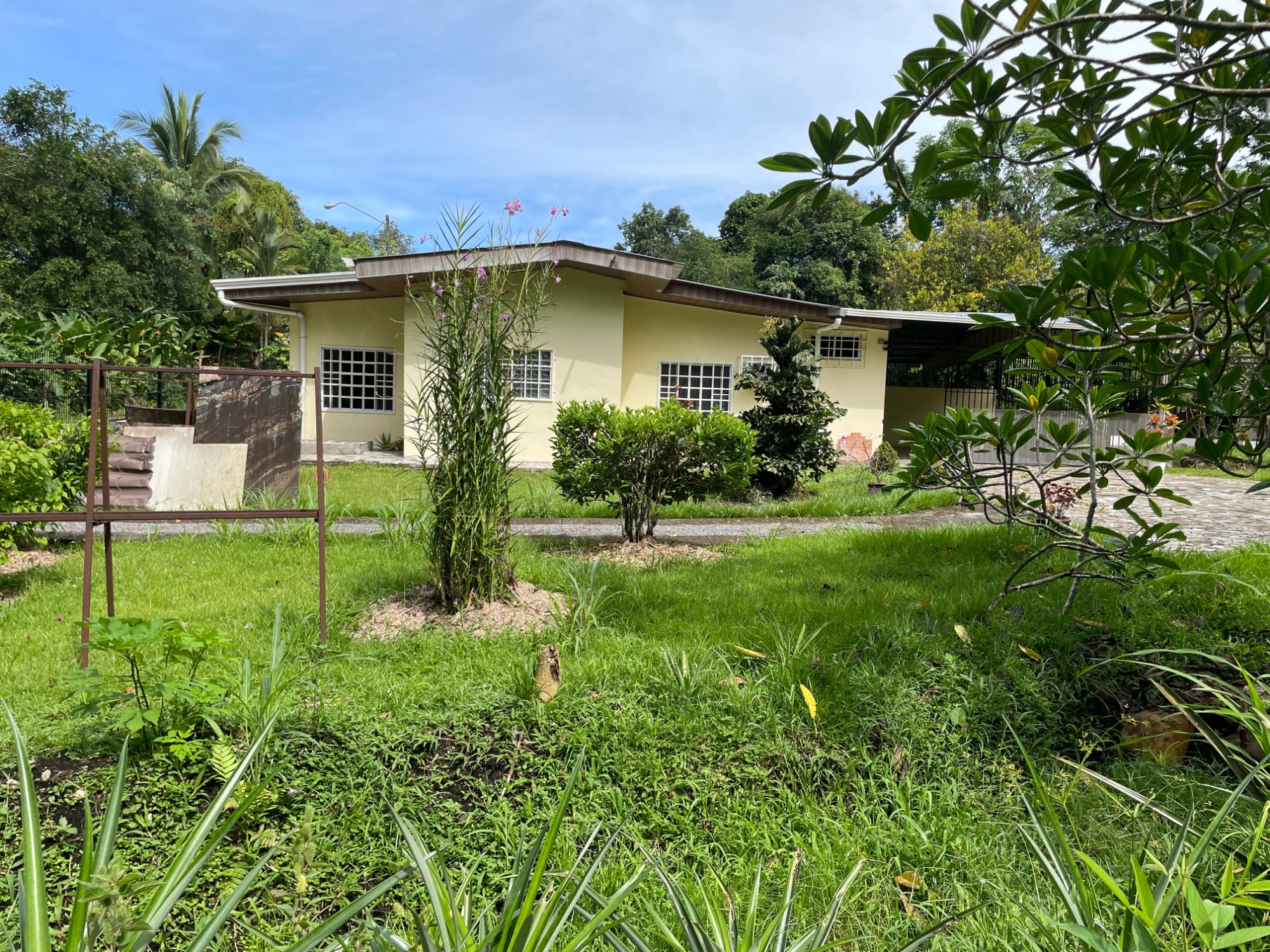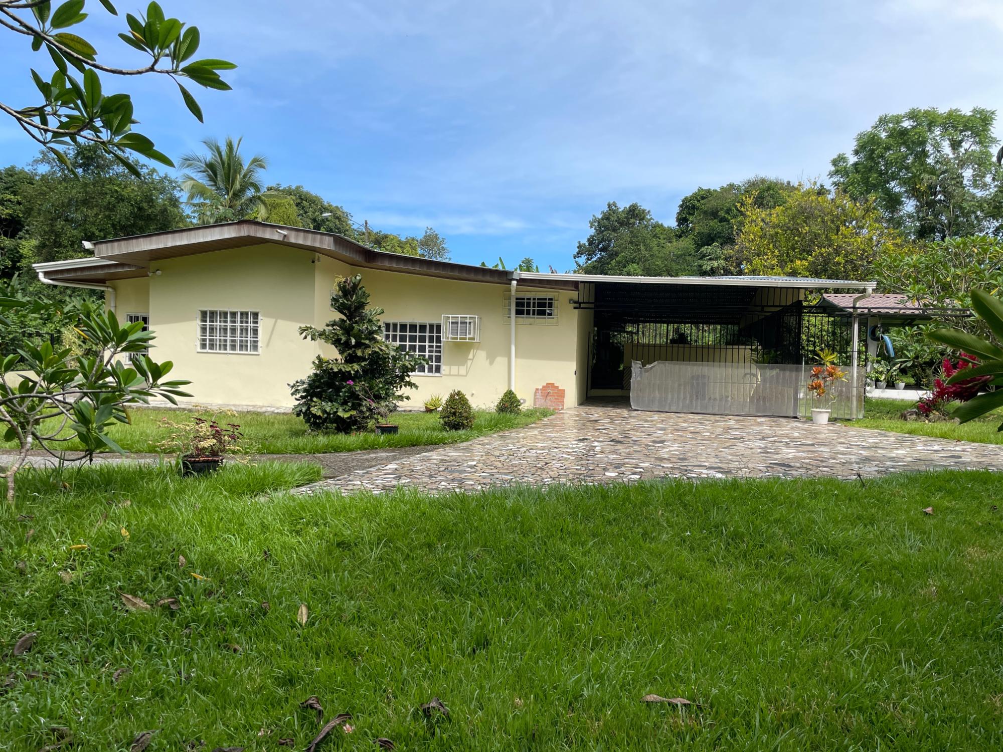 ¿Busca un terreno grande, una casa espaciosa con terraza y fácil acceso a la autopista? ¡Aquí la tiene! A solo 20 minutos por la cercana autopista Interamericana de David, la segunda ciudad más grande de Panamá, y a 5 minutos de las tiendas y restaurantes de Bugaba, esta casa recientemente renovada le ofrece lo mejor de ambos mundos: accesibilidad y privacidad. Recientemente renovada (incluido un nuevo sistema eléctrico de 200 W), la casa cuenta con dos amplios dormitorios con aire acondicionado que comparten un baño Jack and Jill, otro dormitorio más pequeño que también se puede utilizar como despacho, un salón-comedor principal y una gran cocina con un pasaplatos que da al salón. La cocina aún no está instalada, por lo que los nuevos propietarios tienen toda la libertad para elegir la cocina de sus sueños. Probablemente pasará la mayor parte del tiempo en la gran terraza exterior con vistas a los generosos jardines. El amplio terreno cuenta con árboles frutales, flores y senderos, así como un pozo privado además del suministro público de agua. Y si desea aún más espacio: el terreno contiguo tiene 1200 m2 y también está disponible por 45 000 $. Su coche estará protegido del sol y la lluvia en su cochera y toda la propiedad está cercada de forma segura.