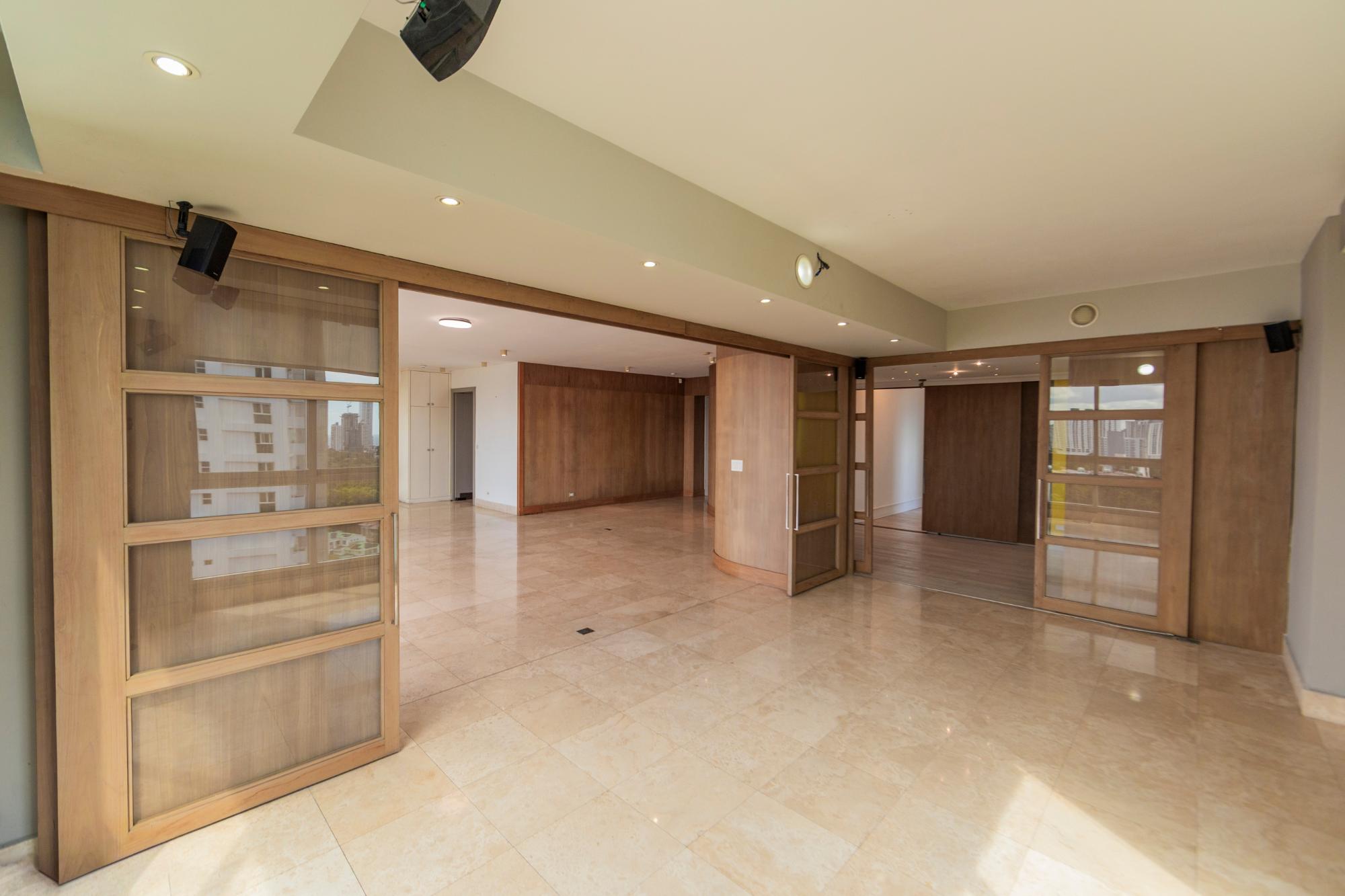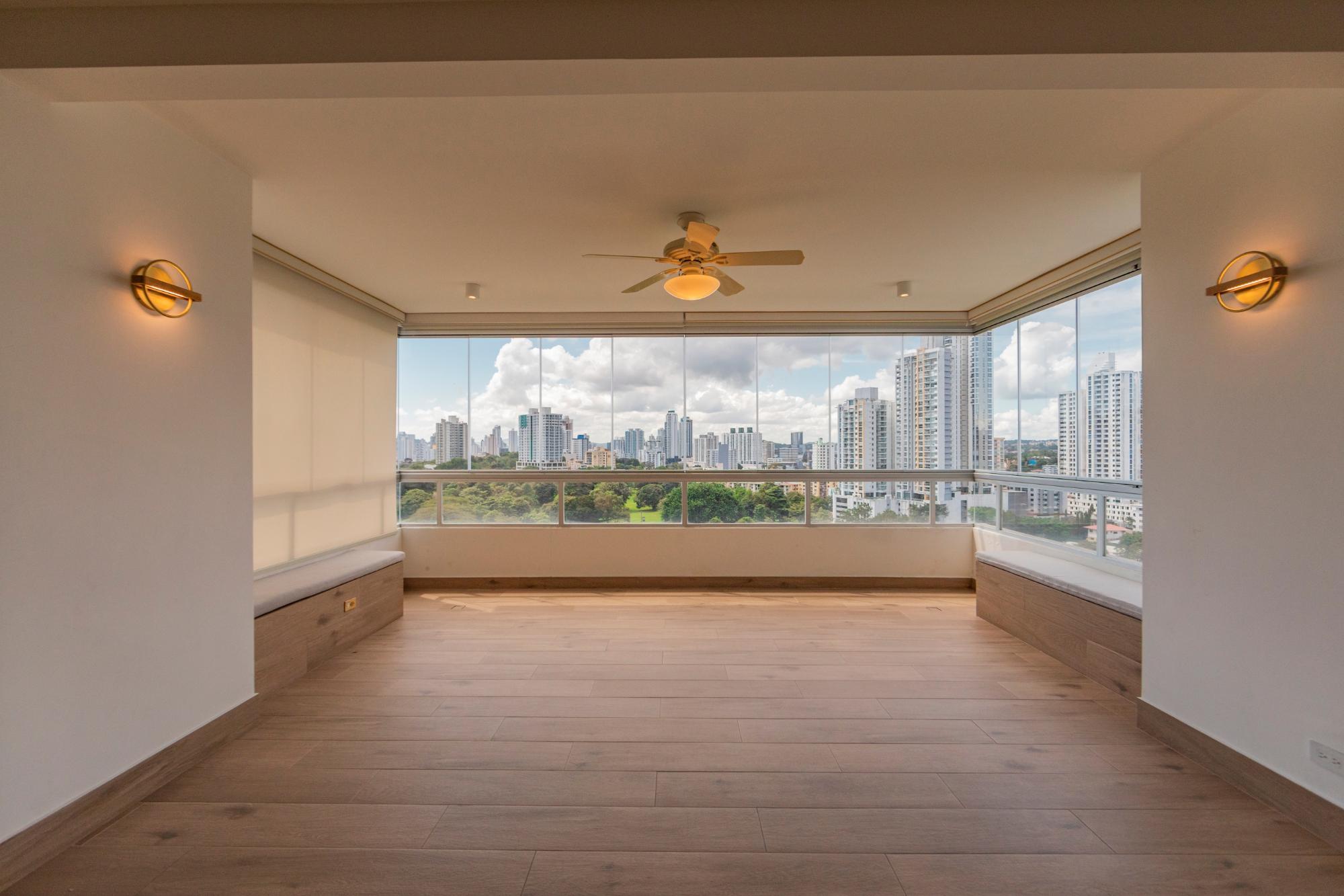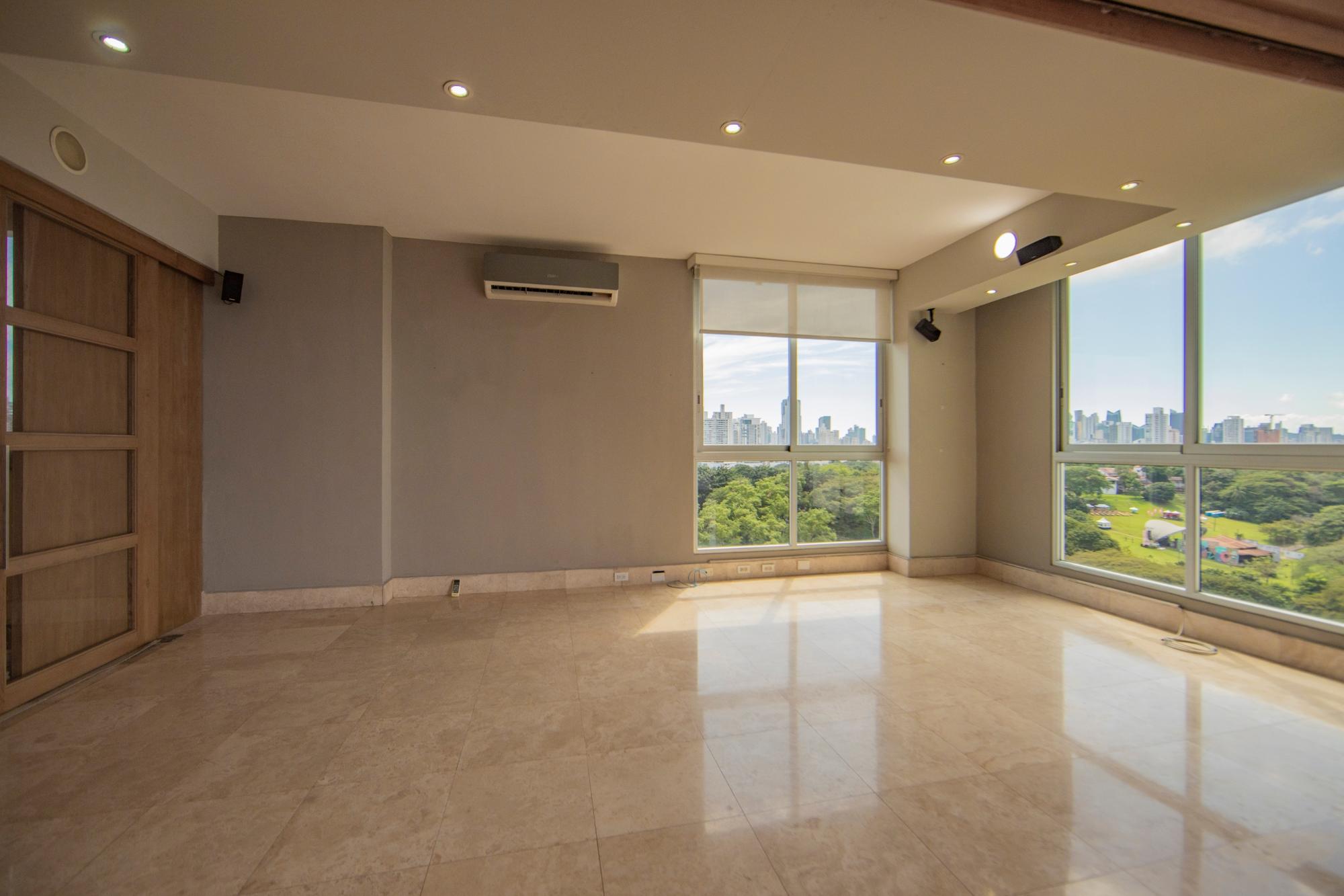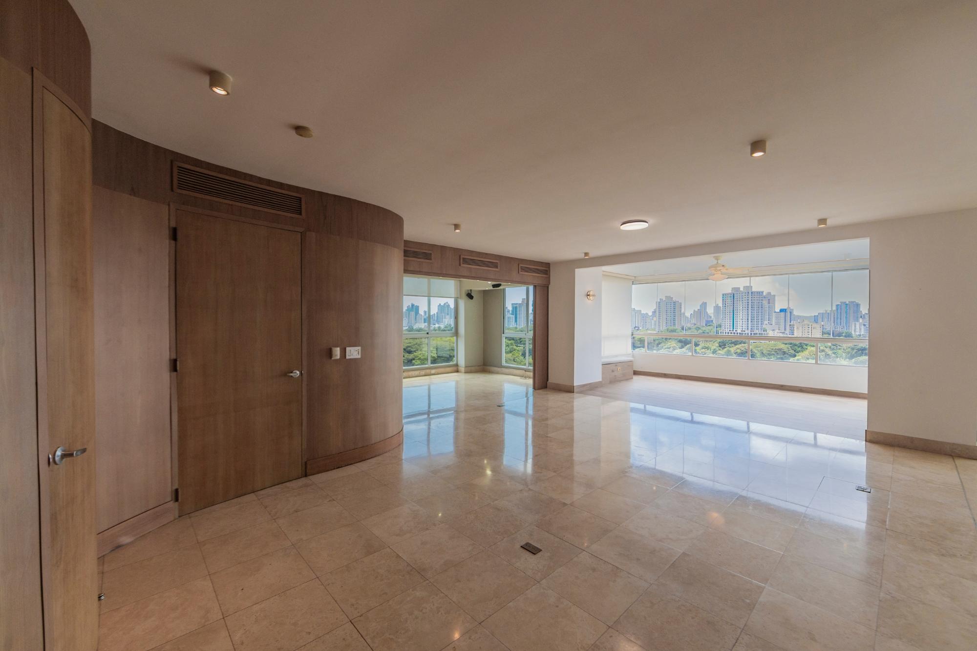 Vive rodeado de naturaleza y ciudad en este espectacular apartamento de 338 m², ubicado en el exclusivo PH Park 1, con vista directa al Parque Omar y acceso privado al parque. Este hogar destaca por sus amplios y luminosos espacios, ideales para familias que buscan comodidad, privacidad y una ubicación privilegiada. Características del apartamento: 1 apartamento por piso, ofreciendo máxima privacidad. 3 recámaras, cada una con su baño. 3.5 baños en total. Cuarto y baño de servicio. Sala familiar + den cerrado, perfecto para estudio, oficina o sala de juegos. Amplia sala-comedor con excelente iluminación natural. Balcón con ventanas retractables, que permiten abrirlo o cerrarlo según la necesidad, integrando perfectamente el espacio interior y exterior. Cocina recientemente remodelada, moderna y funcional. Pisos de mármol en áreas sociales. 3 estacionamientos + 1 depósito incluido. Disfruta todos los días de la mejor vista a la naturaleza, con el verdor del Parque Omar al frente, combinado con el impresionante skyline de la ciudad. Un equilibrio perfecto entre tranquilidad y ubicación estratégica.