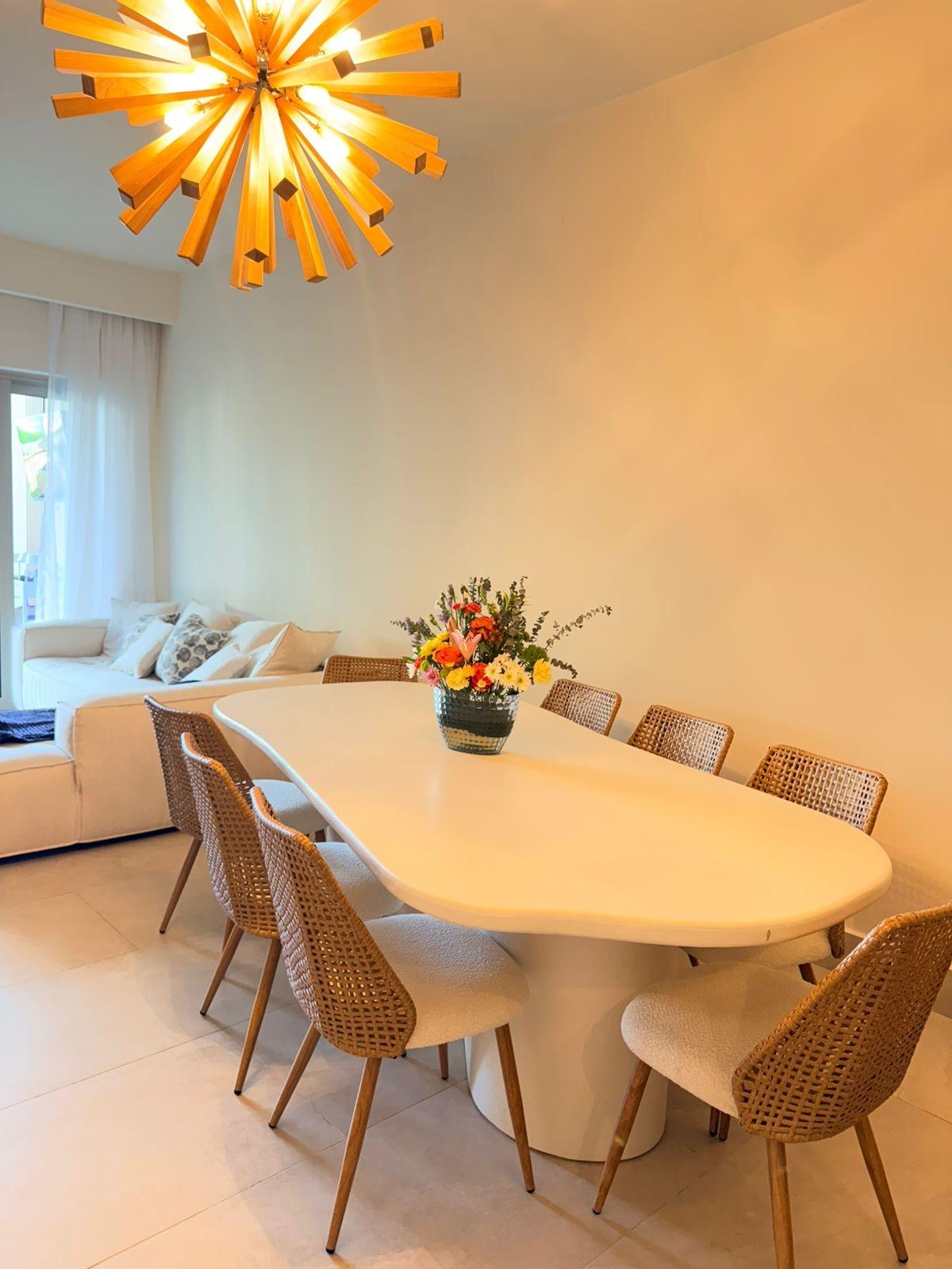 Se vende uno de los mejores apartamentos de Playa Escondida, ubicado en el prestigioso proyecto La Marina Village, en planta baja, diseñado para quienes buscan lujo, privacidad y una experiencia frente al mar sin comparación. Características Exteriores -Vista directa al mar -Piscina privada climatizada en la terraza -Área de BBQ marca Napoleon -Techos panorámicos con aislamiento térmico solar Interior del Apartamento -Amplia sala con TV de 70” -Cortinas eléctricas en áreas sociales y recámaras -Juego de sala y comedor italiano de alta gama -Decoración de paredes en madera natural -Cocina totalmente acondicionada, con utensilios de alta calidad -Sistema invisible de filtración de agua, marca alemana -Aire acondicionado central inverter, con control desde el celular -Sistema de cámaras de seguridad y control inteligente de acceso con alertas en tiempo real Distribución *4 recámaras, cada una con su baño privado *Cuarto de empleada con baño *Estudio privado, equipado con tv de 100 pulgadas Terrazas y Comodidades -Dos terrazas privadas -Segunda terraza de más de 120 m², con grama artificial Dos estacionamientos externos con acceso directo a la propiedad (sin necesidad de usar elevador) Metrajes 260 m² de área cerrada 200 m² en terrazas Distribución ideal para disfrutar al máximo del estilo de vida de playa Precio de Venta: $1,150,000 Contáctanos para más información o para agendar una visita privada.