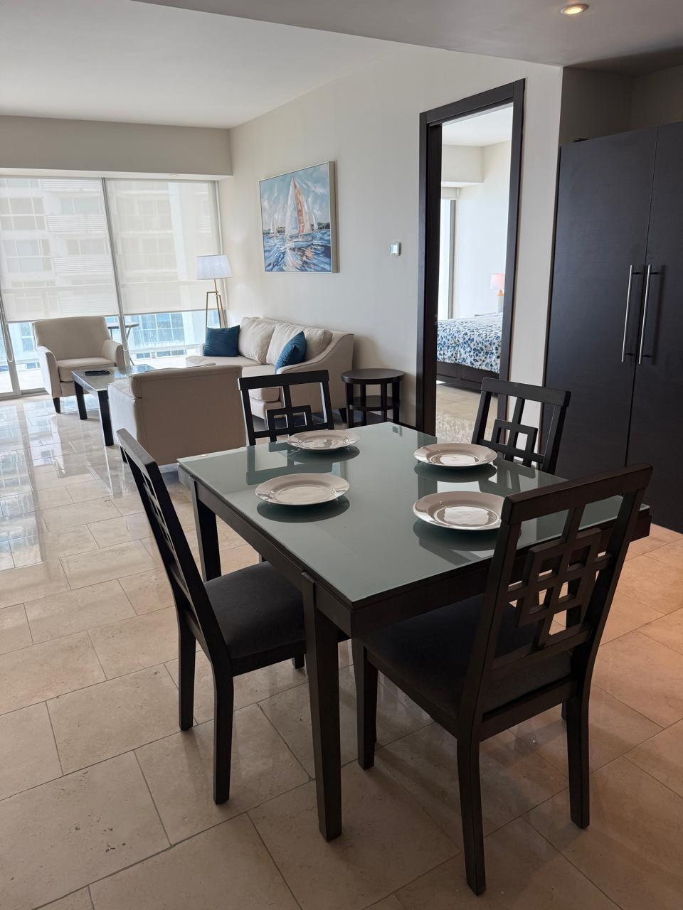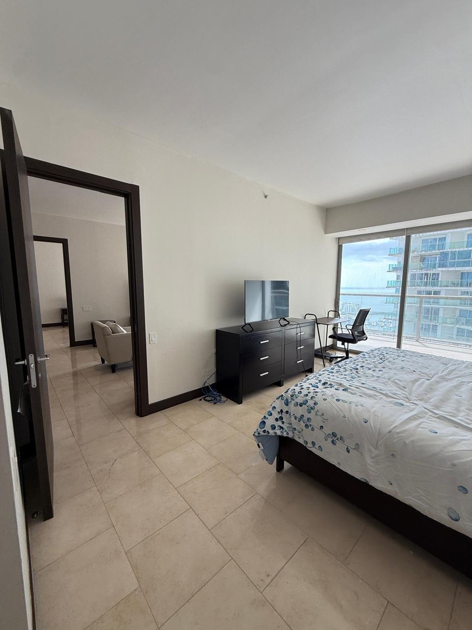 Ocean Club (JW Marriott Panamá) – Apartamento de 2 dormitorios en renta Ubicado en el piso 26, este apartamento de 2 dormitorios ofrece unas vistas espectaculares de la bahía de Panamá. La unidad cuenta con dos dormitorios con baño privado, un baño de invitados y una gran terraza privada ideal para disfrutar de las vistas al mar y a la ciudad. El Ocean Club (antes Trump Ocean Club) ofrece servicios de lujo al estilo de un hotel, como restaurantes, casino, locales de ocio y el bar en la azotea más alto de Panamá. Alquiler mensual: 2800,00 dólares estadounidenses.