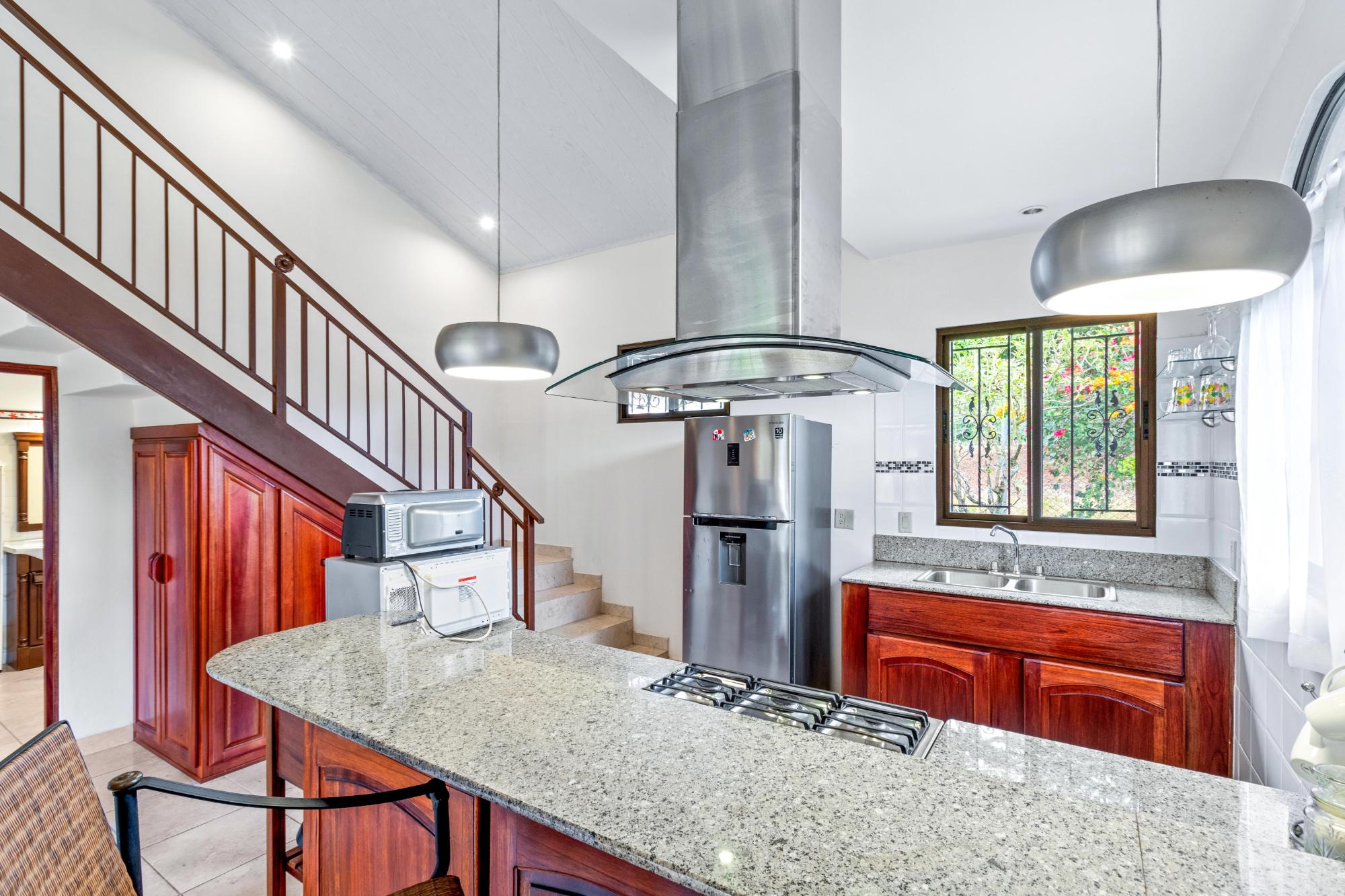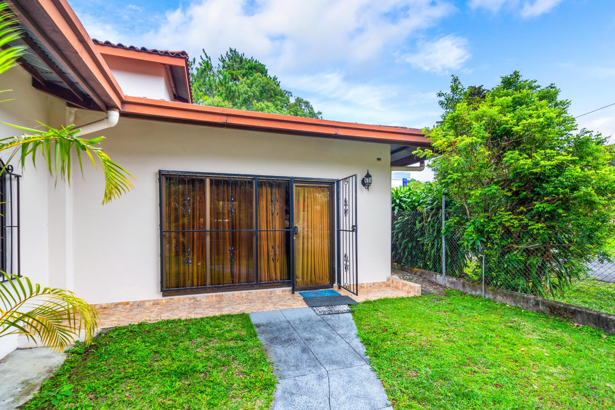 Esta propiedad tiene potencial comercial para generar ingresos significativos, ubicada en pleno centro de Boquete, junto a la Plaza Los Senderos. Actualmente, esta propiedad cuenta con una encantadora casa de 2 dormitorios y 2 baños, con un apartamento de invitados independiente de 1 dormitorio que ofrece potencial de ingresos. La casa fue demolida y se transformó por completo, junto con un apartamento de invitados de nueva construcción en 2013. La casa principal cuenta con una amplia zona exterior frontal para varios estacionamientos, el lote está completamente cercado e incluye una entrada con portón. Hay mucho espacio para expandir la parte delantera o, si es comercial, convertirla en un área de estacionamiento de 6 o más espacios. El techo fue hecho profesionalmente con tejas sintéticas rojas ecológicas. La casa está protegida con rejas de seguridad Fuertec muy confiables y seguras, y un amplio tanque de agua de reserva de 300 galones. En el interior, la casa contiene una sala de estar y un comedor abiertos. La cocina está bellamente diseñada, que combina a la perfección estilo y funcionalidad. Con elegantes gabinetes de madera noble hechos a medida con detalles en paneles de vidrio y encimeras de granito, esta cocina ofrece amplio espacio de almacenamiento y trabajo, tanto para cocinar como para recibir invitados. El dormitorio principal ofrece comodidad y personalidad. Una pared con acento azul intenso crea un punto focal espectacular detrás de la cama, complementada con cortinas a juego y una elegante alfombra que unifica la habitación. La luz natural inunda el espacio a través de un gran ventanal con detalles de hierro forjado. El suelo de baldosas en tonos neutros crea una base limpia y de bajo mantenimiento en toda la habitación. Las estanterías empotradas funcionales ofrecen un amplio espacio para guardar la ropa blanca, mientras que el arco abierto contiguo conduce a un vestidor.