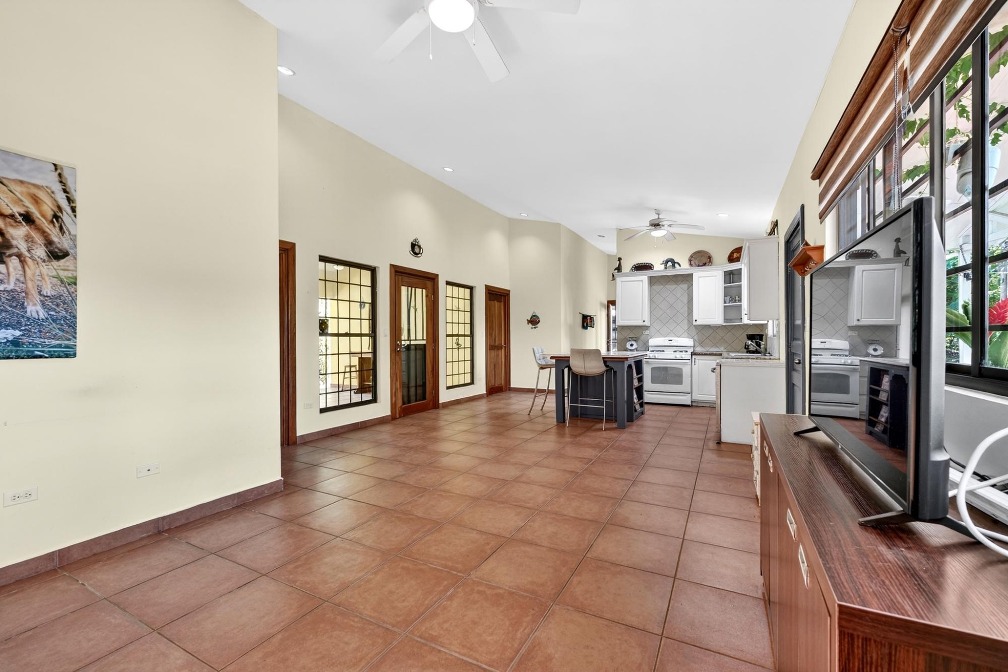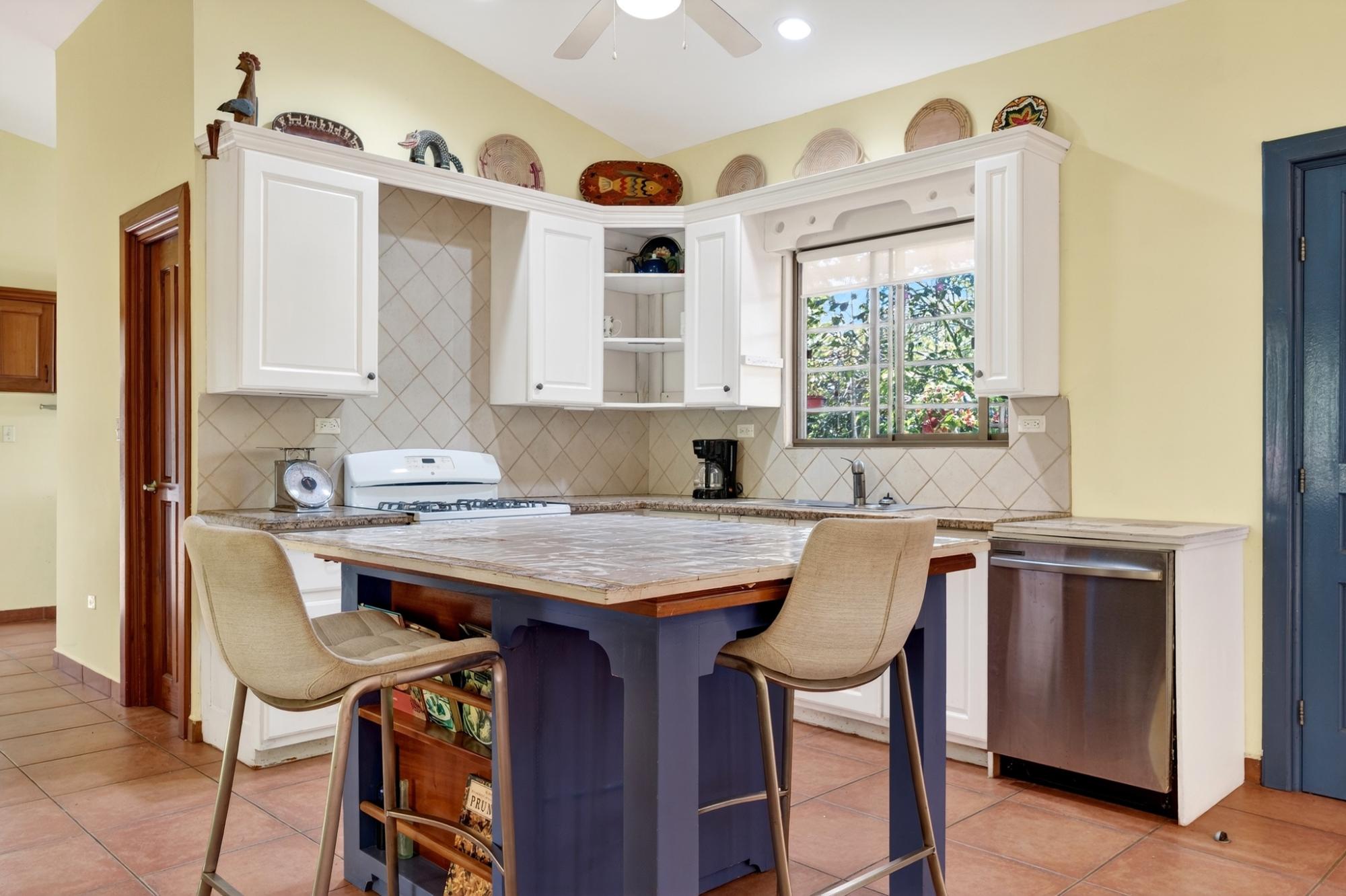 Encantadora casa con jardín de 2 habitaciones y 2 baños en el codiciado Potrerillos, ubicada en un terreno de 1000 m² totalmente aprovechable, rodeada de un paisaje tropical maduro y vistas a las montañas. La amplia terraza delantera cubierta, rodeada de enredaderas floridas, ofrece una vida al aire libre ideal durante todo el año. En el interior, aproximadamente 108 m² de espacio abierto conecta la cocina, el comedor y la sala de estar, con abundante luz natural y vistas al jardín. La cocina cuenta con amplios gabinetes, encimeras de azulejos y una isla central. Dos amplios dormitorios ofrecen flexibilidad para invitados o para usar como oficina en casa. Una gran terraza lateral cubierta añade espacio adicional para el entretenimiento al aire libre, y un espacio de almacenamiento independiente ofrece una práctica comodidad. Ubicada en una zona acogedora conocida por su fuerte presencia internacional y su consolidada comunidad de expatriados, a solo minutos de los servicios de la ciudad. Ideal como residencia permanente, retiro o inversión.