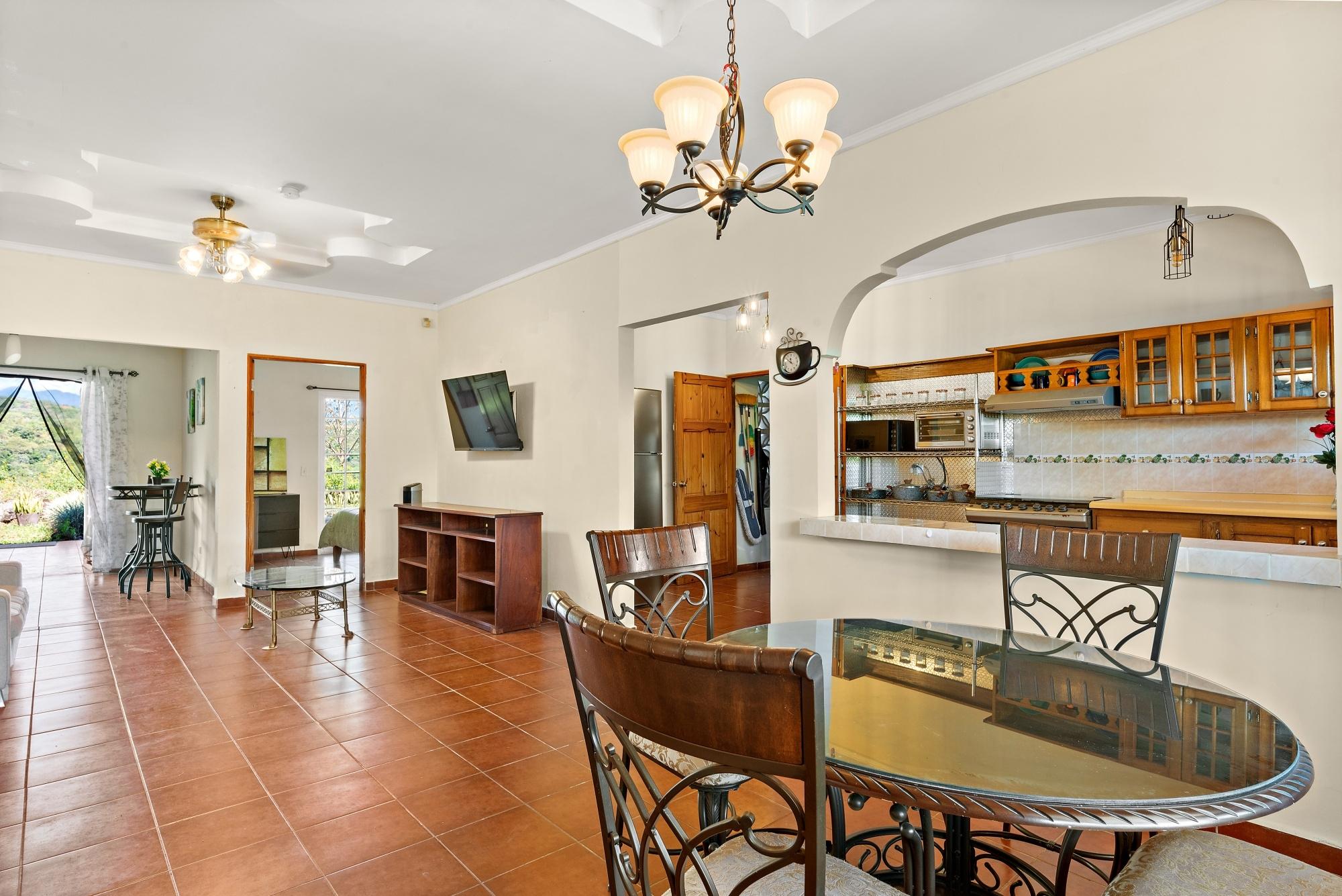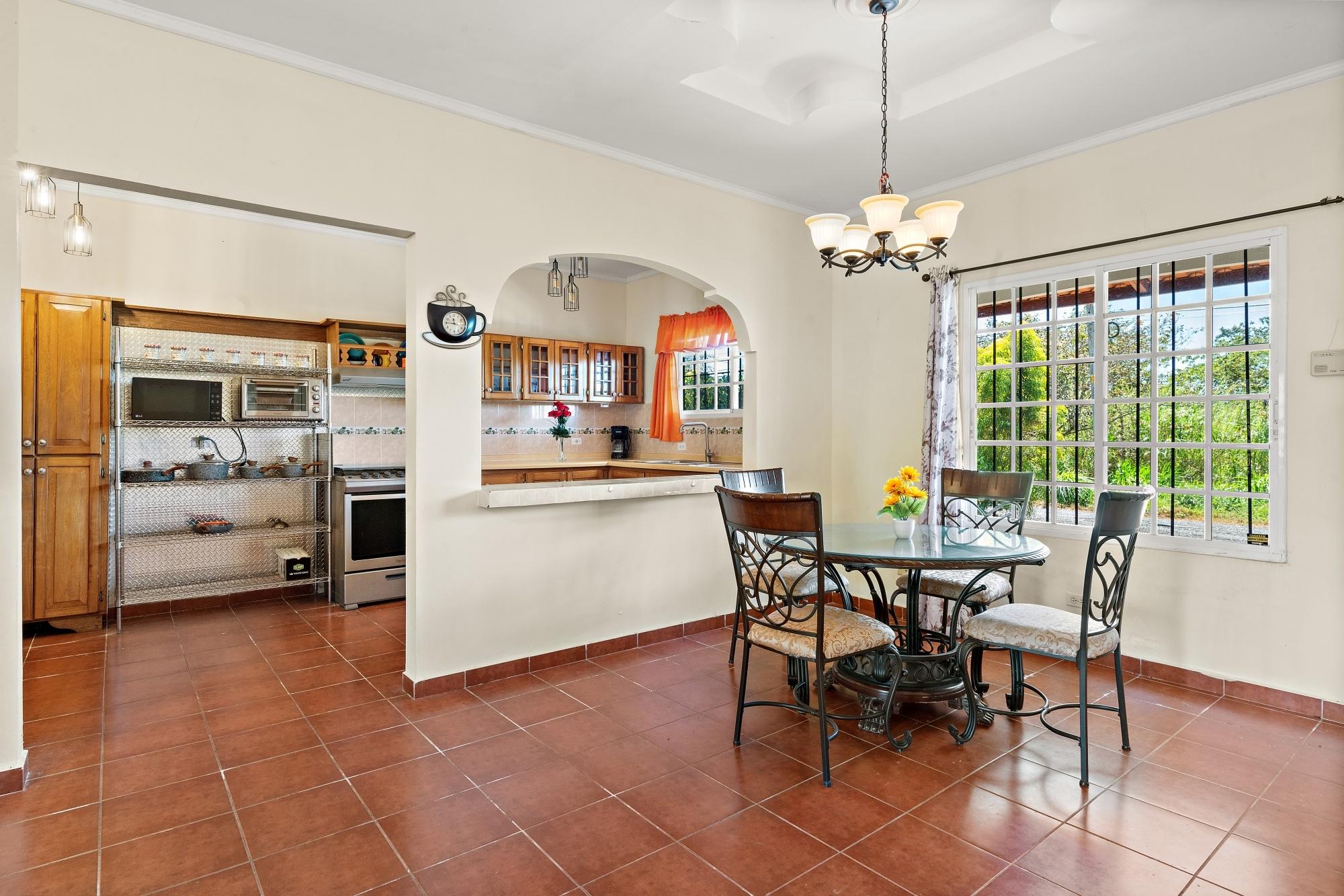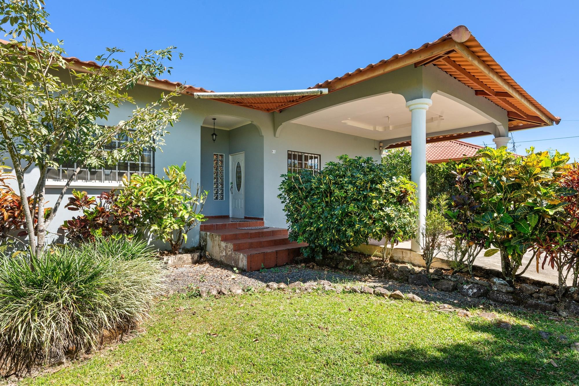 Esta casa impecable y bien mantenida se encuentra en el consolidado barrio residencial de Brisas Boqueteñas, a aproximadamente 15 minutos del centro de Boquete. Ubicada en un generoso terreno de 800 m² y ubicada directamente sobre el cañón, la propiedad ofrece hermosas vistas al cañón y a la montaña en un entorno tranquilo sin sentirse aislada. La casa es práctica, cómoda y de fácil mantenimiento, ideal para una pareja, una familia o cualquier persona que busque un estilo de vida relajado cerca del pueblo. La propiedad ofrece tres dormitorios con armarios empotrados, dos dormitorios con baño privado y unidades de aire acondicionado independientes en cada dormitorio. El dormitorio principal y el segundo dormitorio tienen acceso directo a la terraza cubierta. Características de la casa: La casa tiene una distribución sencilla y abierta que permite una buena iluminación natural y una buena circulación de aire en todas las áreas de estar. • Sala de estar y comedor de planta abierta • Cocina funcional con gabinetes de madera y encimeras duraderas • Rincón de desayuno para comidas informales o café por la mañana • Lavandería convenientemente ubicada junto a la cocina con almacenamiento adicional • Puertas corredizas que conducen a una terraza cubierta con vista al cañón La terraza cubierta es uno de los aspectos más destacados de la casa, que ofrece vistas abiertas al cañón y a la montaña que se pueden disfrutar durante todo el año. • Ideal para relajarse, entretenerse o disfrutar del paisaje • Entorno tranquilo con tráfico mínimo • Un gran equilibrio entre la naturaleza y la vida residencial Detalles adicionales • Semiamueblado (electrodomésticos principales incluidos) • Cochera cubierta • Tanque de reserva de agua en el lugar • Espacio de patio que admite mascotas • Construcción sólida adecuada al clima montañoso de Boquete.