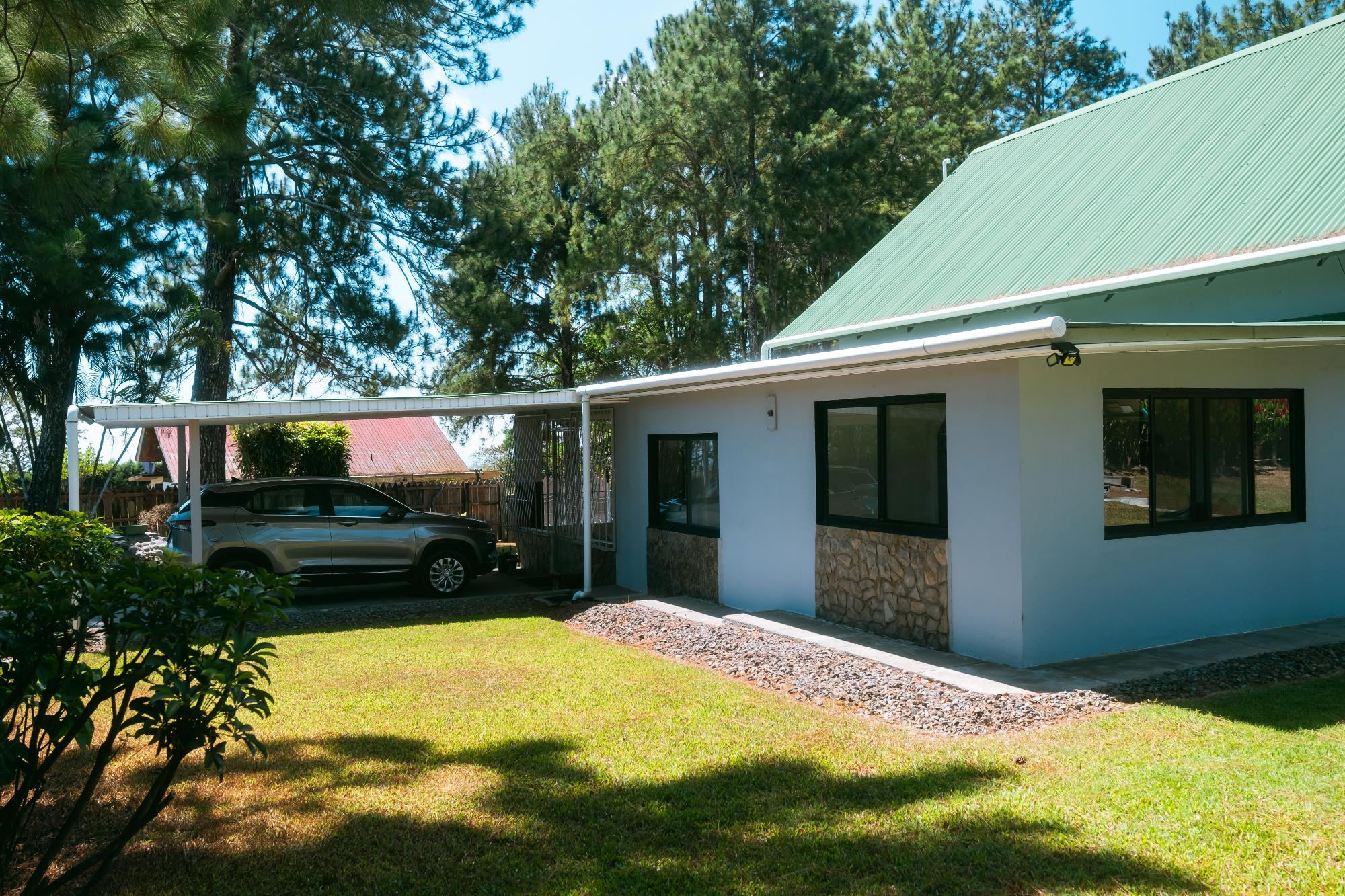 Ubicada en un vecindario tranquilo y acogedor, esta casa se encuentra en un terreno plano de 2108,56 metros cuadrados (22 711,97 pies cuadrados) con impresionantes vistas y amplio espacio para actividades al aire libre. La propiedad cuenta con hermosos jardines con pinos maduros en el perímetro y diversas plantas frutales, como café, naranjo, limón, yaca, moringa, maracuyá, papaya, plátano y un pequeño huerto. El jardín atrae a numerosas aves, incluyendo colibríes, lo que lo convierte en un paraíso para los amantes de la naturaleza. El manantial estacional y dos tanques de agua de reserva (uno para el pozo y otro para el suministro municipal) garantizan un suministro constante de agua. La propiedad incluye una bodega de 2 metros cuadrados (almacén) con un altillo para herramientas y equipo de jardinería. La propiedad está completamente cercada con un portón eléctrico en la entrada y acceso lateral, lo que la hace conveniente para las visitas.