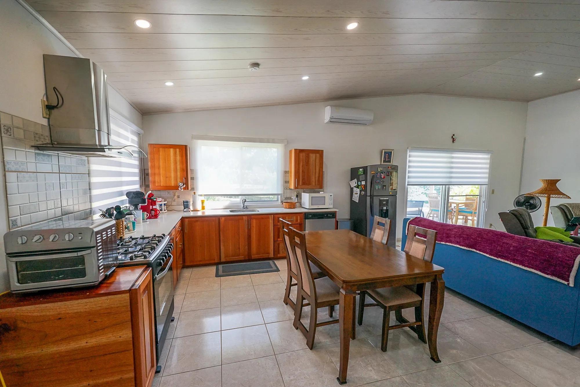 Esta casa de reciente construcción, de 3 dormitorios y 3,5 baños, se encuentra en Alto Boquete, en Vía Caldera, cerca de la entrada a Eden Canyon. La propiedad ofrece 122,5 m² (1319 pies cuadrados) de espacio habitable cerrado, además de una terraza cubierta de 57,25 m² (616 pies cuadrados) y cochera, con un total de aproximadamente 179,75 m² (1935 pies cuadrados) de construcción. La casa se encuentra en un terreno de 718 m² (0,18 acres). La casa se vende amueblada, excluyendo los muebles y pertenencias personales de los inquilinos. Su ubicación ofrece un cómodo acceso tanto a Boquete como a David, a aproximadamente 10 minutos del centro de Boquete y a 20 minutos de David. La propiedad está a solo un minuto del puesto de control policial de Boquete y de Dorado Plus Plaza, que incluye farmacia, supermercado, restaurante y ferretería. La casa forma parte de un pequeño enclave para expatriados y se encuentra junto a la puerta de seguridad 24 horas de Eden Canyon. El patio completamente cercado es apto para mascotas, y la terraza cubierta ofrece vistas a la cordillera de Talamanca. Incluye un tanque de reserva de agua y una bomba de presión. La propiedad recibió recientemente la exención de impuestos y no tiene antecedentes de inundaciones ni deslizamientos de tierra. Hay financiamiento disponible para compradores calificados. El clima es más cálido que en las zonas altas de Boquete, pero más fresco que en las tierras bajas costeras, lo que ofrece un ambiente confortable durante todo el año.