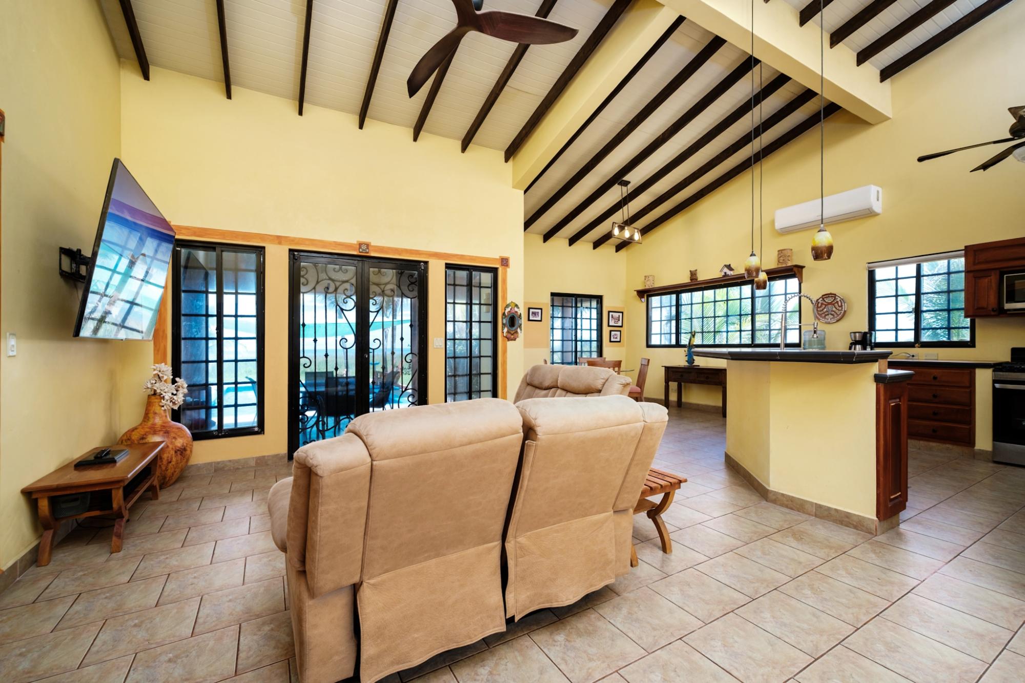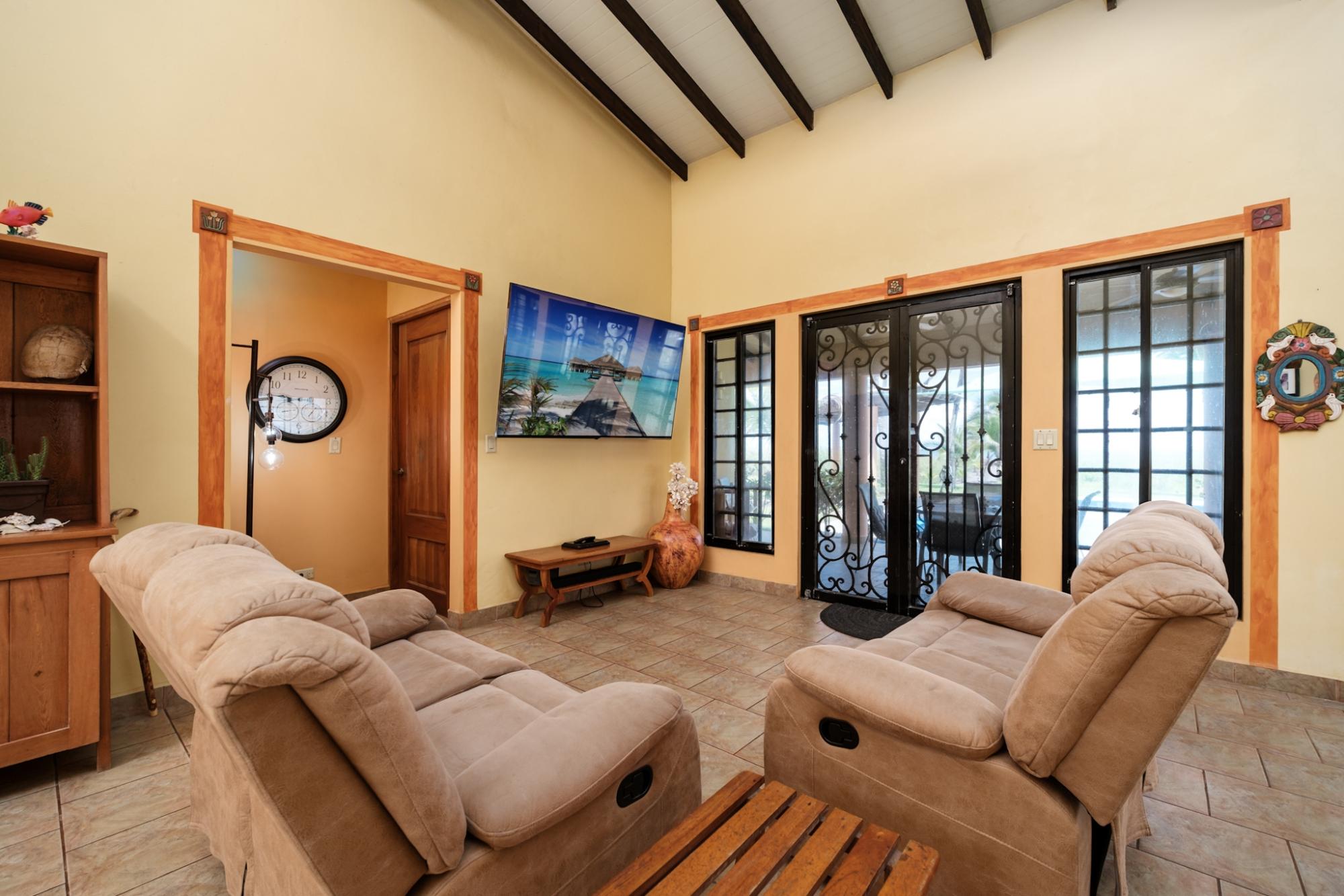 ¡Viva la vida frente al mar en su máxima expresión! Esta hermosa casa de 3 dormitorios y 2 baños frente al mar, a la venta en Playa Barqueta, Panamá, le ofrece todo lo necesario para disfrutar de la vida costera. Ubicada a solo unos pasos de la arena, esta luminosa casa cuenta con techos altos, un diseño abierto y una espaciosa cocina con encimeras de granito y un amplio espacio de trabajo, ideal para recibir invitados o relajarse en casa. Un atrio tropical en el vestíbulo invita a la naturaleza al interior, mientras que 4 unidades de aire acondicionado split, un calentador de agua americano y una ducha exterior brindan comodidad y conveniencia. La segunda suite principal se abre a un patio privado con la brisa del mar, y el sonido de las olas rompiendo le arrullará por la noche. Disfrute de un baño en su piscina frente al mar, relájese después de la playa o relájese en la tranquila comunidad privada con seguridad las 24 horas. Esta propiedad frente al mar en Playa Barqueta combina tranquilidad, seguridad y estilo, a solo 30 minutos de la ciudad de David. Ideal para vivir a tiempo completo, como casa de vacaciones o como inversión para alquiler.