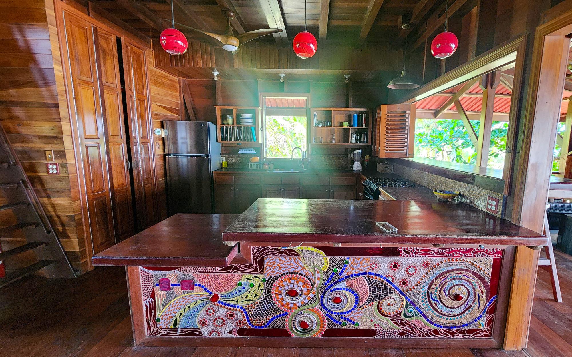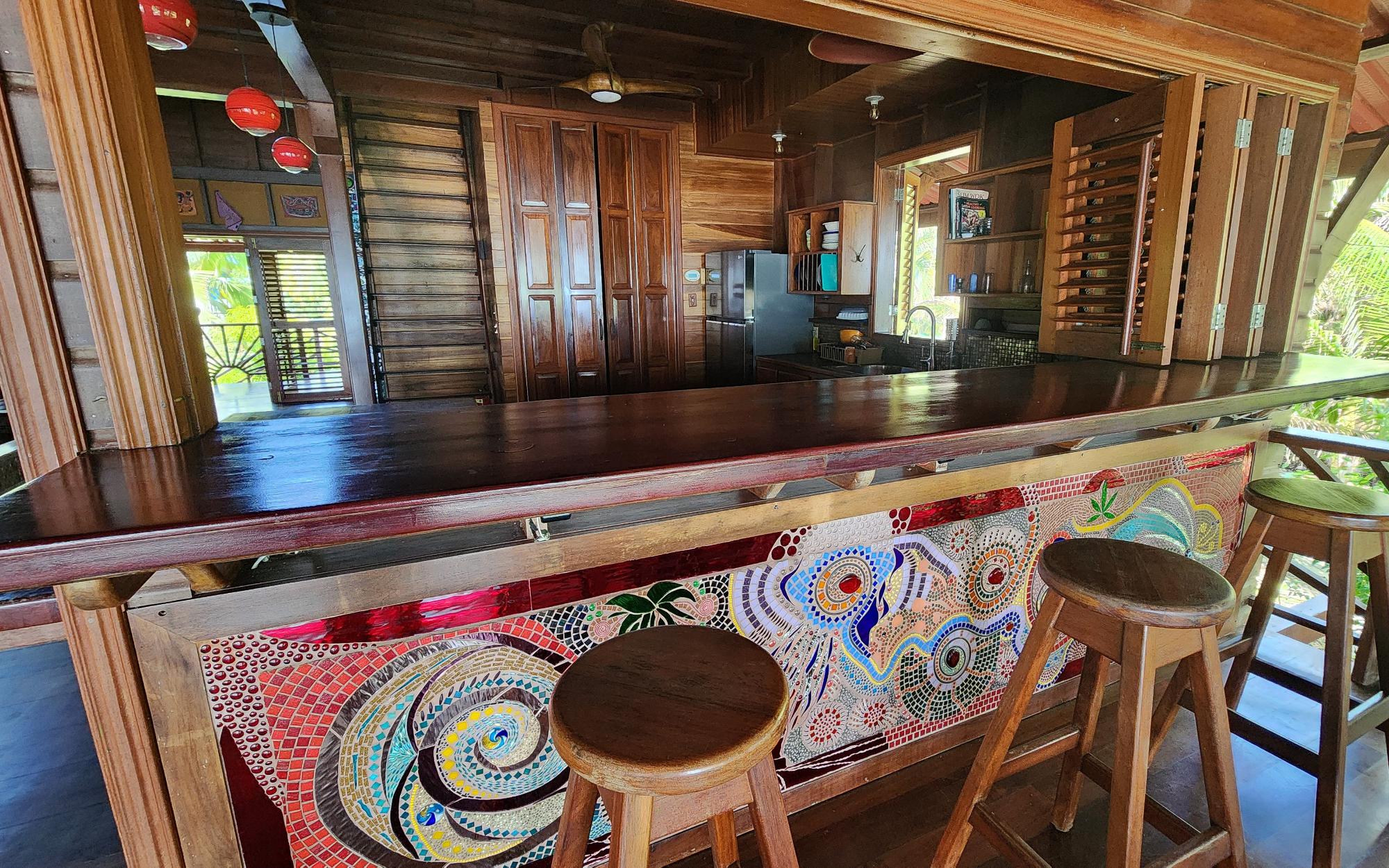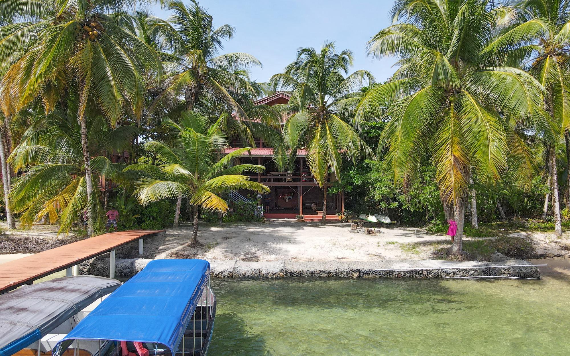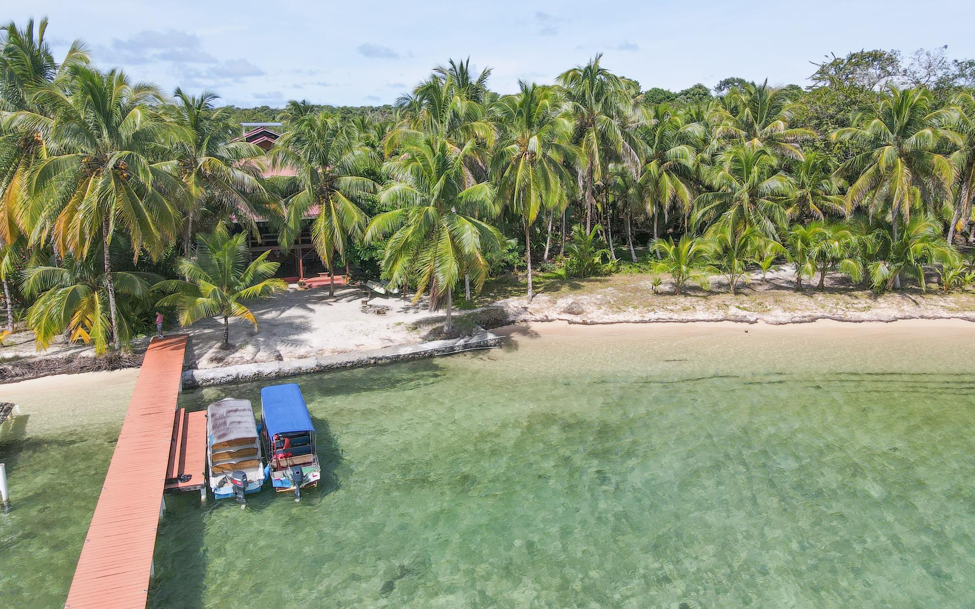 Magistralmente elaborada, esta casa de 3 pisos está adornada con mosaicos únicos que reflejan los destellos del sol caribeño. Construida con las tradicionales maderas nobles de la región, la casa es resistente a plagas, a los daños causados por la sal y el sol, ofreciendo una experiencia frente al mar robusta y de bajo mantenimiento. Desde los espacios exteriores de los 3 niveles, con una hermosa orientación al oeste para disfrutar de atardeceres espectaculares, se pueden admirar las vistas de las Islas Zapatillas y las aguas turquesas del archipiélago. La brisa marina se respira en la casa durante todo el día gracias a su distribución al aire libre. La planta baja cuenta con una amplia sala de estar cubierta con un sendero que conduce al tranquilo paseo marítimo, perfecto para nadar tranquilamente. Hay un área de almacenamiento de concreto y un estudio en el jardín. La playa de arena blanca, las tranquilas aguas cristalinas y un espectacular arrecife de coral hacen de esta casa especial una oportunidad única. Todos parecen soñar con tener playa propia, pero la mayoría de las playas de Bocas del Toro no siempre son accesibles debido al oleaje; sin embargo, esta propiedad ofrece una rara excepción. Ubicado a sotavento de Isla Bastimentos, el paseo marítimo está protegido del mar abierto y es apto para nadar durante todo el año. Lo mejor de ambos mundos se une aquí: kilómetros de playa de arena para pasear y espacio para atracar su embarcación.