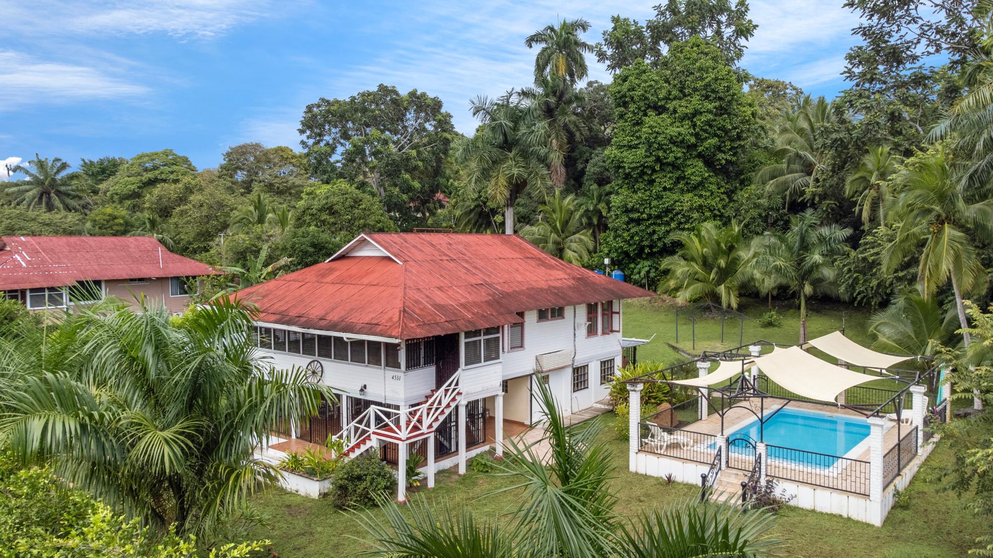 Aquí hay una oportunidad única de poseer una histórica casa ejecutiva de Chiquita Banana Company a un precio increíble en el exclusivo vecindario de Las Palmas, Puerto Armuelles, Panamá. Está a solo medio kilómetro de las tiendas del centro y a 5 minutos en auto del Océano Pacífico. Puerto Armuelles es una ciudad costera en el extremo oeste de Panamá, cerca de la frontera con Costa Rica, conocida por su historia como puerto bananero. Es una ciudad próspera con nuevas carreteras y un nuevo hospital y un gran potencial de inversión con un puerto multipropósito en construcción que se espera que genere miles de empleos y atraiga inversiones en la región. Esta hermosa casa histórica se encuentra en 2,800 m2 de propiedad titulada, ajardinada y cercada con entrada de portón eléctrico y cuenta con una piscina cubierta de fibra de vidrio en el suelo. Está ubicada cerca de una reserva ecológica de la jungla con muchos senderos para caminar donde puede disfrutar de las vistas y los sonidos de la naturaleza. La casa tiene 3 dormitorios y 4 baños con 908 m2 (2,980 pies cuadrados) de espacio habitable cubierto total. Estas casas ejecutivas se caracterizan por su clásico diseño colonial, construidas sobre lodo para permitir la circulación del aire y evitar la humedad, con pisos de madera noble y ventilación tropical. Debajo de la sala de estar principal se encuentra un lanai seguro, ideal para reuniones, fiestas lujosas o tardes tranquilas meciéndose en una hamaca en un exuberante entorno tropical. La casa cuenta con un sistema de seguridad de 8 cámaras, ventiladores en todas partes, aire acondicionado en el dormitorio principal, electrodomésticos de acero inoxidable y un sistema de tanque de agua con ozono de 6,000 litros (1,585 galones).