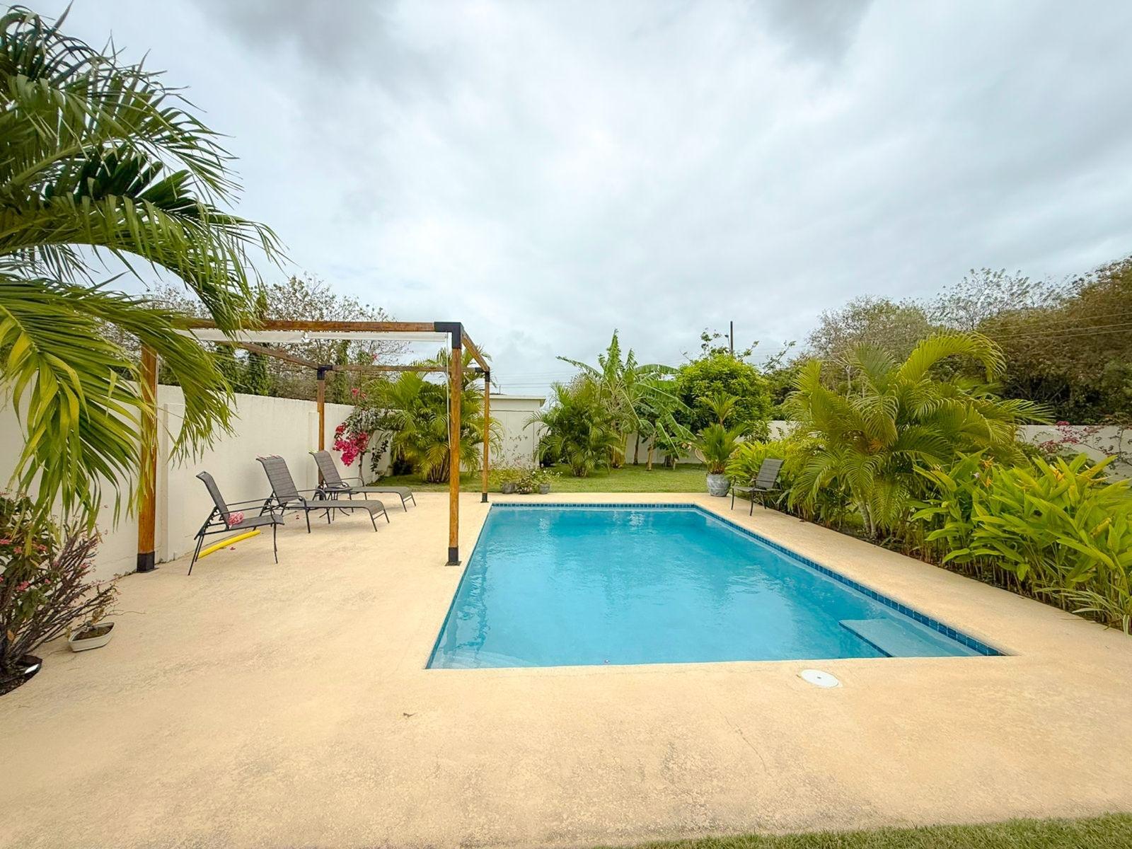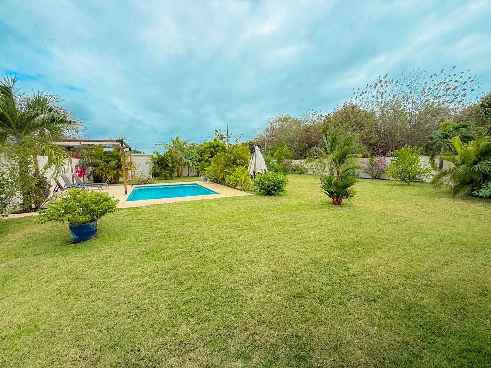 Esta casa inteligente se encuentra en un terreno de 1000 m² con amplios interiores y terraza cubierta, lo que ofrece comodidad, privacidad y un espacio exterior funcional. La propiedad cuenta con techos altos, luz natural, una amplia terraza, reserva de agua, piscina y un patio privado con numerosos árboles frutales, creando un ambiente fresco y natural. Ubicada a 300 m (5 minutos a pie) de un colegio internacional y a solo 5 minutos en coche de la playa, esta casa combina espacio, modernidad y una ubicación conveniente, ideal para familias que buscan un estilo de vida relajado cerca de la costa.