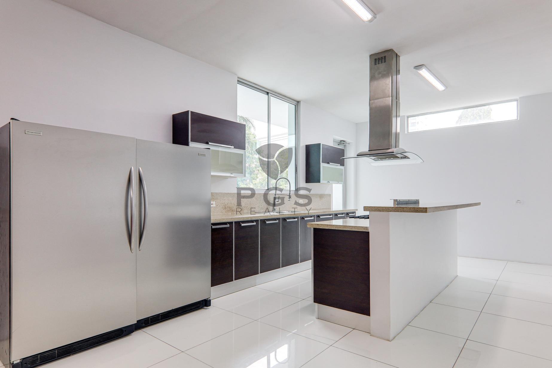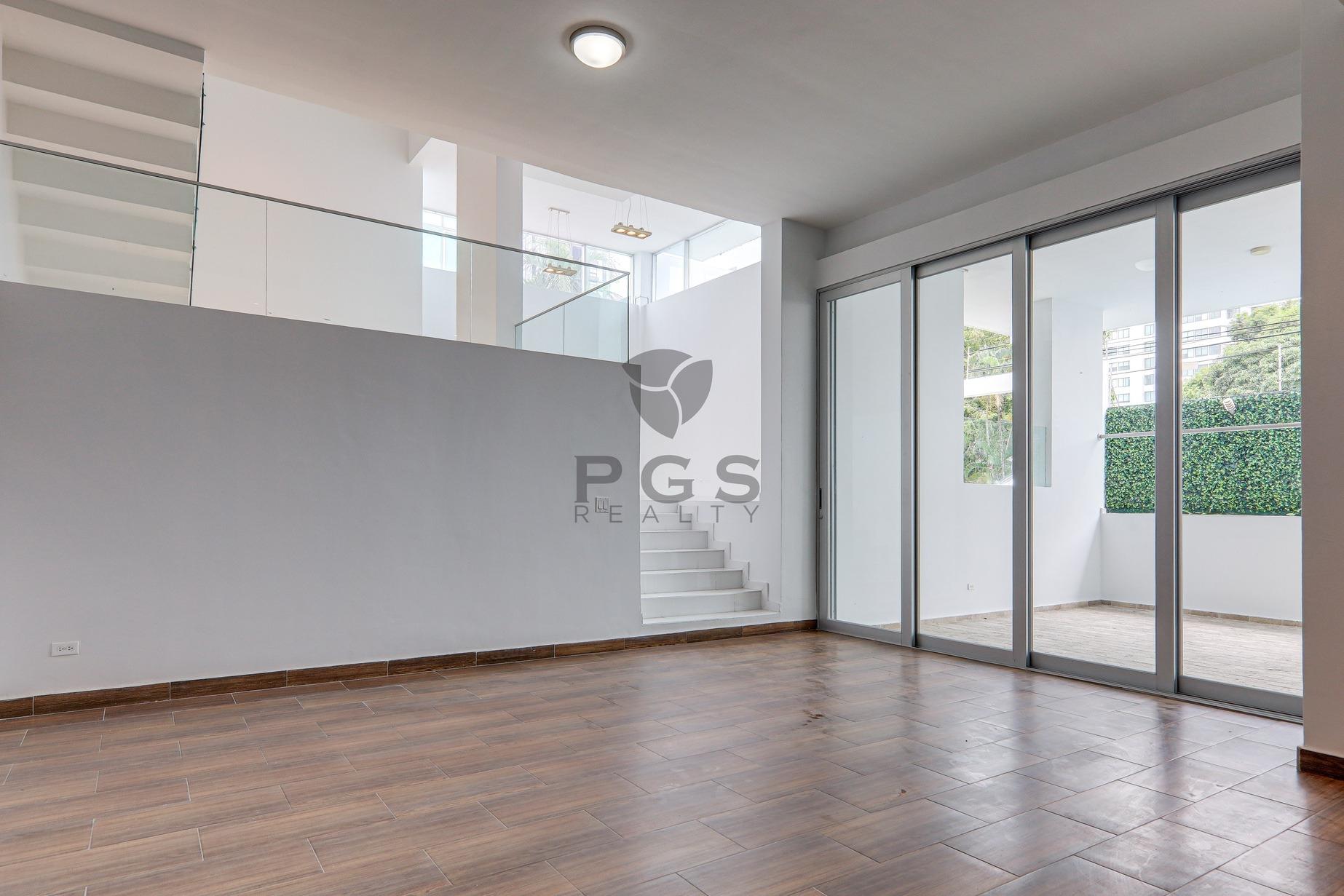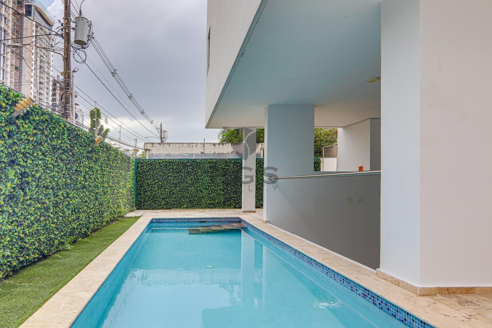 Esta gran casa de tres pisos con terraza en la azotea se encuentra en PH Minimal Houses, una pequeña comunidad cerrada de seis casas adosadas modernas dentro del exclusivo vecindario de Altos del Golf en la Ciudad de Panamá. La propiedad está en muy buenas condiciones y lista para ocupación inmediata. Características: • 540 m2 de construcción • Cuatro (4) recámaras. La recámara principal cuenta con un enorme walk-in closet. • Tres (3) baños completos: dos son privados y uno es compartido. • Medio baño en la sala familiar cerca de la terraza cubierta. • Cocina abierta moderna y amplio comedor. • Sala principal en dos niveles y sala familiar grande. • Piscina privada. • Área de barbacoa y comedor cubierto al aire libre. • Enorme terraza en la azotea con vistas al horizonte de la ciudad. • Estudio en la azotea, perfecto para una oficina en casa, sala de ejercicios o sala de juegos. • Dos (2) espacios de estacionamiento privados con portón de acceso con control remoto. • Seguridad las 24 horas.