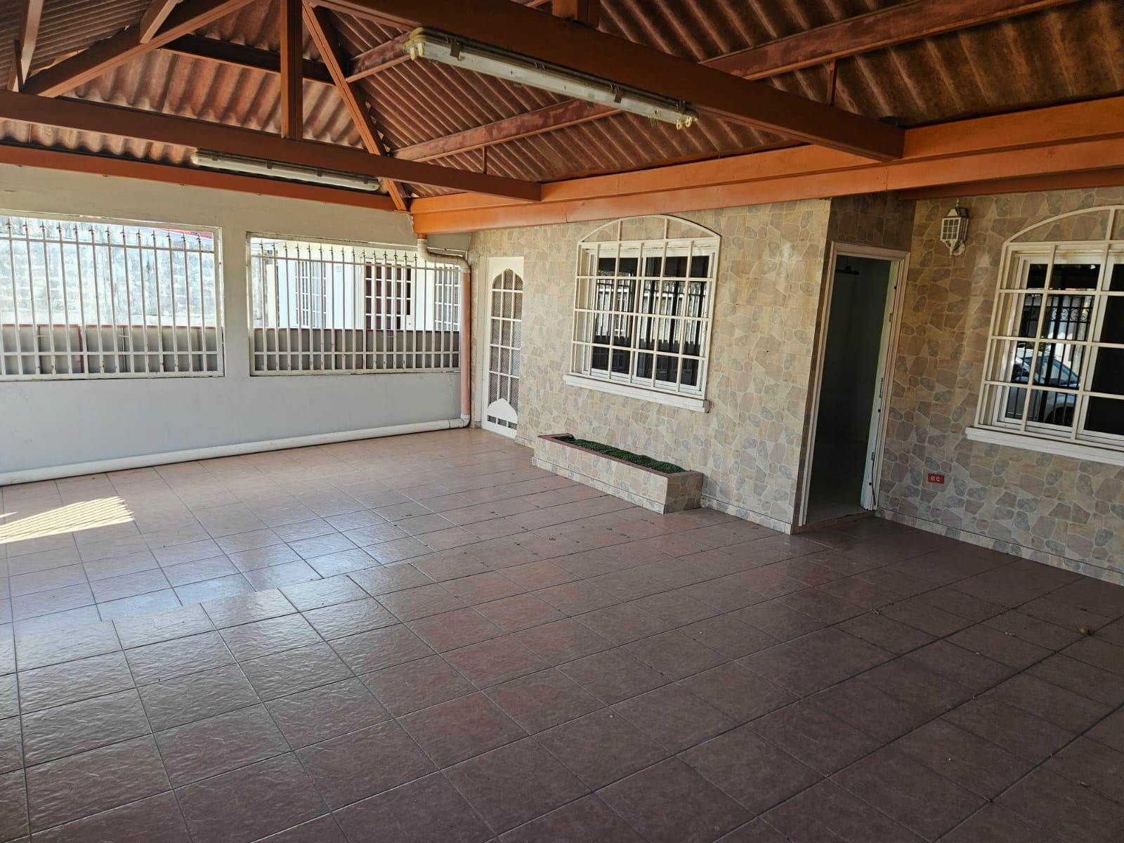El frente de la casa esta cubierta con baldosas, la casa cuenta con una amplia terraza techada, 2 estacionamientos y EL patio techado con tragaluces en el área de lavandería.
