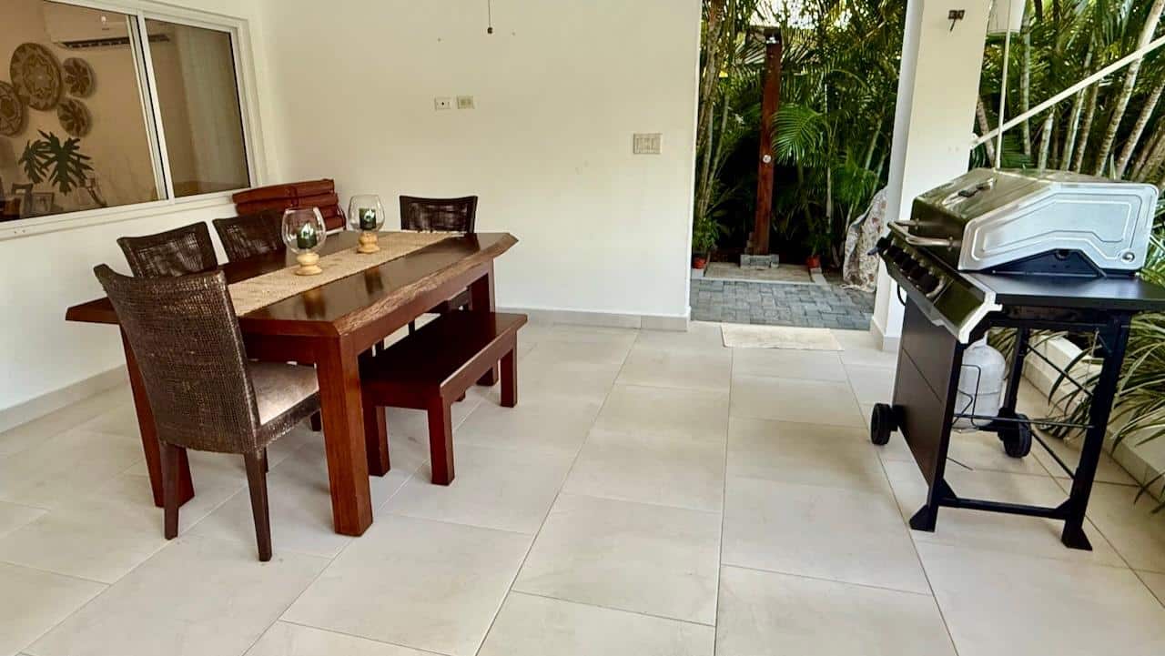 Descubra su refugio perfecto en este exquisito dúplex de dos plantas situado en la prestigiosa comunidad Costa Blanca Golf and Villas. Con impresionantes vistas al frondoso campo de golf y a los serenos lagos, esta casa es un paraíso tanto para los amantes de la naturaleza como para los entusiastas del golf. Al entrar, encontrará una amplia y acogedora sala-comedor, ideal para recibir a familiares y amigos. La amplia y bien equipada cocina está diseñada para los amantes de la cocina, con una amplia encimera y modernos electrodomésticos que hacen que preparar la comida sea un placer. La casa adosada cuenta con tres recámaras bellamente decoradas, cada una con su propio baño, lo que proporciona privacidad y comodidad a todos los residentes. Además, hay un práctico medio baño para invitados y una oficina muy bien diseñada que ofrece acceso directo a una amplia terraza superior, un lugar perfecto para disfrutar del café de la mañana o de las puestas de sol. En el exterior, encontrará dos amplias terrazas en cada planta, ideales para disfrutar de las impresionantes vistas. Los hermosos jardines que rodean la vivienda realzan su atractivo, con un gran jardín cercado que ofrece privacidad y espacio para actividades al aire libre. Relájese y descanse en la acogedora piscina, a solo unos pasos de su puerta. Esta casa adosada se alquila completamente amueblada, lo que le permite mudarse cómodamente y disfrutar de su nuevo estilo de vida sin la molestia de tener que amueblarla. El alquiler incluye los gastos de mantenimiento de Costa Blanca Golf and Villas y también el mantenimiento del jardín y la piscina, lo que le garantiza que podrá disfrutar de su hogar sin preocupaciones adicionales. Tenga en cuenta que los servicios de electricidad, cable e Internet no están incluidos en el alquiler. Disfrute de la combinación perfecta de lujo, comodidad y belleza natural en esta espectacular casa adosada: ¡su oasis de tranquilidad le espera!