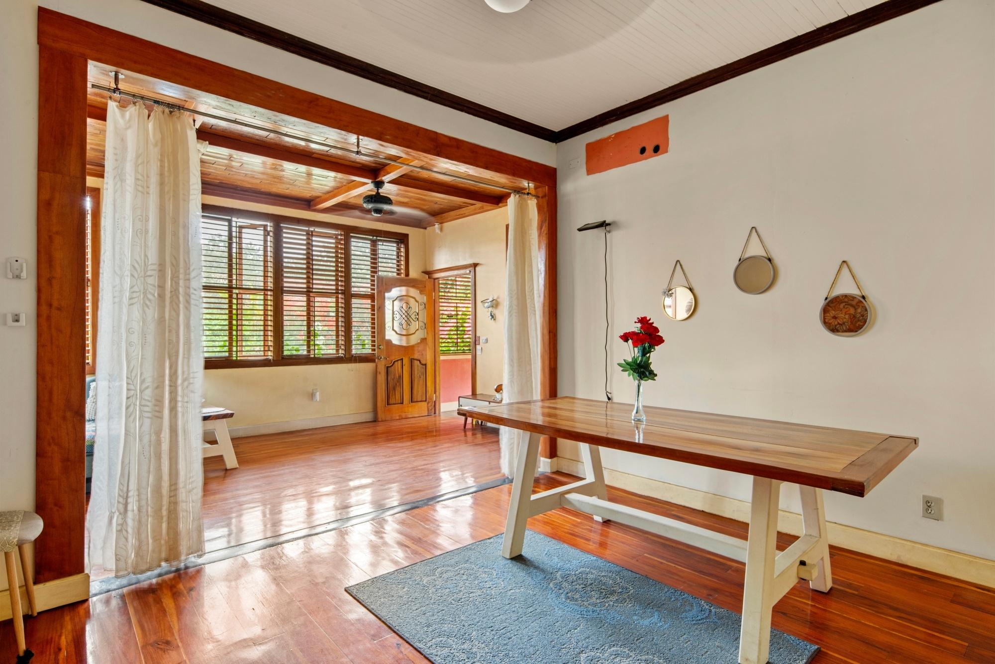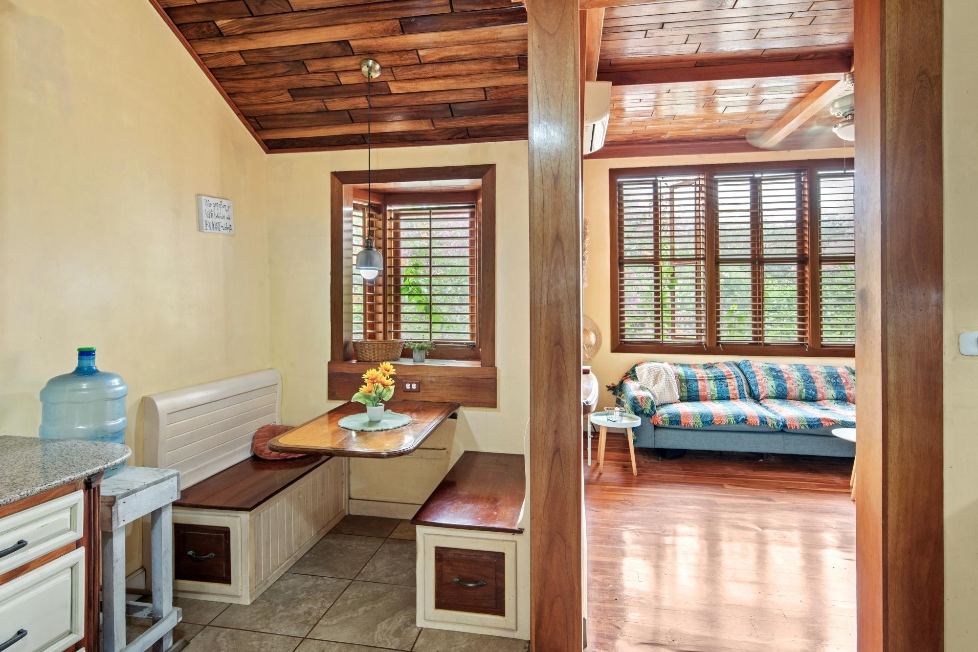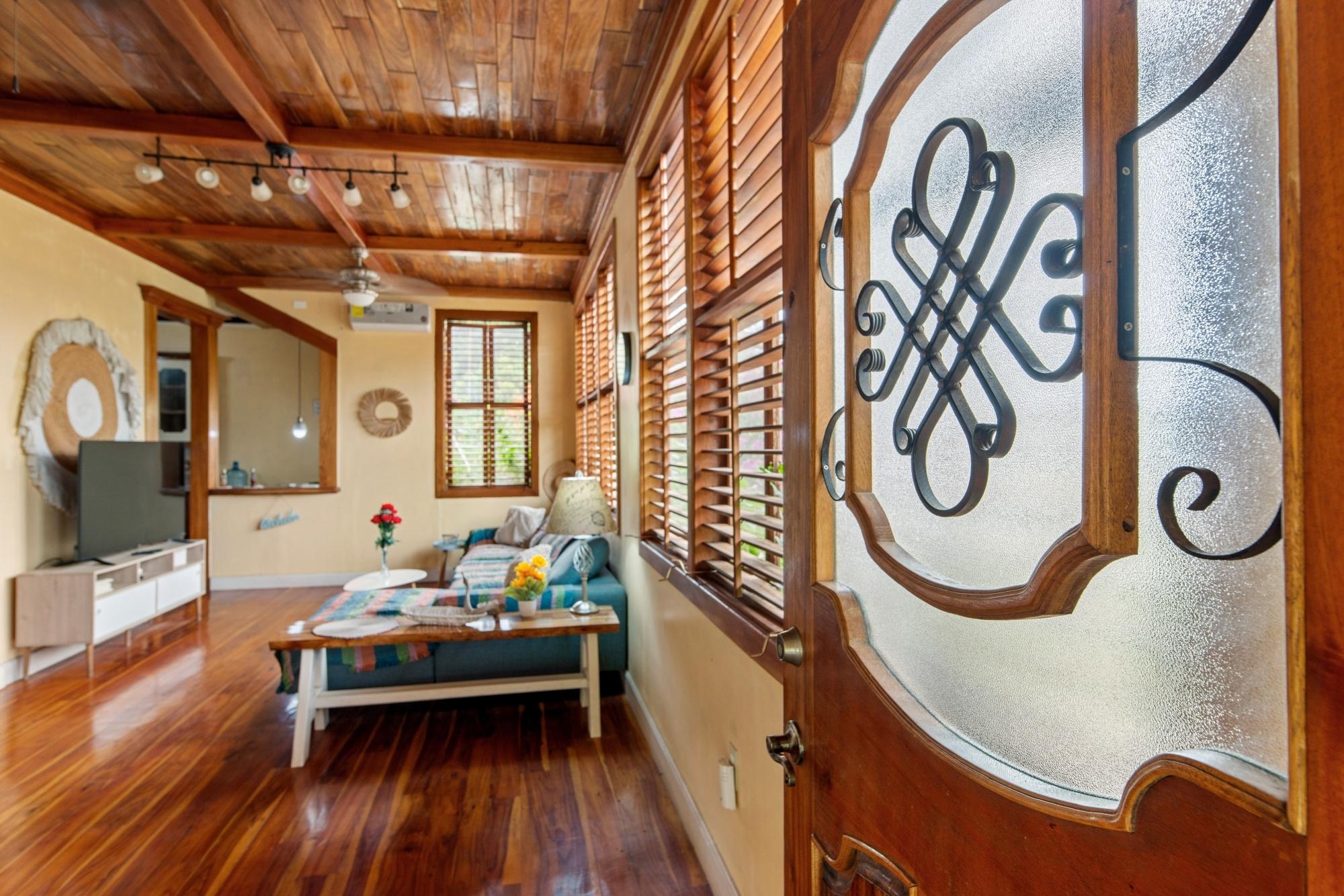 Descubra el sereno encanto de la vida costera en este encantador dúplex ubicado al final de una calle en la tranquila zona de Las Palmas, Puerto Armuelles, Chiriquí. Este espacioso refugio de 2 dormitorios y 2 baños combina la comodidad moderna con la elegancia atemporal. Ingrese a través de puertas de madera hechas a medida, pisos de madera noble originales y persianas, que le dan un toque artesanal a cada habitación. El diseño cuidadoso incluye un área de oficina versátil, ideal para el trabajo remoto o actividades creativas. En la planta baja, le espera una ventaja excepcional: un amplio taller combinado con espacio habitable adicional que puede adaptarse a sus necesidades creativas o pasatiempos. Ya sea que sea un artesano que necesita un amplio espacio de trabajo o alguien que busca un gimnasio personal o un área de entretenimiento, esta adición transforma las posibilidades en realidad. Abarcando un exuberante y extenso lote de 2,000 m², esta propiedad es su propio paraíso privado, cercado de forma segura y accesible a través de un portón eléctrico para mayor tranquilidad. Disfrute de tardes tranquilas entre árboles frutales maduros de plátanos, limones, aguacates, mangos y piñas, que ofrecen sombra y cosechas de temporada, creando un paraíso natural para observadores de aves y amantes de la naturaleza. La ubicación ideal de la propiedad ofrece lo mejor de ambos mundos: aislamiento sin sacrificar el acceso a los servicios locales y las impresionantes playas cercanas. Ya sea que busque relajarse en un ambiente lujoso o recibir invitados en medio del esplendor tropical, esta casa ofrece innumerables oportunidades para crear recuerdos inolvidables. ¡No pierda la oportunidad de experimentar la vida en su máxima expresión! ¡Programe una visita hoy mismo!