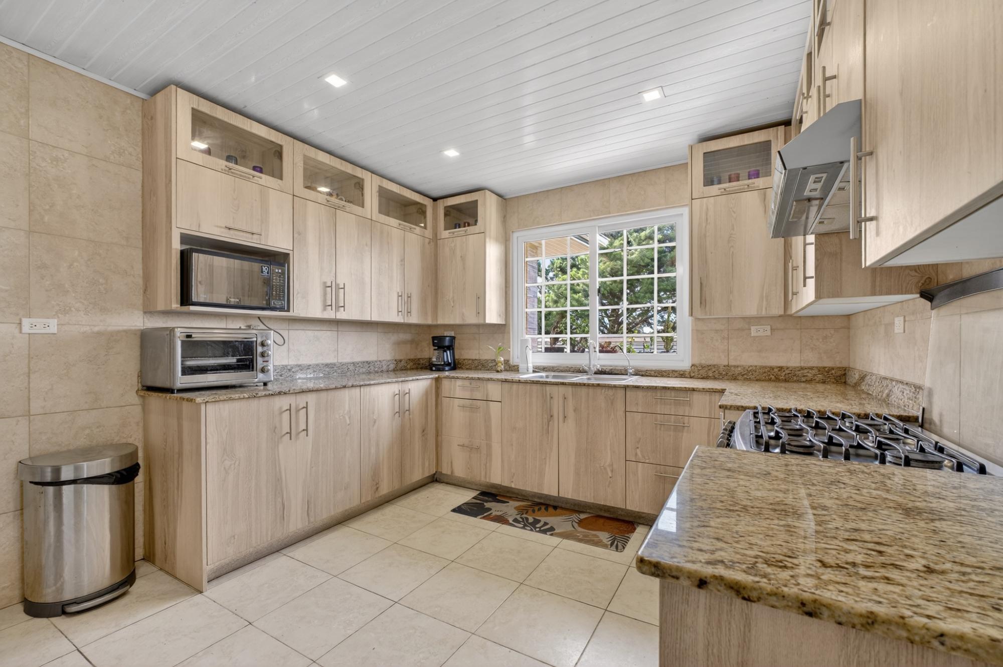 Ubicada en Alto Boquete, a solo cinco minutos del centro, esta encantadora casa de 2 dormitorios y 2.5 baños ofrece comodidad, luz y espacios habitables bellamente diseñados en un vecindario seguro y acogedor. La espaciosa sala de estar cuenta con chimenea y grandes puertas que dan al patio y brindan abundante luz natural. Una amplia y moderna cocina ofrece amplios gabinetes, encimeras de granito y un excelente espacio de trabajo. El dormitorio principal es impresionantemente grande, con baño en suite, vestidor y gabinetes a medida con cajones empotrados. El dormitorio de invitados también cuenta con un armario a medida con excelente espacio de almacenamiento. Una amplia área de lavandería con gabinetes adicionales agrega comodidad. La vida al aire libre se realza con una terraza cubierta con vista a un patio cercado y cerrado con magníficos jardines. Desde el frente de la casa se disfrutan hermosas vistas a las montañas. Muy segura, tranquila y con una ubicación ideal cerca del pueblo, esta propiedad es perfecta para vivir a tiempo completo o para un retiro en Boquete.