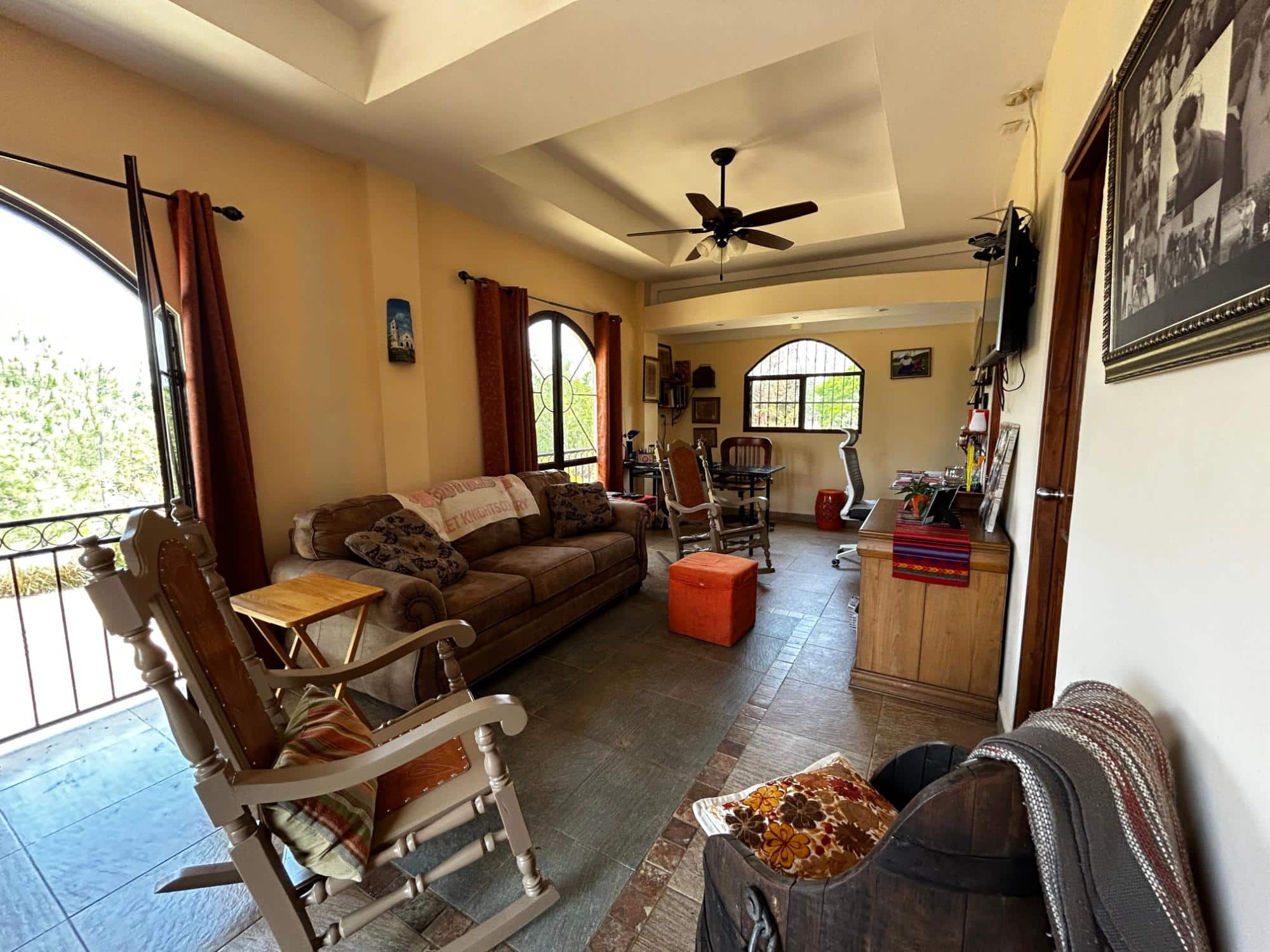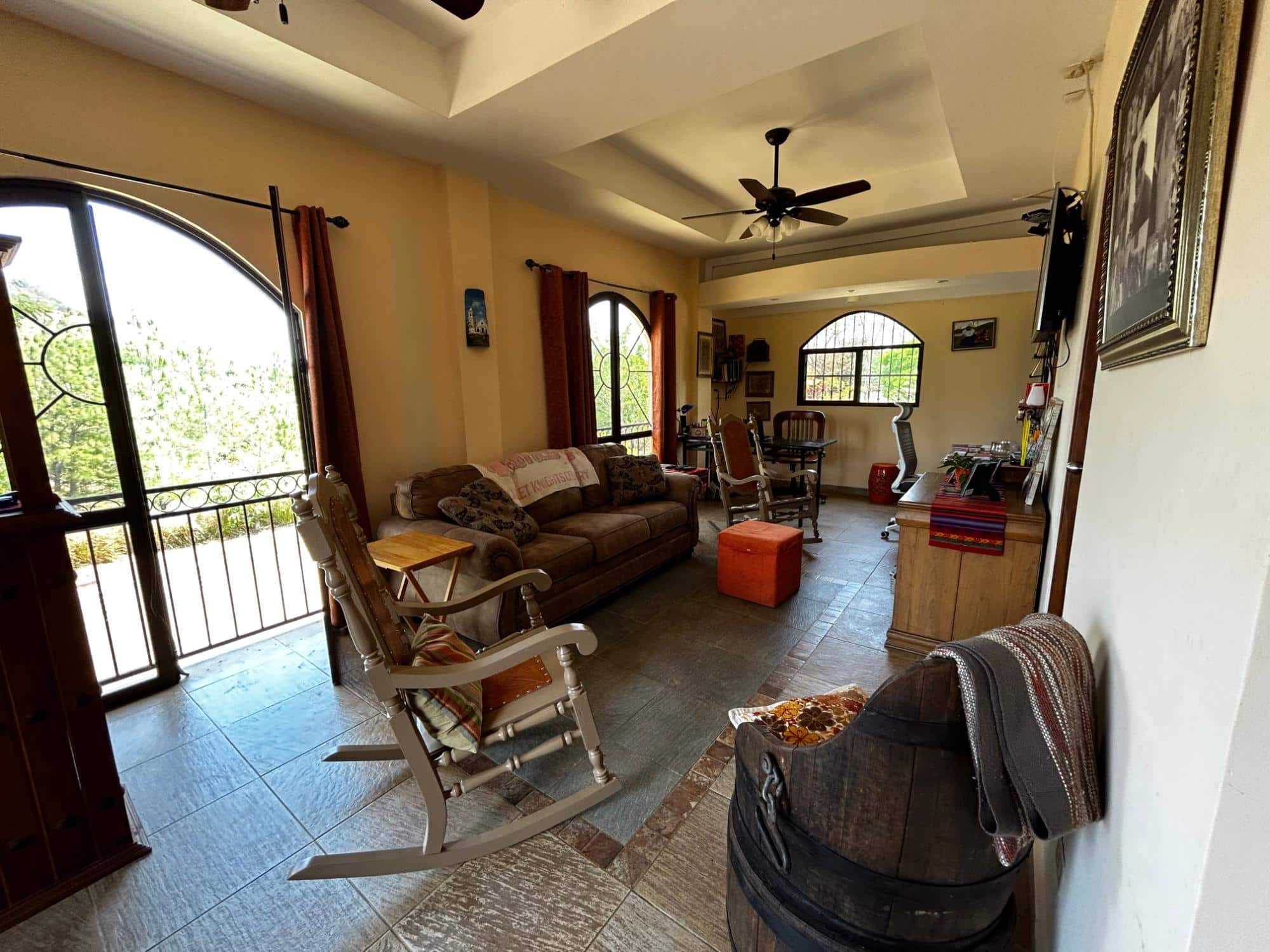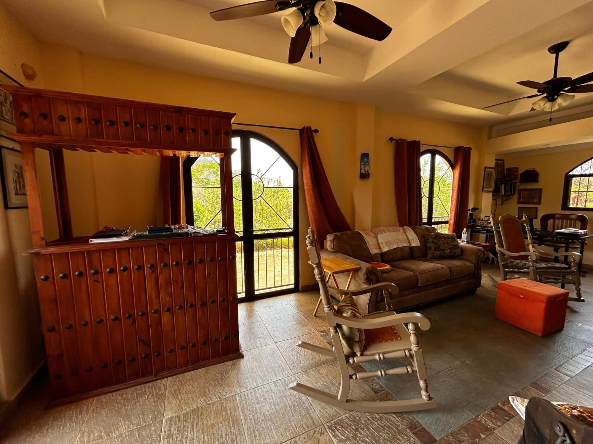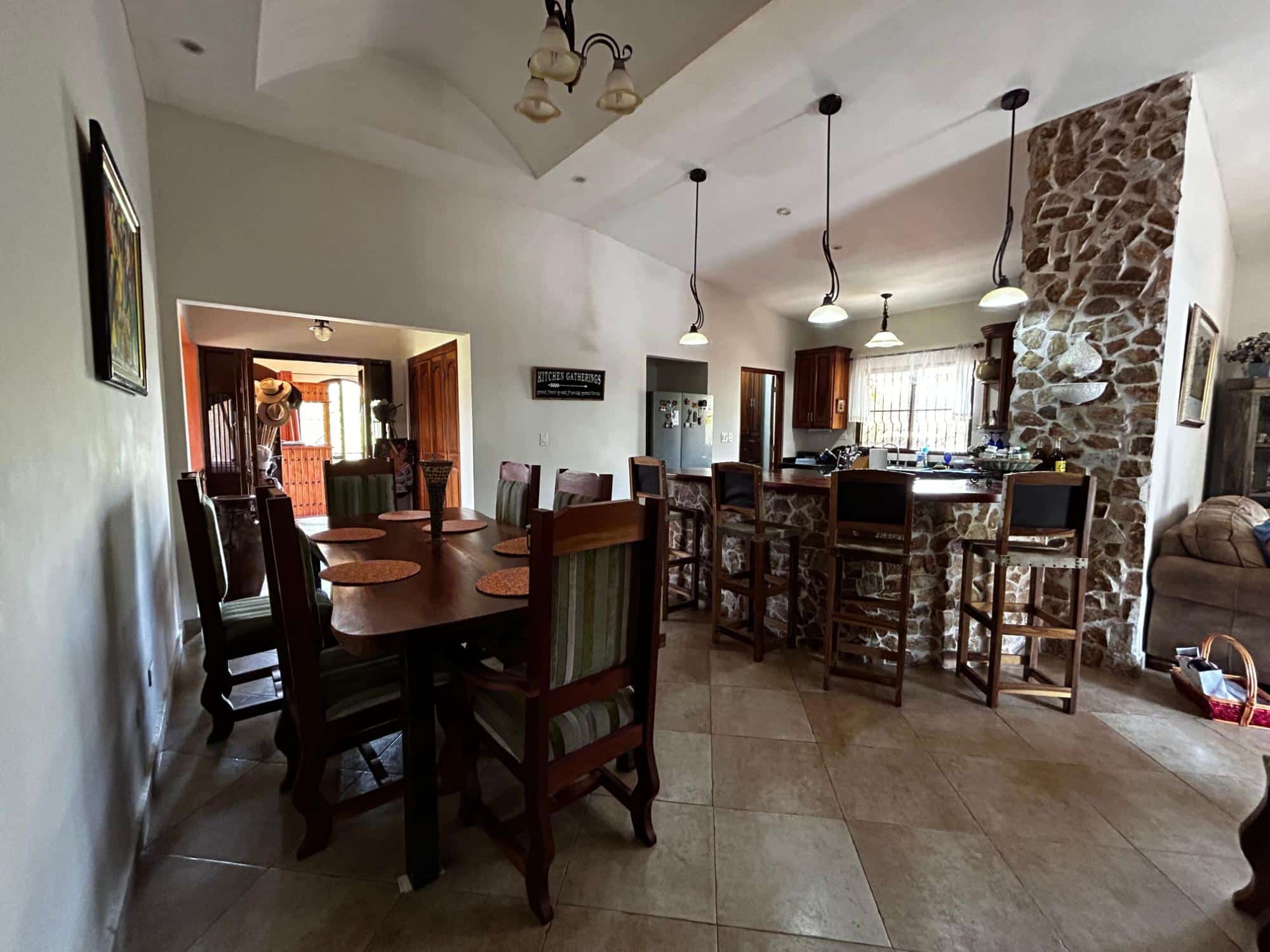 Ubicada dentro de los serenos paisajes de Buena Vista, Barrio San Judas, a lo largo de la ruta panorámica hacia Llano Grande, La Pintada, Coclé, se encuentra esta amplia propiedad de 4,849.75 metros cuadrados con una encantadora casa junto al río. Al llegar, un camino en forma de U conduce a una casa pintoresca. Ingrese para descubrir un diseño cuidadosamente diseñado, donde el nivel frontal pasa sin problemas a un nivel adicional en la parte trasera, creando un atractivo arquitectónico único. Adornada con ventanas en arco, la sala de estar ofrece un ambiente acogedor para relajarse y entretenerse. Aventúrese más para encontrar una encantadora terraza con vistas panorámicas de las majestuosas montañas, un lugar perfecto para saborear el café de la mañana o los atardeceres de la tarde. El corazón de la casa, la cocina, presenta una distribución en forma de U bien equipada con gabinetes de madera y una isla central completa con fregadero. Una barra de desayuno divide sin esfuerzo la cocina del comedor, fomentando un flujo perfecto de espacio. Mientras que un área familiar dedicada junto a la cocina y el comedor proporciona un refugio acogedor para reuniones íntimas. Le esperan tres dormitorios, incluida la suite principal con balcón accesible a través de puertas dobles de madera, vestidor y baño en suite. Un dormitorio adicional tiene un armario con puerta de madera.