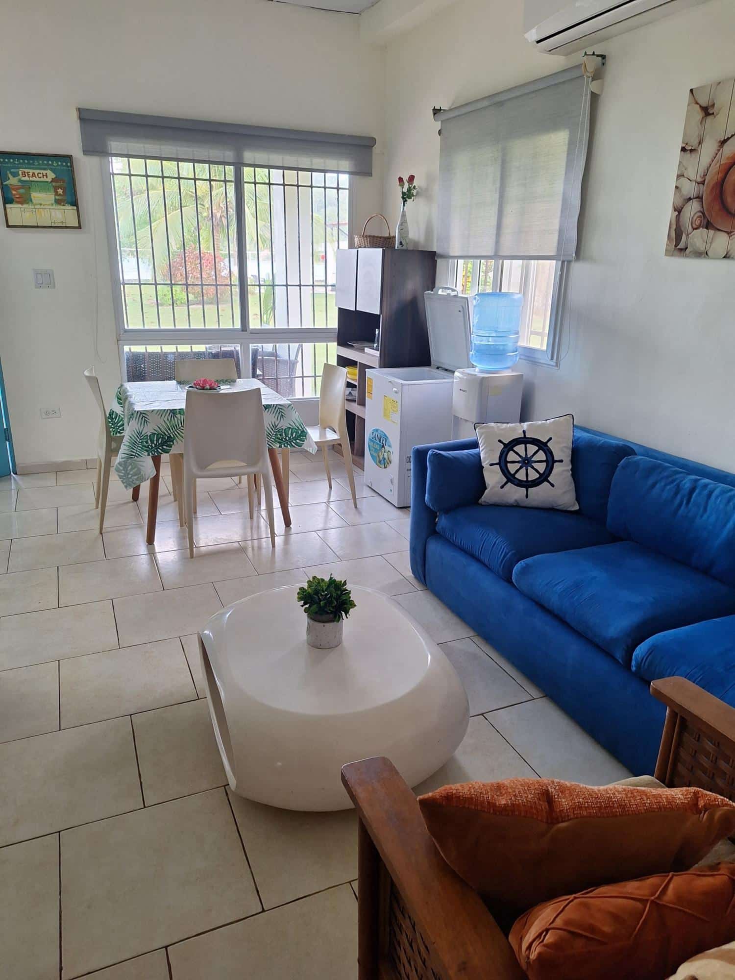 La casa con vista al mar cuenta con un patio enorme y tiene 2 recamaras, 2 baños, sala comedor, cocina, terraza y una ducha exterior. La propiedad tiene acueducto del pueblo y cuenta con un ojo de agua que permite obtener agua cristalina todo el año