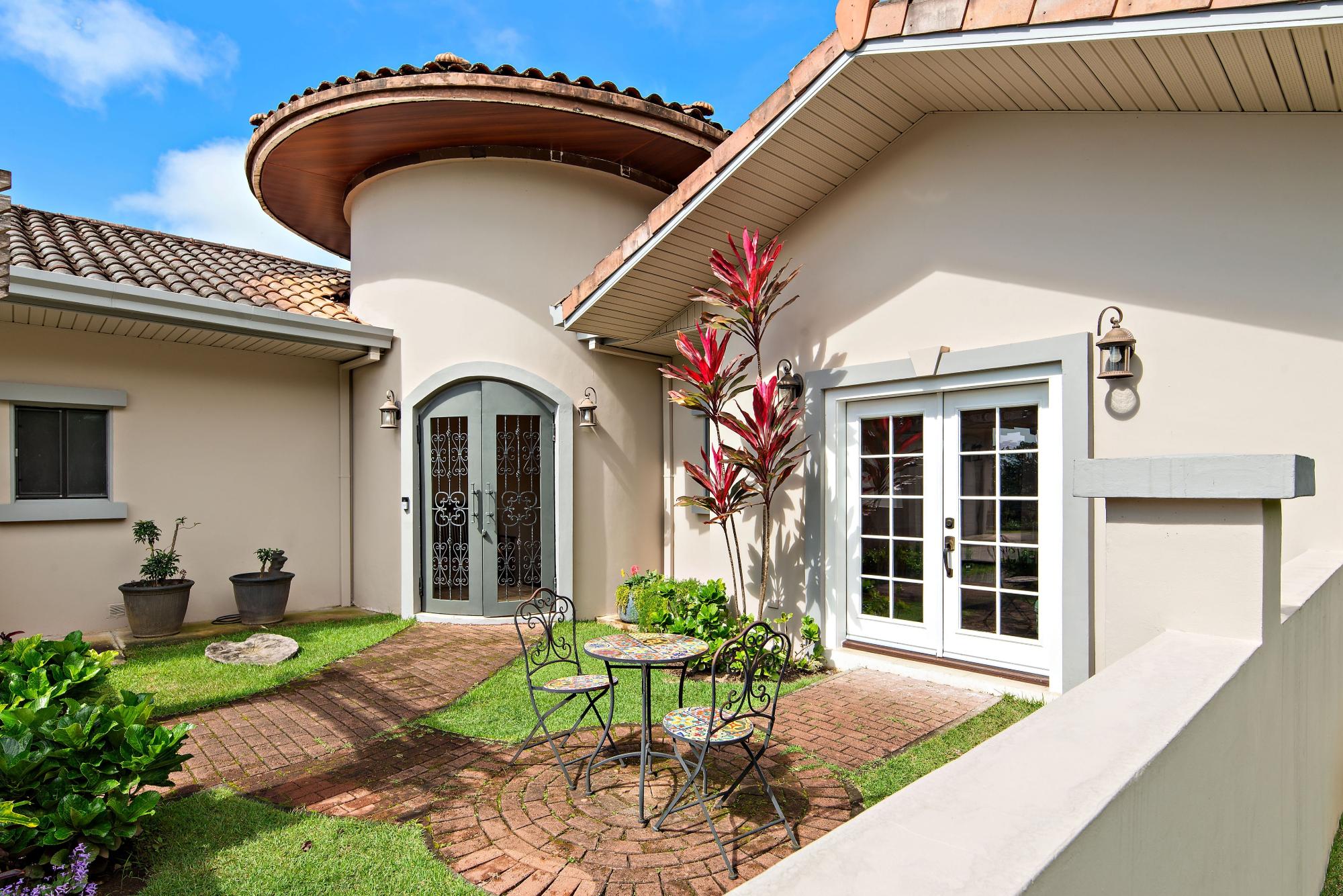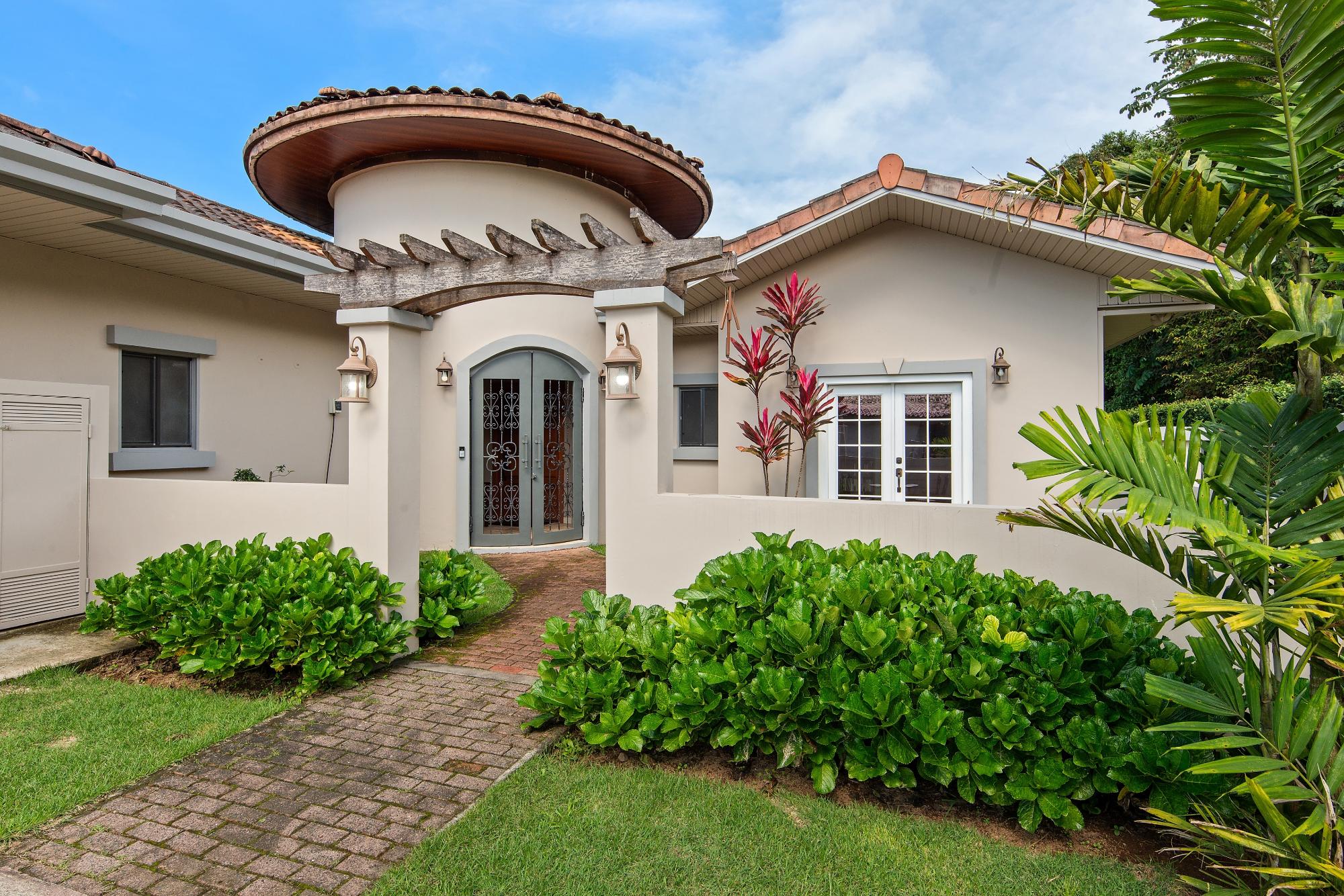 Descubra una excepcional combinación de elegancia clásica y lujo moderno en esta amplia casa de una sola planta, ubicada en un terreno doble en un entorno exuberante, privado y seguro. Con una construcción de primera clase y amplias características de alta gama, esta propiedad ofrece un estilo de vida sofisticado y sin preocupaciones. La finca cuenta con atractivos techos de terracota y un hermoso paisaje tropical. Esta propiedad está diseñada para la comodidad y la seguridad: Seguridad y tranquilidad: Disfrute de mayor seguridad con rejas de seguridad Furtec, seguridad Lucero las 24 horas y un robusto sistema de batería de respaldo de 18 horas para una vida ininterrumpida. Apto para mascotas: La propiedad cuenta con cercas para perros, lo que garantiza un entorno seguro para sus mascotas. Características: La propiedad incluye un helipuerto exterior. El diseño abierto de la casa se integra a la perfección con espacios versátiles que se adaptan al ambiente tropical: Comedor formal: Definido por un elegante techo artesonado con lámpara de araña, este espacio se comunica con el exterior a través de puertas francesas. Terraza cerrada: Disfrute del trópico todo el año en la impresionante terraza cerrada. Con un techo abovedado y amplias puertas corredizas de vidrio arqueadas, ofrece un espacio luminoso y protegido de la intemperie, perfecto para relajarse o entretenerse. Además, cuenta con una máquina de ejercicios Matey para mantenerse en forma. El Atrio: Un atrio aporta belleza con una característica arquitectónica única. La cocina y los espacios de servicio, bellamente diseñados, están equipados con características premium para mayor eficiencia y disfrute: Cocina Gourmet: Una delicia para el chef con amplios gabinetes blancos, encimeras de granito y una gran isla central.