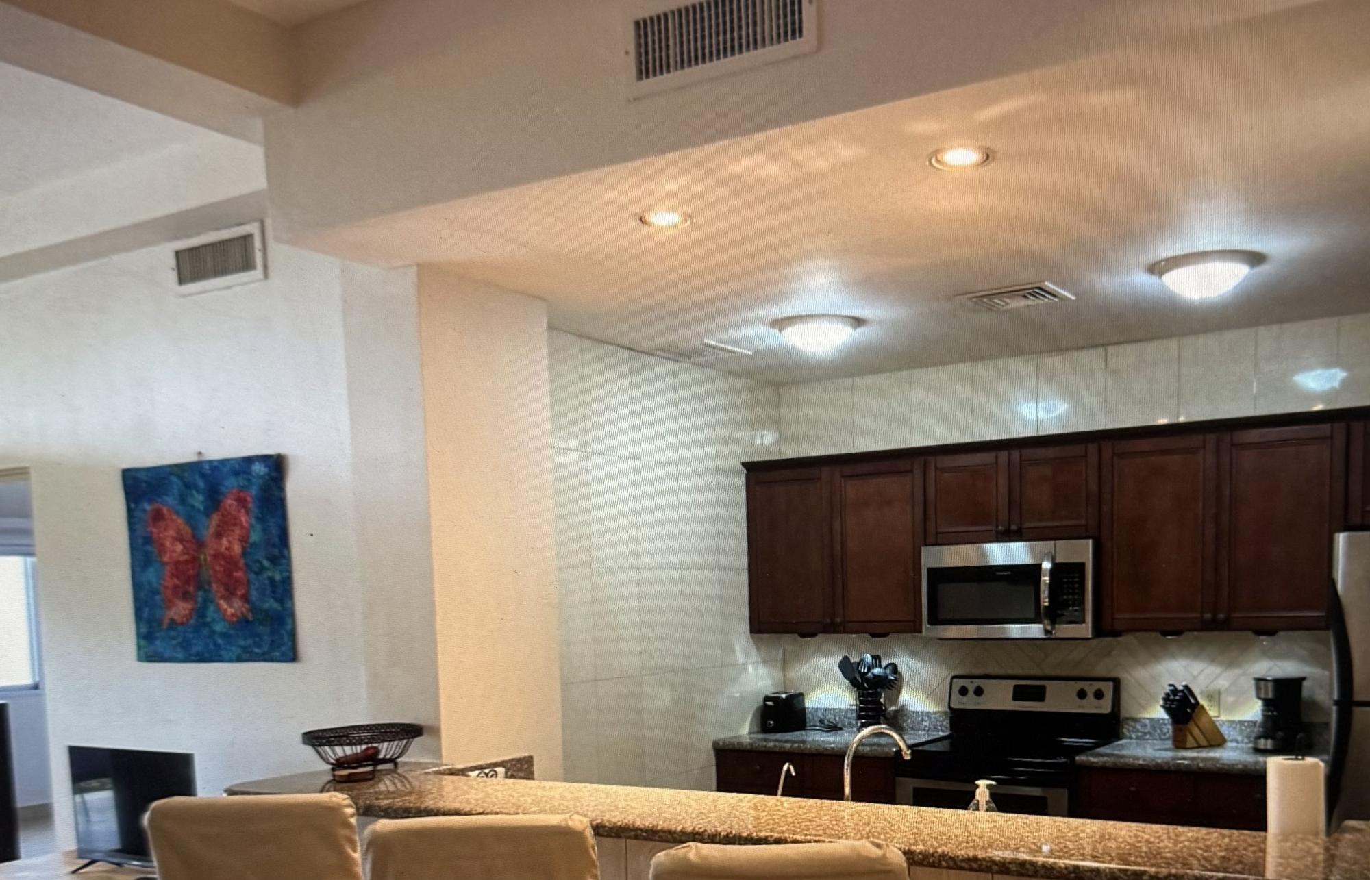Escondida en la costa del Pacífico de Panamá, con 24 kilómetros de playas de arena volcánica y frente al mar, se encuentra Playa La Barqueta, conocida por sus espectaculares atardeceres y la liberación de tortugas. Este condominio está completamente amueblado y a solo 25 minutos de David. Esta unidad esquinera se encuentra en la planta baja, lo que facilita el acceso desde las áreas comunes exteriores. La enorme piscina y la playa están a un paso de la puerta principal. La terraza de la piscina cuenta con numerosas zonas de estar para relajarse y disfrutar. El condominio tiene una generosa distribución de 140 m² (1500 pies cuadrados). Al entrar, accederá a la sala de estar y comedor de concepto abierto, que también cuenta con una barra de desayuno con vista a la cocina. No podrá apartar la vista de las grandes puertas corredizas de vidrio que conducen a su terraza privada, donde podrá relajarse, hacer una barbacoa o simplemente disfrutar de la vista. El dormitorio principal tiene vista al mar y un amplio baño en suite con vestidor. Hay otras dos habitaciones de invitados que comparten un baño amplio. El lavadero está junto a la cocina, separado por una puerta.