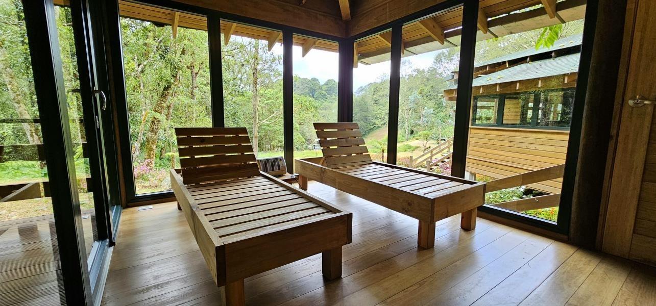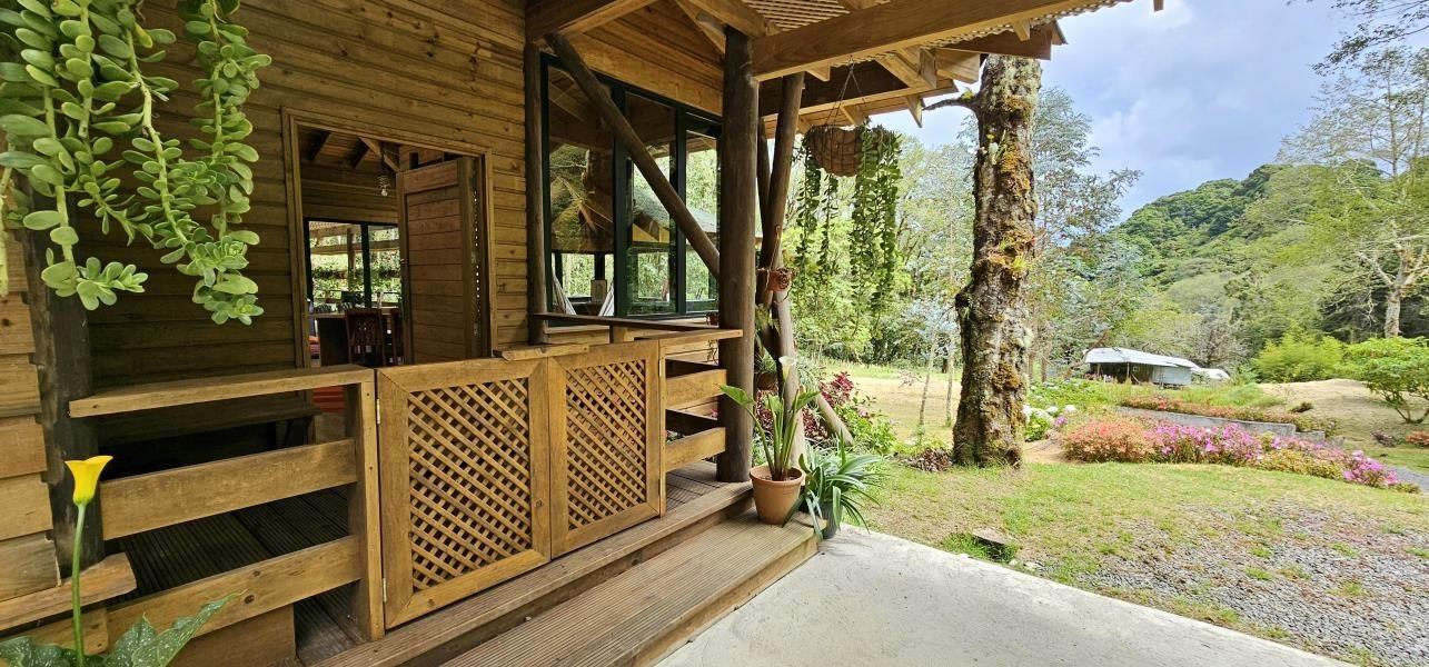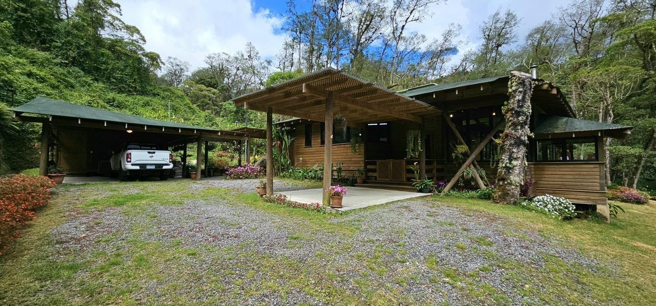 Bienvenido al paraíso tropical de Tierras Altas, Cerro Punta, en el exclusivo sector de Guadalupe. Descubra una casa única rodeada de exuberantes bosques tropicales, donde la naturaleza se convierte en su vecina y la aventura le espera en cada rincón. Esta impresionante casa, construida con madera de pino importada y tratada con garantía de 20 años, ha sido diseñada para los amantes de la naturaleza que buscan una vida de lujo y comodidad en un entorno incomparable. Con tan solo tres años de construcción, esta propiedad es una verdadera joya. Ubicada aproximadamente a 2200 metros sobre el nivel del mar, disfrutará de una temperatura promedio de 14 °C, lo que le proporciona un clima fresco y rejuvenecedor durante todo el año. El terreno tiene una superficie de 22,205.31 m², y el complejo de construcción cubierto de aproximadamente 430 m² incluye una cabaña/sauna, estacionamiento y bodega, además de la impresionante residencia principal. La casa cuenta con 3 espaciosas recámaras y 3 baños, incluyendo una recámara principal con su propia sauna privada. El diseño arquitectónico, dirigido por el galardonado arquitecto Alfredo Boza, luce amplios ventanales que ofrecen vistas panorámicas de los alrededores e inundan de luz natural cada rincón de la casa. Por las noches, relájese junto a la chimenea de hierro fundido en el espacioso salón-comedor. La amplia terraza es el lugar perfecto para relajarse y disfrutar de la tranquilidad del entorno. Las ventanas oscilobatientes importadas añaden un toque elegante y funcional a la propiedad. Los hermosos jardines que rodean la casa ofrecen un oasis de paz y serenidad, mientras que los eucaliptos bordean la entrada, ofreciendo mayor privacidad. Esta propiedad no se entrega amueblada. Una característica destacada es la plantación de 200 arándanos en la propiedad, un toque único que combina la belleza natural de la región con la oportunidad de disfrutar de esta deliciosa fruta en casa. Además, la propiedad colinda con el río Chiriquí Viejo, lo que le permite experimentar la belleza y la tranquilidad del río, cerca de su nacimiento.