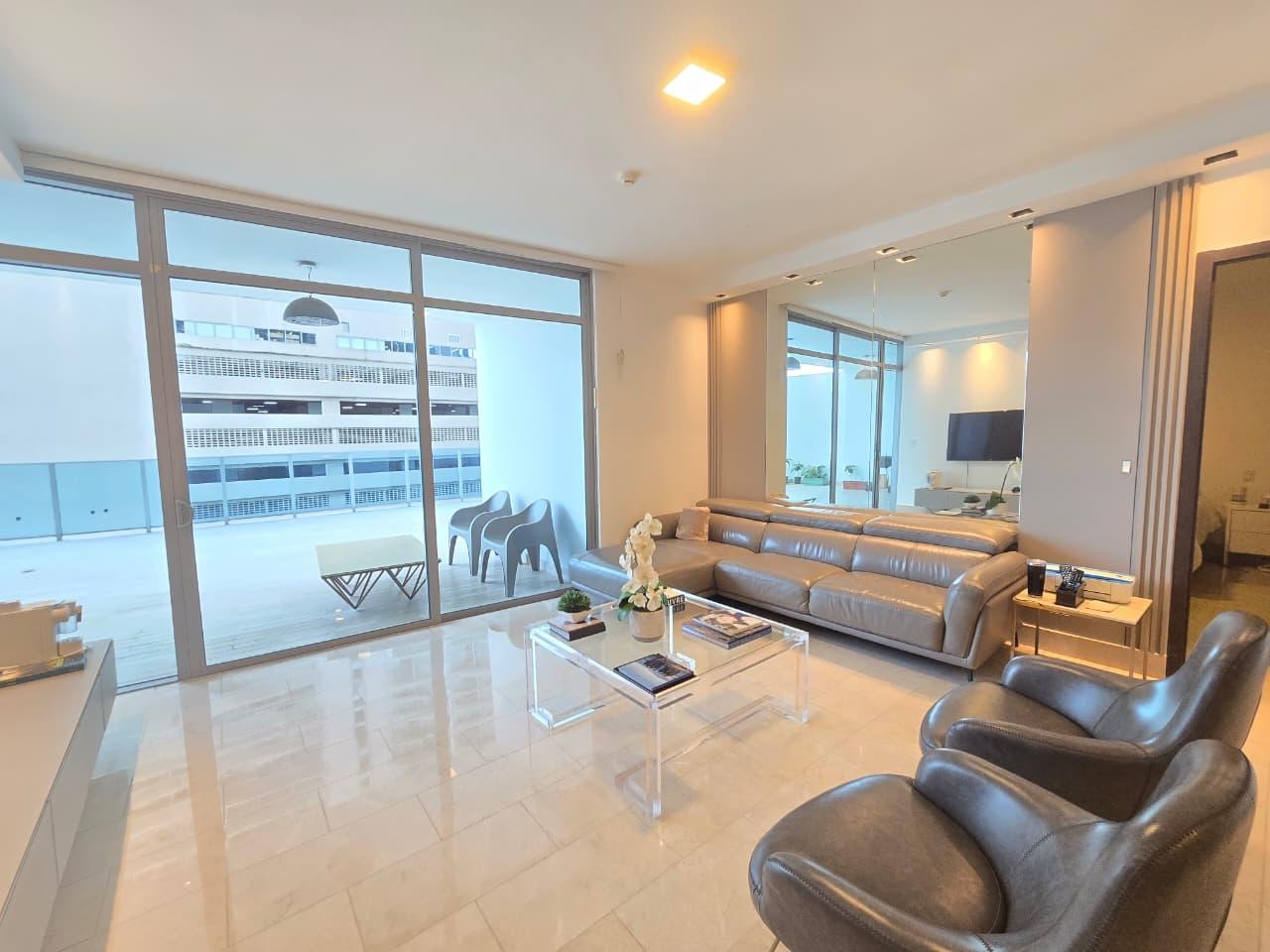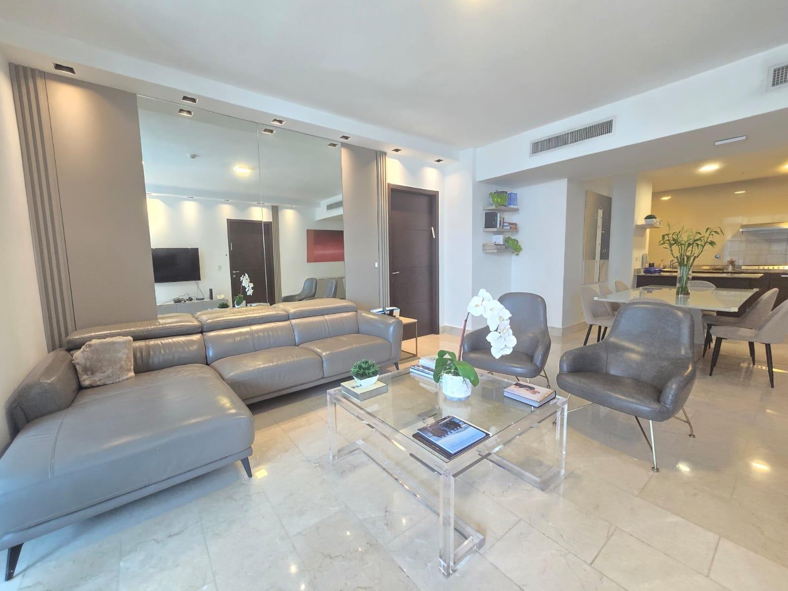 En la exclusiva zona de Punta Pacifica, tenemos un magnífico apartamento listo para ser vendido. Con un área construida de 215M2, este moderno apartamento cuenta con dos recamaras, cada una con su baño y su Walk-in closet, baños de visitas, sala, comedor, terraza, cocina, lavandería, cuarto y baño de servicio y dos puesto de estacionamiento y un deposito. Las características externas del edificio incluyen un área social, ascensor, gimnasio, piscina y parque infantil. Este moderno apartamento es una excelente opción para aquellos que desean mudarse a un espacio tranquilo pero cerca de todo, ya que Gran Tower es el único edificio que tiene abajo el foodie, restaurante, bar, cafeterías, lavandería y sastrería. La ubicación privilegiada de Punta Pacifica lo hace ideal ya que esta cerca a marinas, escuelas, centros comerciales, salida al corredor sur. Contáctenos para mayor información ID 11345
