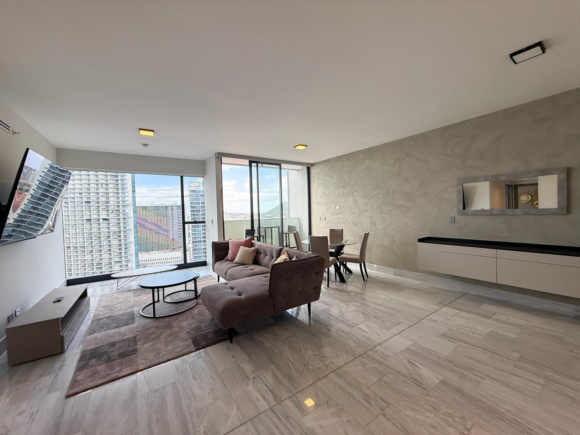 Vive lo mejor de la vida urbana en Nuovo de Armani/Casa, una obra maestra residencial diseñada para el comprador sofisticado que valora los servicios de un hotel cinco estrellas combinados con la privacidad del hogar. Ubicada en el corazón de Bella Vista, esta torre icónica refleja la visión de Giorgio Armani de “la atmósfera perfecta”, un espacio íntimo y confortable donde cada detalle transmite elegancia y refinamiento. Ubicado en el piso 22, este apartamento de 123 metros cuadrados está distribuido de manera eficiente, aprovechando bien el espacio sin sentirse reducido. Las ventanas de piso a techo enmarcan vistas del skyline de la Ciudad de Panamá, con vistas parciales al Océano Pacífico al fondo. El apartamento cuenta con techos de 10 pies (3 metros) de altura y pisos de mármol en todo el espacio, lo que le da una sensación uniforme y abierta al interior. La cocina, de diseño italiano, incluye sobres de cuarzo y gabinetes hechos a medida, distribuidos en un diseño que facilita tanto la preparación de comidas como reuniones informales. Los tres baños están equipados con accesorios Villeroy & Boch, manteniendo el mismo estándar de calidad en todo el apartamento. Además, incorpora tecnología inteligente que mejora la eficiencia y el control general del espacio. El Edificio – Armani Nuovo Nuovo de Armani/Casa se destaca en la Ciudad de Panamá porque el concepto de diseño es consistente en todo el edificio. En lugar de enfocarse únicamente en los apartamentos, las áreas comunes han sido completamente diseñadas y amuebladas bajo la marca Armani/Casa, lo que le da a la torre una imagen y estilo unificados desde el lobby hasta los espacios compartidos. Ubicado en Bella Vista, el edificio se encuentra cerca del distrito financiero, la Cinta Costera y una amplia variedad de restaurantes y espacios culturales. La idea detrás de Nuovo es combinar servicios estilo hotel con la privacidad de una torre residencial, algo que todavía es relativamente limitado en el mercado local. Las amenidades están organizadas tanto para el bienestar como para el uso social. Los residentes tienen acceso a un gimnasio, piscina de nado, estudio de yoga y Pilates, y un spa con sauna y baño de vapor. También hay espacios sociales dedicados, incluyendo sala de póker, área de jardín y lounge para residentes. El servicio de valet parking, conserje y opciones gastronómicas en el lugar, incluyendo restaurante y bar junto a la piscina, completan la oferta.