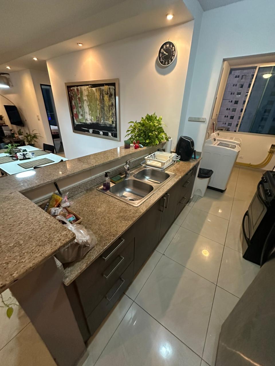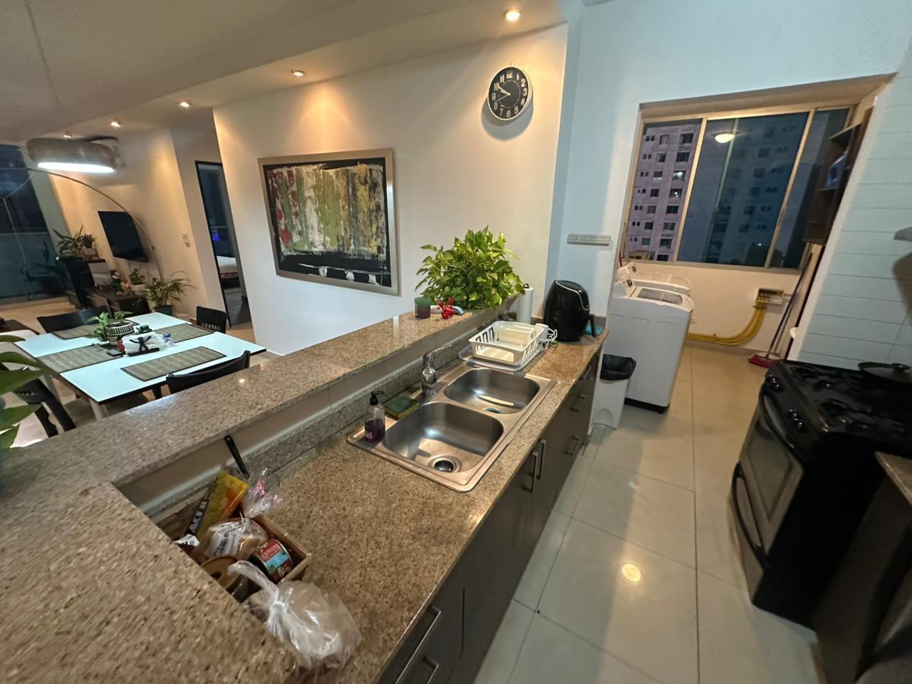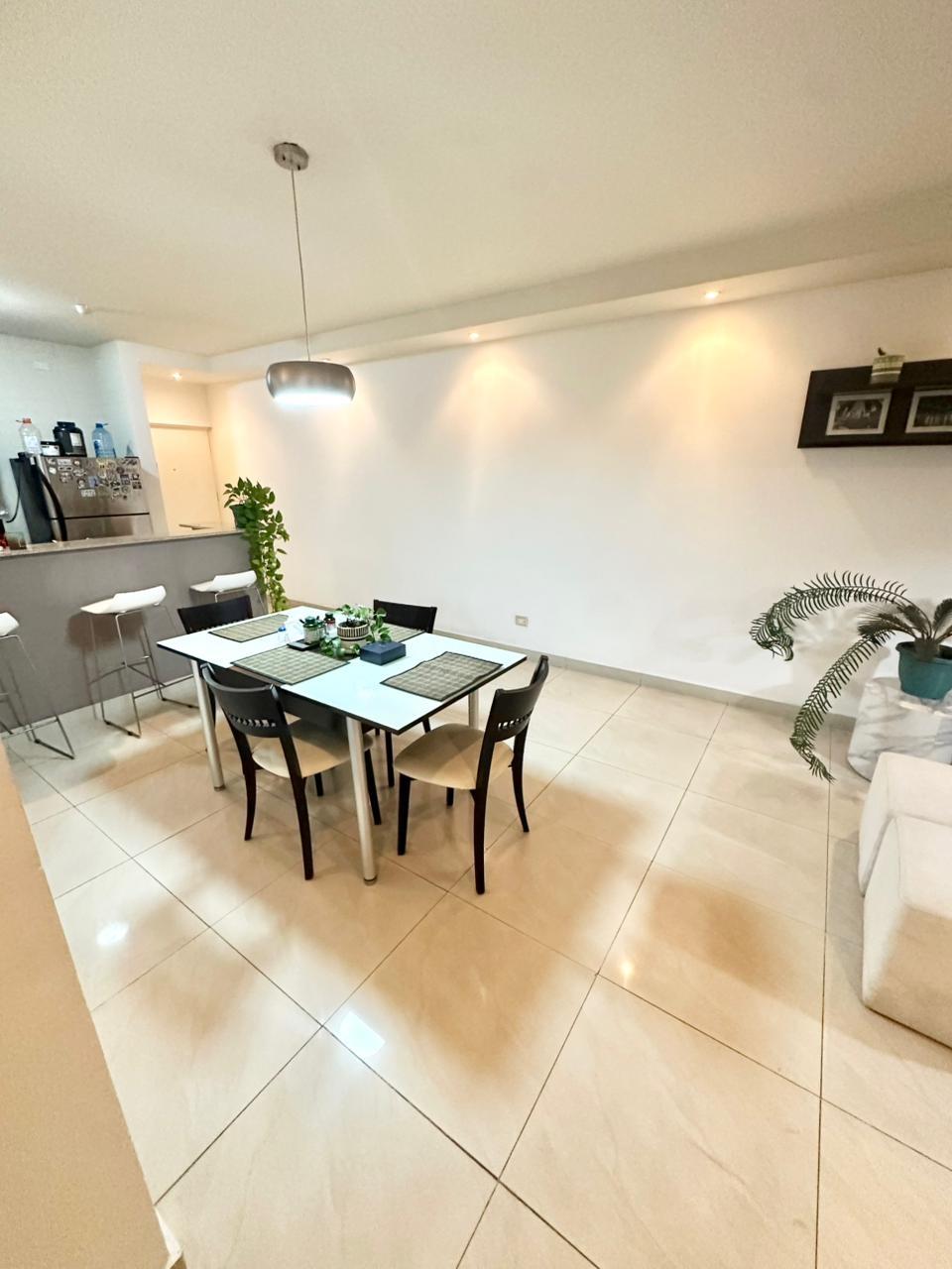 Descubre este cómodo y elegante apartamento ubicado en PH Pacific Sky, ideal para quienes buscan vivir en una zona céntrica con todas las comodidades a su alcance. La propiedad cuenta con 109.92 m² muy bien distribuidos, ofreciendo espacios funcionales y confortables. Dispone de 2 amplias recámaras, 2 baños completos, y se entrega totalmente amoblado y con línea blanca, listo para mudarse. Además, incluye 1 estacionamiento ubicado en el nivel E2. El apartamento ofrece una distribución que permite disfrutar de una agradable área de sala y comedor, con buena iluminación natural, así como una cocina equipada que brinda practicidad para el día a día. Área social del edificio PH Pacific Sky cuenta con una completa área social diseñada para el disfrute de sus residentes, que incluye piscina, gimnasio equipado, salón de eventos, terraza y áreas para relajarse, además de seguridad 24/7 y lobby. Ubicación y alrededores El edificio se encuentra en una zona estratégica de la ciudad, con fácil acceso a importantes vías, supermercados, restaurantes, centros comerciales, bancos y servicios. Su ubicación permite disfrutar de una vida urbana cómoda, cerca de todo lo necesario para el día a día. Este apartamento es una excelente opción tanto para vivir como para invertir en una propiedad con gran potencial de valorización. Precio de venta: $214,500