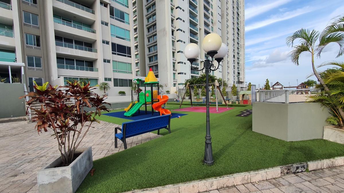 En venta hermoso apartamento con espectacular vista al mar y a la ciudad. Cuenta con una amplia sala–comedor de concepto abierto, ideal para compartir momentos especiales en familia o con invitados. La cocina es moderna y funcional, con excelente distribución, e incluye un área de lavandería independiente, además de cuarto y baño de empleada. El apartamento dispone de tres cómodas habitaciones, cada una con su baño privado, brindando privacidad y confort a todos los residentes. El edificio ofrece una completa área social que incluye piscina, parque infantil, gimnasio, área de BBQ y una elegante sala de eventos, perfecta para celebraciones. Ubicado en una zona privilegiada, con fácil acceso al Corredor Sur y cercano a comercios, centros comerciales, restaurantes y bancos, lo que garantiza comodidad y fácil acceso a todos los servicios.