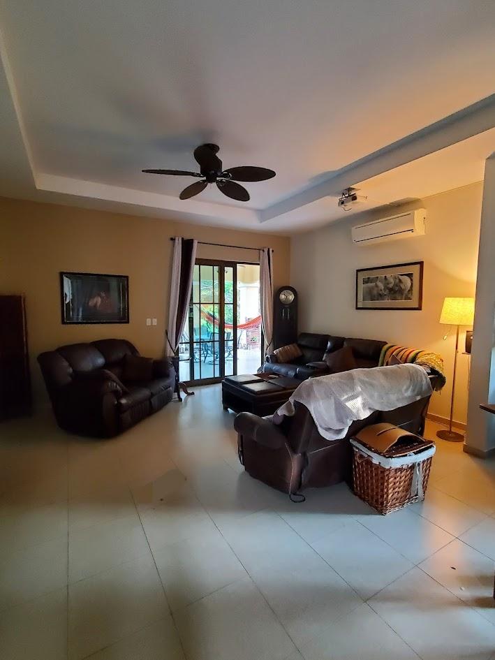 Casa de lujo en un lote grande con opción de financiamiento! PH Hacienda Pacífica - Etapa 1 Rodeado de naturaleza, todas las comodidades modernas y a 10 minutos de Coronado Esta casa moderna de inspiración española fue cuidadosamente construida y viene con electrodomésticos, aires acondicionados, cortinas y luces. La prístina comunidad cerrada de Hacienda Pacifica ofrece calles amplias de calidad, infraestructura subterránea (agua, electricidad e internet de fibra óptica), además la fase 1 también ofrece un área social con una gran piscina, tenis y un gimnasio. Estas son las características de esta propiedad: 3 dormitorios 2,5 baños 1500 m2 de terreno tropical bien cuidado 243 m2 de área total construida 216 m2 de área cerrada Cómodo interior de concepto abierto Cocina moderna con estufa de gas y nevera doble Barra desayunadora Entrada tipo vestíbulo con puertas de seguridad. Pisos de baldosas de colores claros en todas partes Tocadores para él y para ella en el baño principal Baños elegantes con bañeras Amplio espacio de almacenamiento Aire acondicionado moderno en todas las habitaciones Ventiladores de techo en todas las habitaciones Cortinas de ventanas Listo para Internet de fibra óptica y televisión por cable Garaje para 2 coches con puerta automática y control a distancia Lavandería con lavadora y secadora Calentador de agua a gas para toda la casa Tanque de reserva de agua de 600 galones con bomba de presión Terraza con hamacas y barbacoa de gas Flores, plantas y árboles frutales maduros: almendro, coco, moringa, noni, plátano, papaya Construcción 2011 Exoneración de 20 años a partir de noviembre 2011 Sin impuesto territorial debido al bajo valor declarado del terreno Cuotas de mantenimiento de $190/m Los vendedores considerarán alquiler con opción a compra o similar Las características de PH Hacienda Pacifica: Área social al aire libre para reuniones familiares Canchas de tenis Gimnasio Enorme piscina con baños Rutas de senderismo y cascada privada para bañarse Recolección de basura dos veces por semana Infraestructura subterránea de electricidad, agua y internet por fibra óptica Garita de seguridad y rondas las 24 horas, los 365 días del año Cuotas de mantenimiento de $190/m