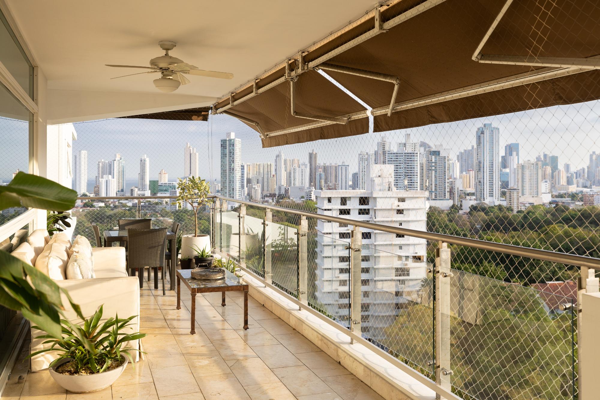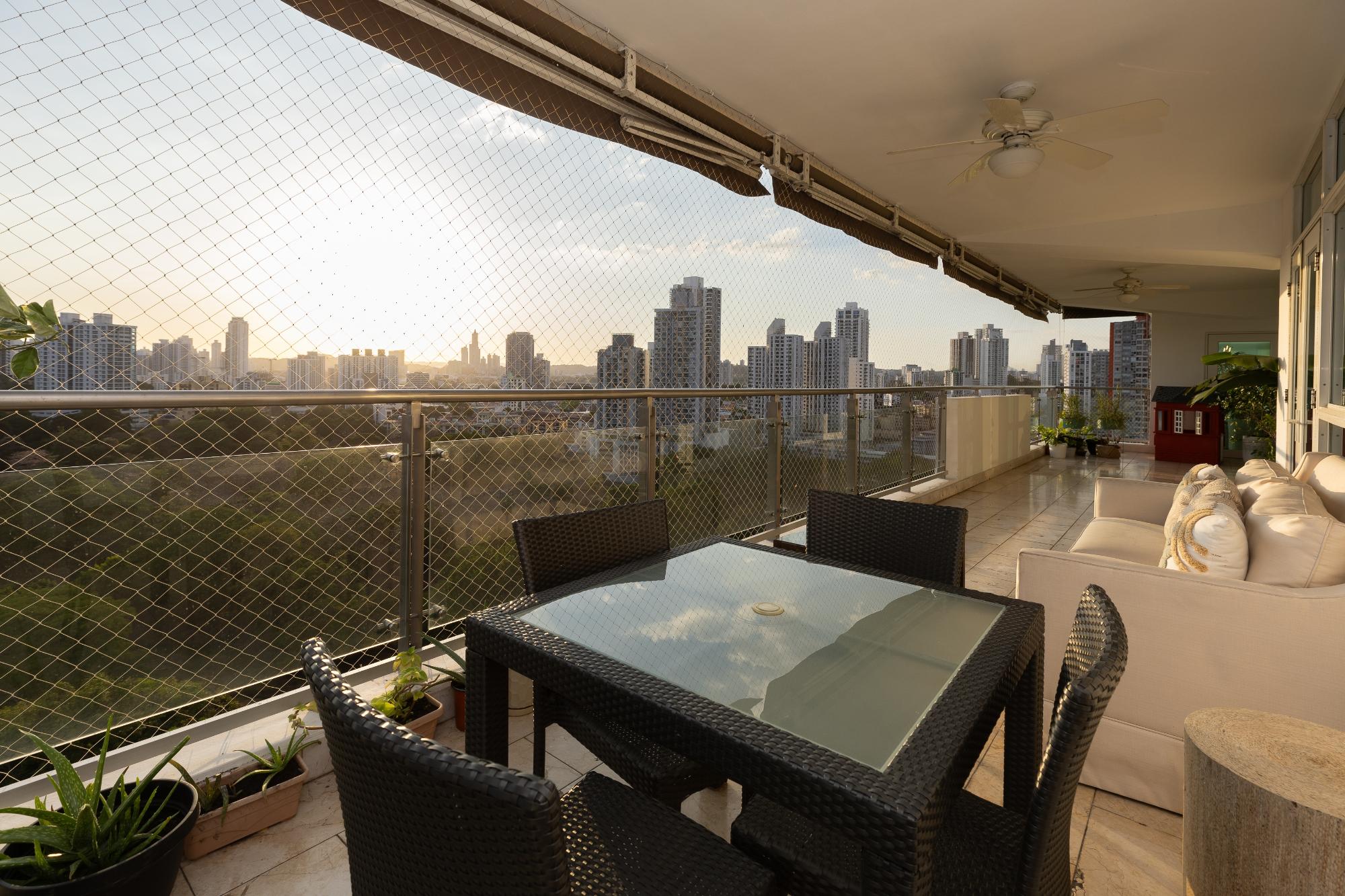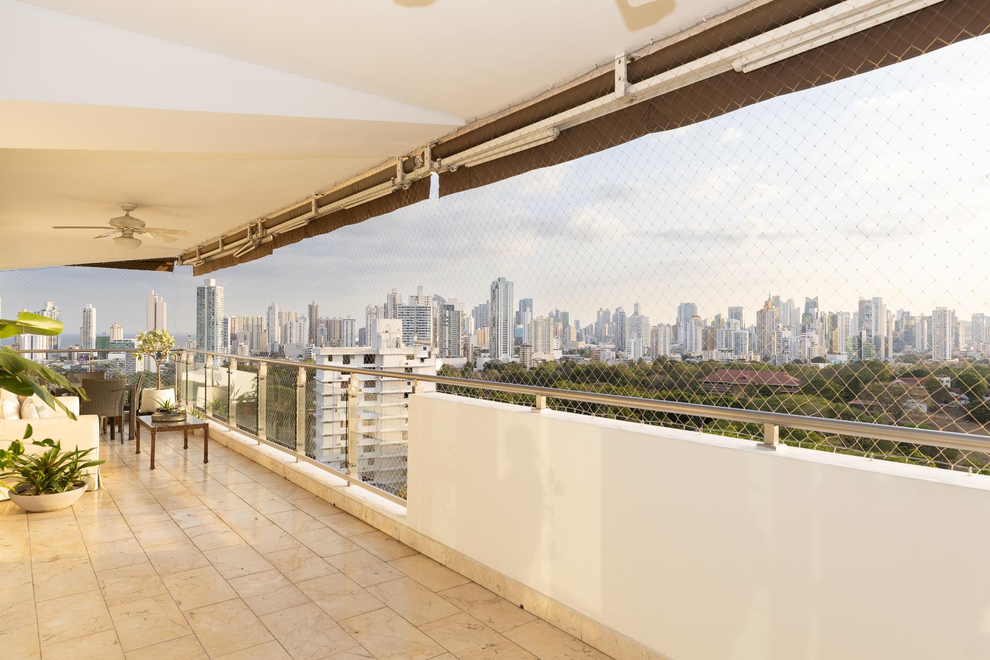 Apartamento de lujo en venta en Altos del Golf, PH Pradera, una residencia excepcional de 540 m² que ofrece amplitud, elegancia y una ubicación inmejorable frente al Parque Omar, combinando vistas verdes permanentes con la comodidad de vivir en el corazón de la ciudad; cuenta con vestíbulo de entrada, amplia sala con acceso a balcón panorámico, den o sala familiar, comedor independiente, medio baño de visitas, moderna cocina con desayunador, despensa y alacena, lavandería y área de servicio con recámara y baño, recámara principal con baño de lujo, estudio y dos walk-in closets, tres recámaras secundarias cada una con su baño y walk-in closet, aire acondicionado central, cuatro estacionamientos y dos depósitos de uso privativo, dentro de un PH que ofrece piscina y terraza con vista al parque, gimnasio, vestidores, planta eléctrica, reserva de agua y seguridad 24/7, ideal para familias que buscan lujo, privacidad y una de las zonas residenciales más prestigiosas de Panamá.