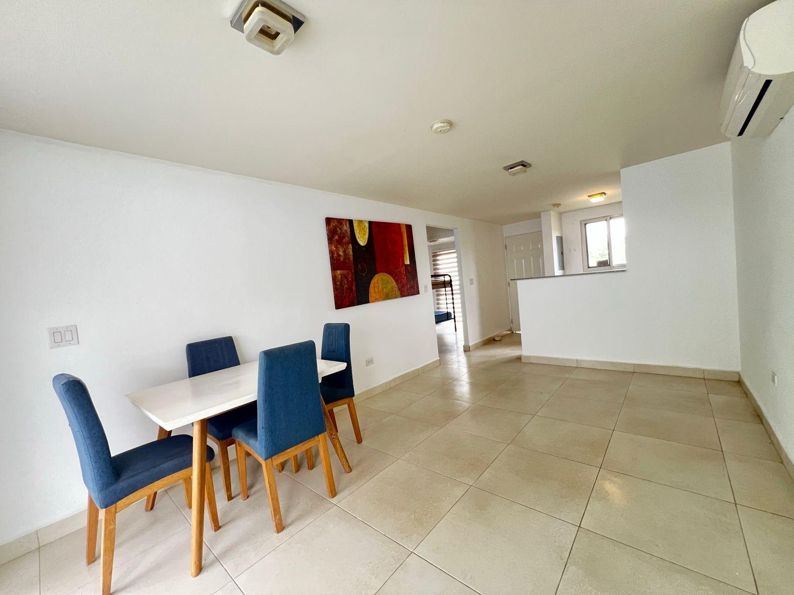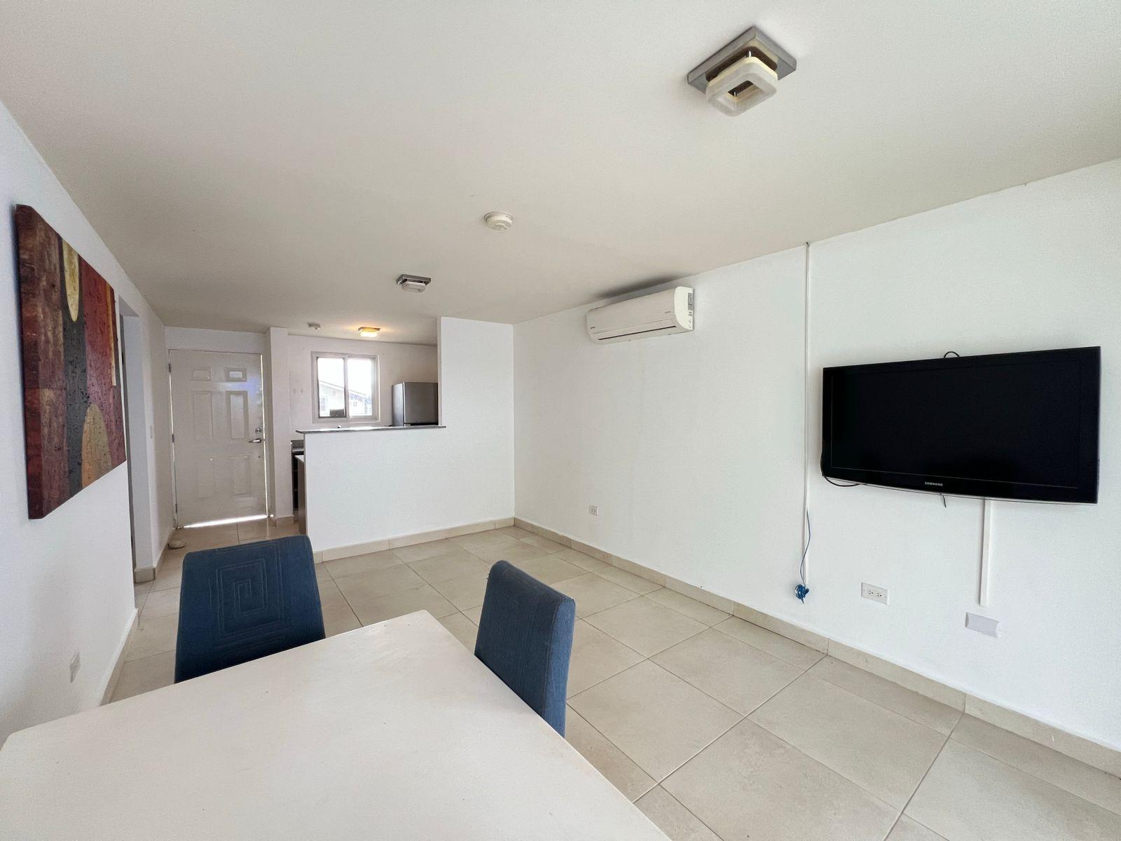 Tu próximo hogar te espera en Playa Dorada – Villa Marina II, Vista Alegre, Arraiján Ubicada en una de las comunidades residenciales más buscadas del sector oeste de Panamá, esta agradable propiedad ofrece un diseño funcional y cómodo. Cuenta con dos habitaciones, una cocina de concepto abierto equipada con refrigeradora, estufa empotrada y muebles a medida, además de un luminoso espacio de sala y comedor integrados. La vivienda dispone de dos aires acondicionados, uno en la sala y otro en la recámara principal, garantizando confort en cada ambiente. También incluye lavandería techada, una terraza techada ideal para compartir, con área lateral destinada a tendedero, y un patio perfecto para disfrutar al aire libre. El estacionamiento contempla un puesto para vehículo y un espacio adicional para visitas ubicado al final de la calle. Playa Dorada es un proyecto residencial reconocido por su entorno seguro, tranquilo y familiar, con vigilancia 24/7, parques infantiles, canchas deportivas, áreas recreativas con piscina, lago y amplias zonas verdes que promueven una excelente calidad de vida. Su ubicación estratégica ofrece cercanía a centros comerciales, colegios y servicios esenciales, convirtiéndolo en una excelente opción tanto para vivir como para invertir.