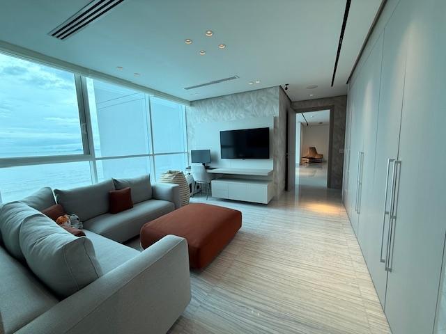 Apartamento en venta en Vitri Tower, super lujoso, con muchas mejoras, calidad premiun, solo con linea blanca en Costa del Este, frente al mar con espectacular vista, dos apartamentos por piso. 375 m2, óptima. distribucion. 3 recamaras con sus baños Amplia sala comedor, Den balcón sala familiar Cocina con area desyunador Baño de visita Lavanderia Cuarto y baño de servicio, 3 estacionamientos. Piso de mármol,todos los acabados europeos, de marcas premiun, área social completa con piscina de agua temperada y tobogan, salón de fiesta, área de juegos para los niños y adolescentes, canchas de futbol, basketball, squash, racquetball, sauna, baño de vapor, bohios, y gimnasio equipado con equipo de primera, elevadores de alta velocitad, área social tipo resort. Edificio super exclusivo, torre totalmente residencial más alta de panamá con solo 90 apartamentos. Ave. paseo del Mar, Costa del Este. a pasos de town center mall, hospital, consultorios medicos, supermercados, colegios, restaurantes etc.