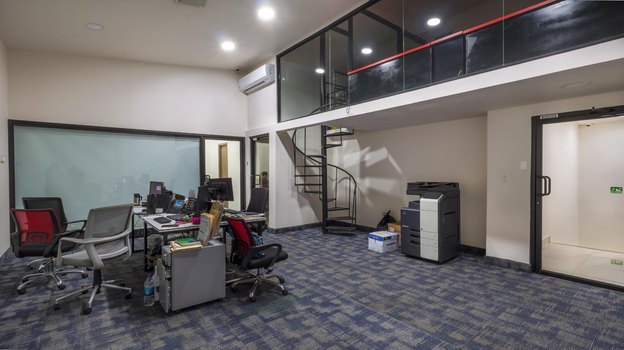 Consiste en un lote de terreno de forma rectangular y topografia mayormente plana, construido en su totalidad. El mismo cuenta con 20mts de frente y 40mts de fondo. Su edificación tipo galera, cuenta con un área de recepción, área de atención al público, oficinas y una batería de baños. En su parte frontal cuenta con un área abierta de estacionamientos, con piso de concreto armado. En la planta alta cuyo acceso es a través de una escalera de concreto, encontramos oficinas y área de cubículos, 2 servicios sanitarios para damas y caballeros de loza sanitaria importada y ventilador mecánico. La Galera construida con piso de concreto armado mide aprox. 540.70m2 e incluye área de cafetería y una oficina de reuniones y para cubículos. Entre otras mejoras incluye área de carga y descarga.