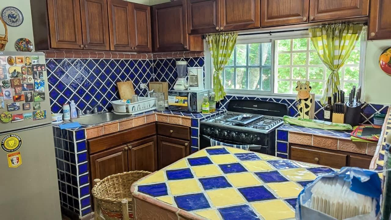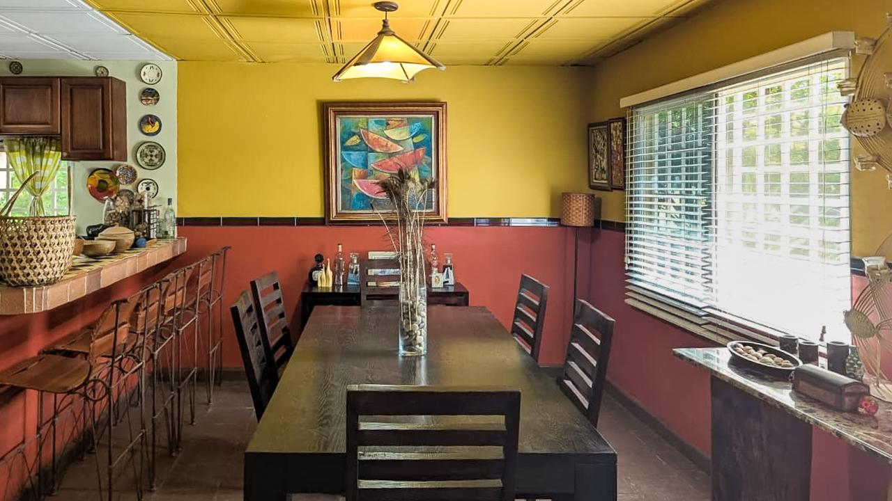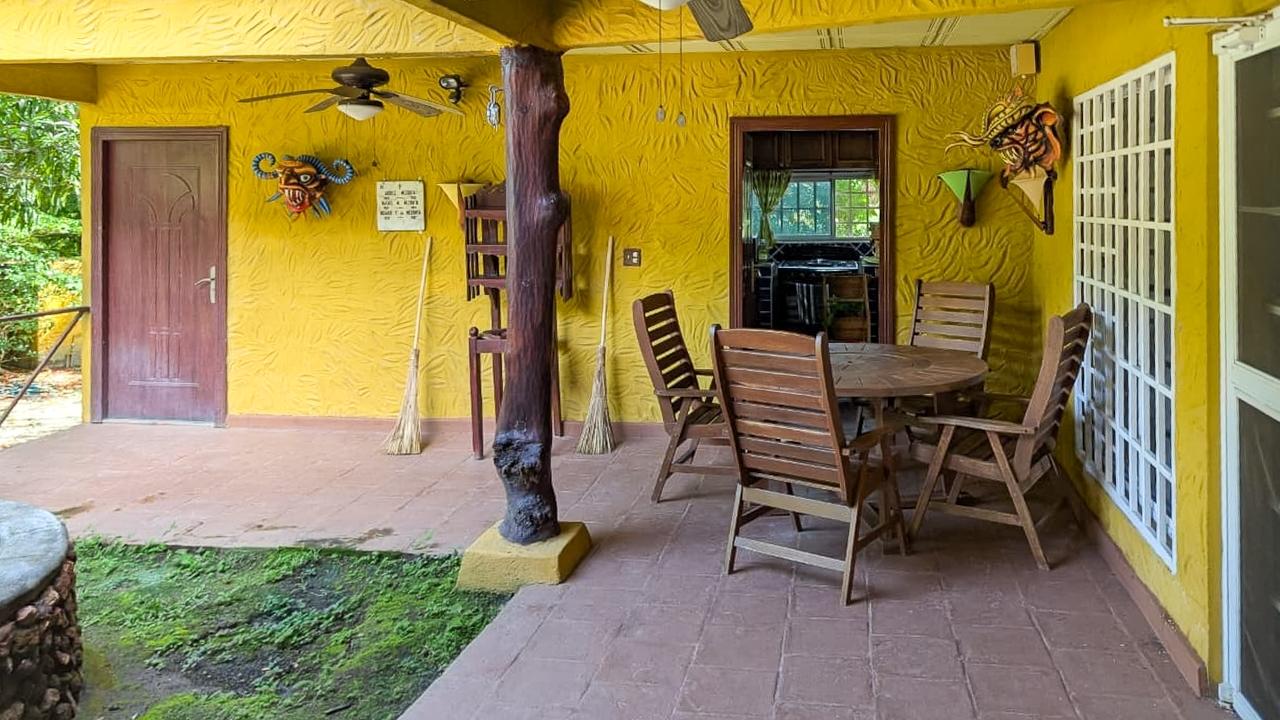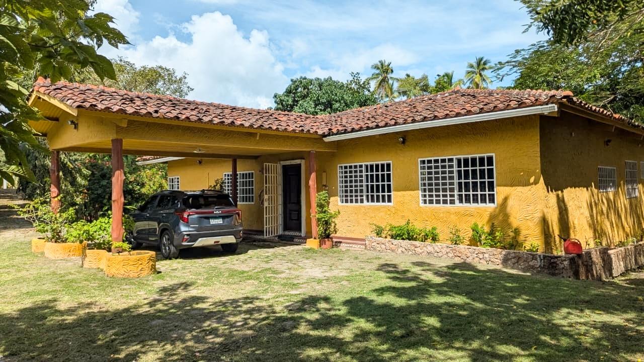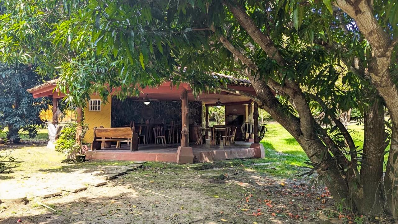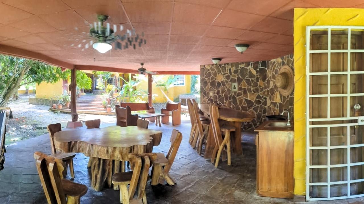 Es una pequeña finca con diferentes especies de arboles frutales y una casa tipo mexicano así como su rancho con bar y bbq tipo argentino. El frente del lote tiene una muralla tipo hacienda. todo el terreno esta cercado.