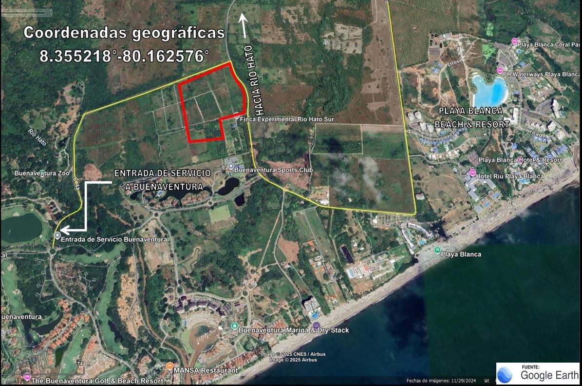 Vendo finca en Buenaventura. Ubicada a solo 4 kms de la panamericana, en la intersección de la calle que conduce al poblado de Rio Hato y Buenaventura. a 3 kms de la playa. 18 hectáreas, con 400 mts de frente en la calle que conduce al desarrollo turístico de Buenaventura y 385 mts lineales frente a la carretera que conduce hacia el poblado de Rio Hato. Ideal para desarrollo residencial y comercial.