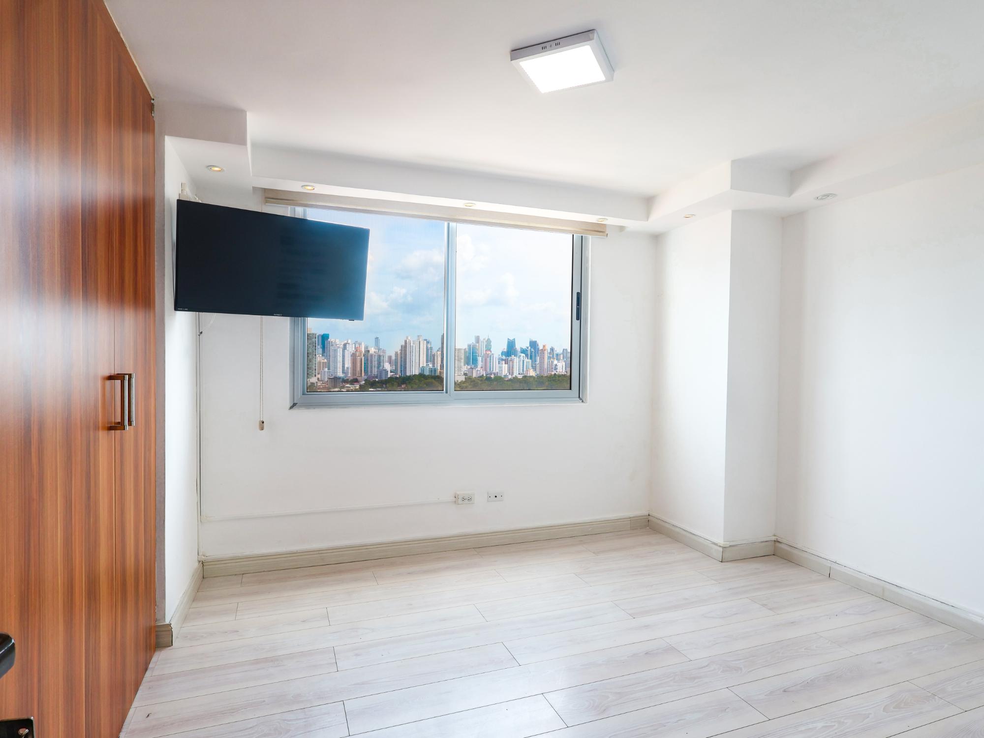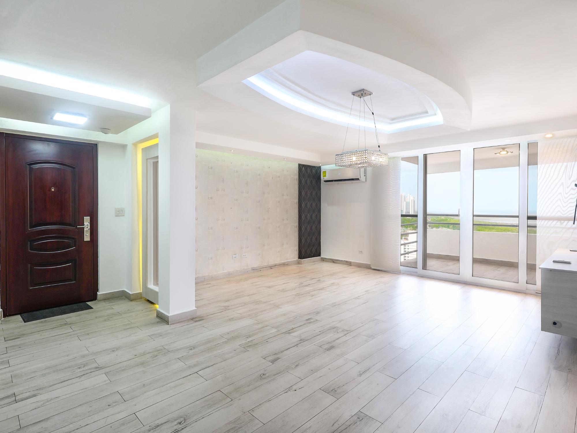 El Penthouse con vista hacia al mar y hacia la ciudad ubicado en la Ernesto T Lefevre cuenta con 3 recamaras 2 baños y medio 2 estacionamientos. Cuenta con área común con piscina , salón de fiestas y Gym Con acabados como lo son cielo raso con luces, puerta de seguridad, ventanas termoacústicas, ducha de hidromasajes , puerta de vidrio templado. Se vende con lámparas y aires acondicionados. Cerca del Parque Omar , Supermercados , bancos , escuelas , restaurantes, acceso a la vía España, coco del mar, Costa del Este